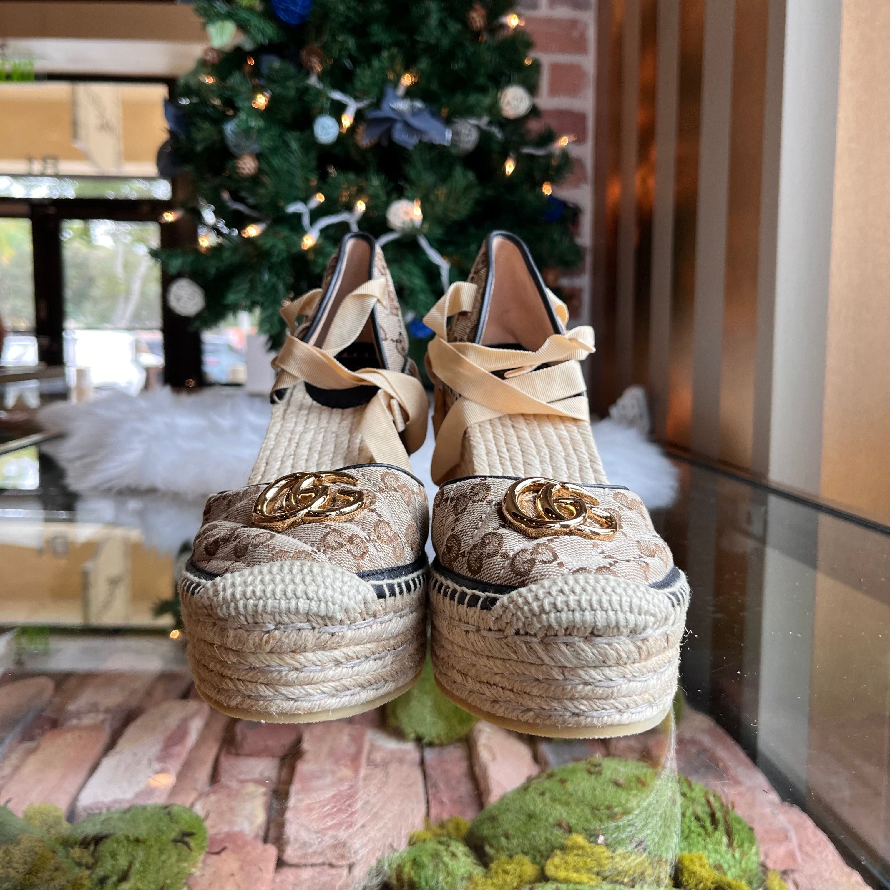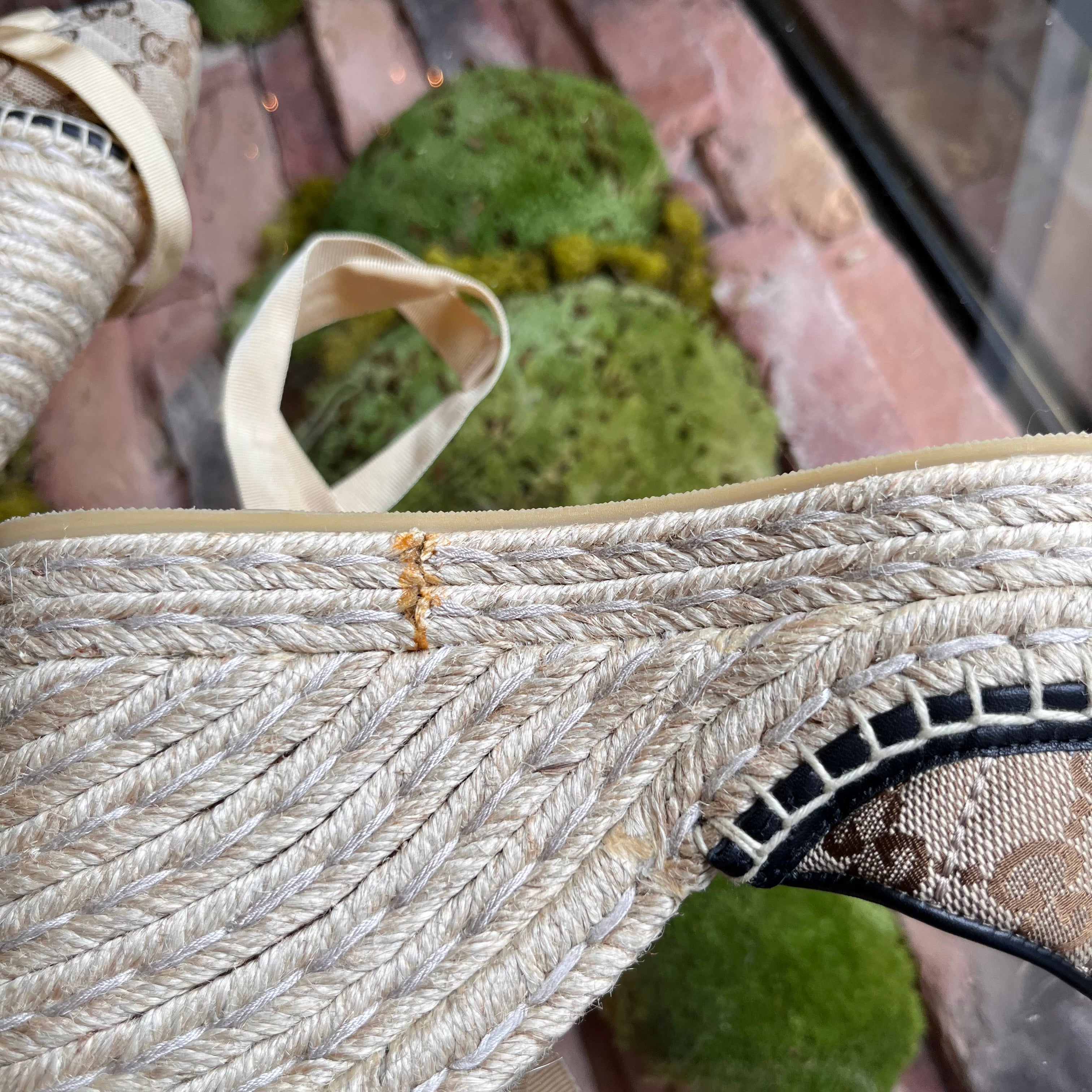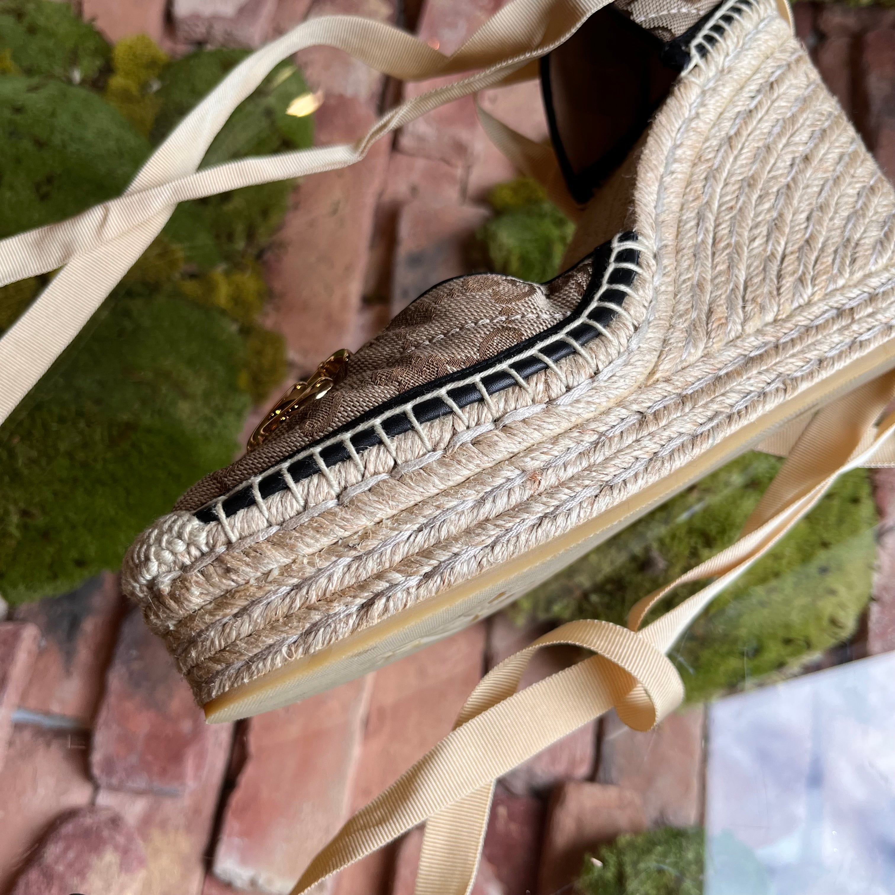 GUCCI Pilar GG Ankle Tie Espadrille Platform Wedges SZ40(10US)