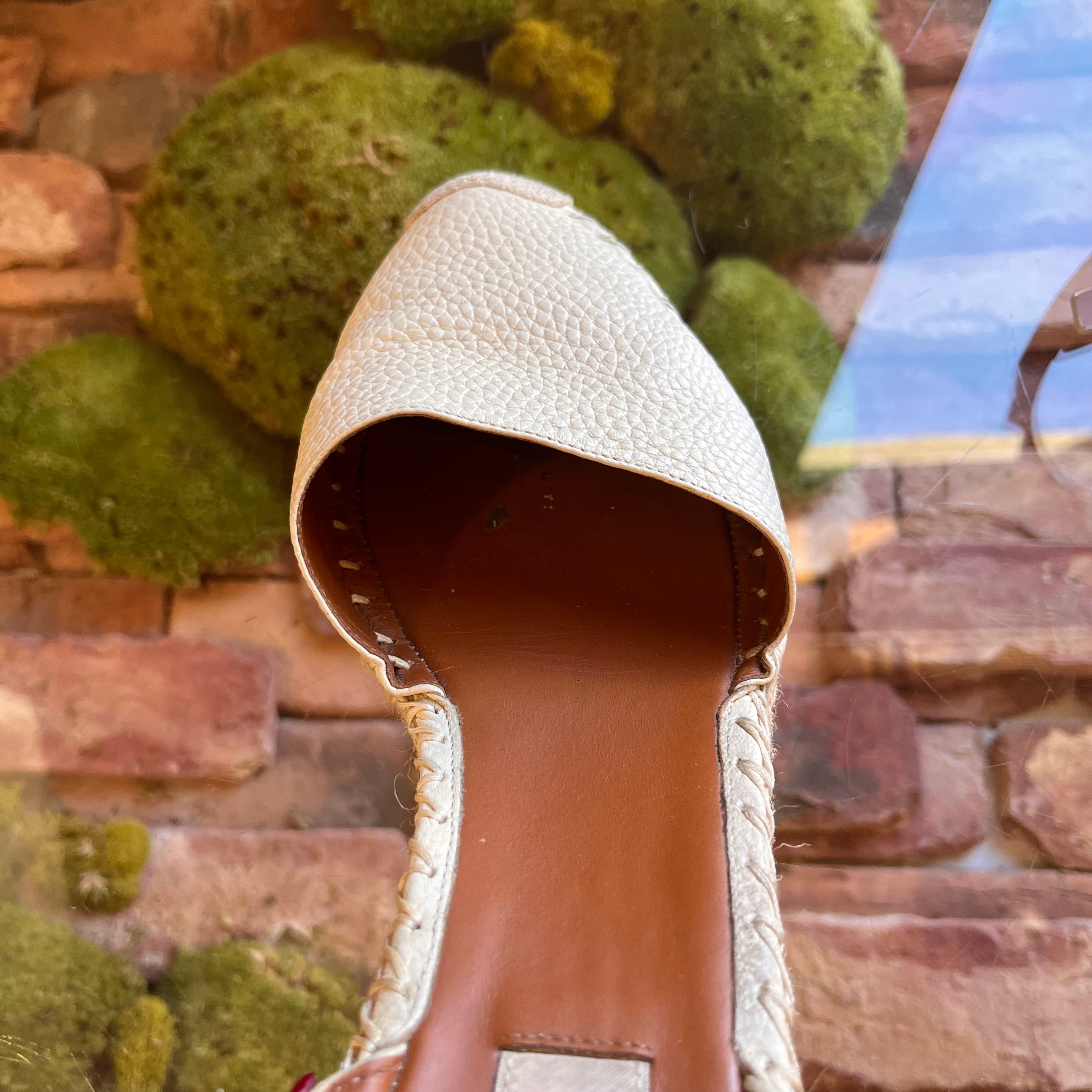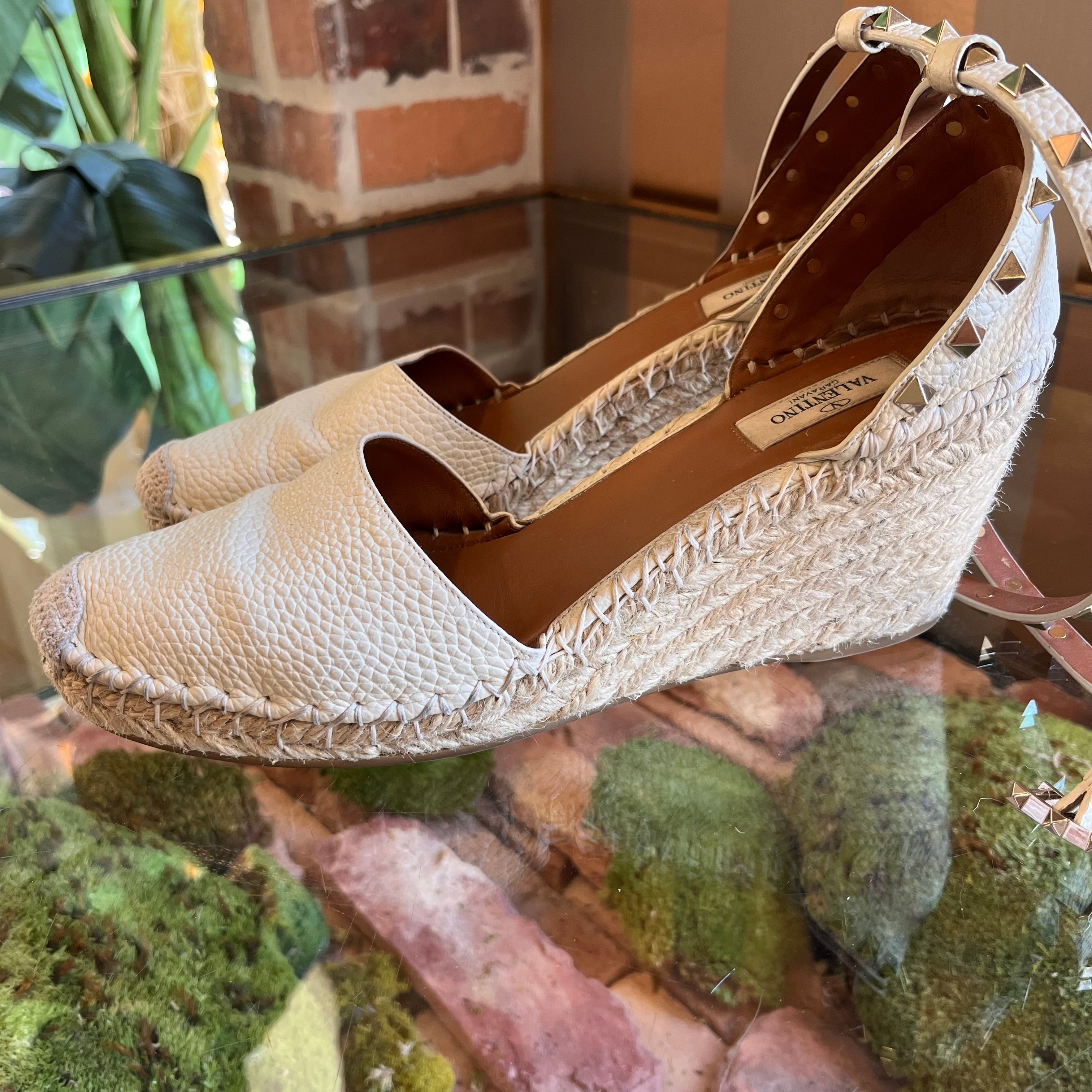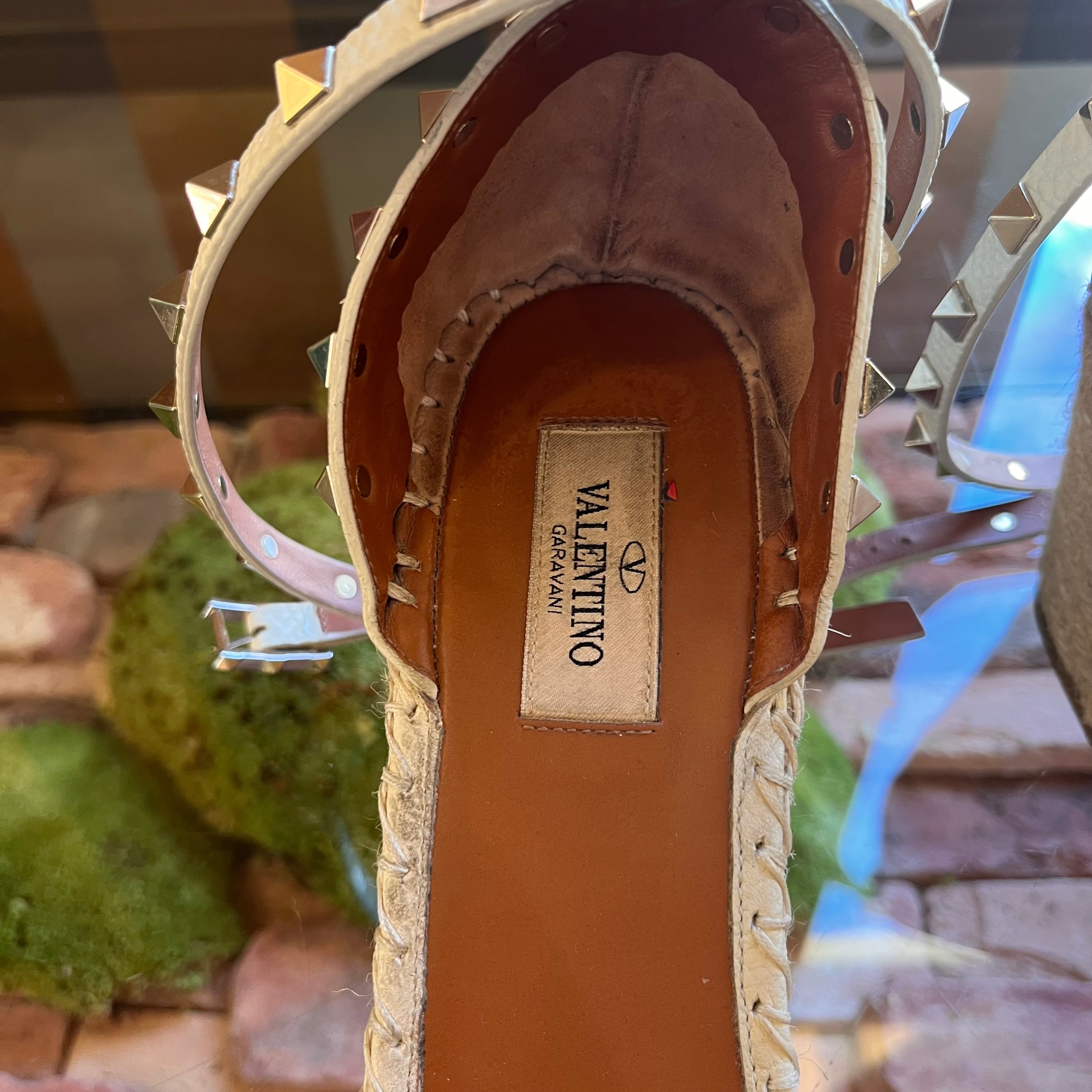 VALENTINO Cream Leather Rockstud Espadrille Wedge Ankle Wrap Pumps siz