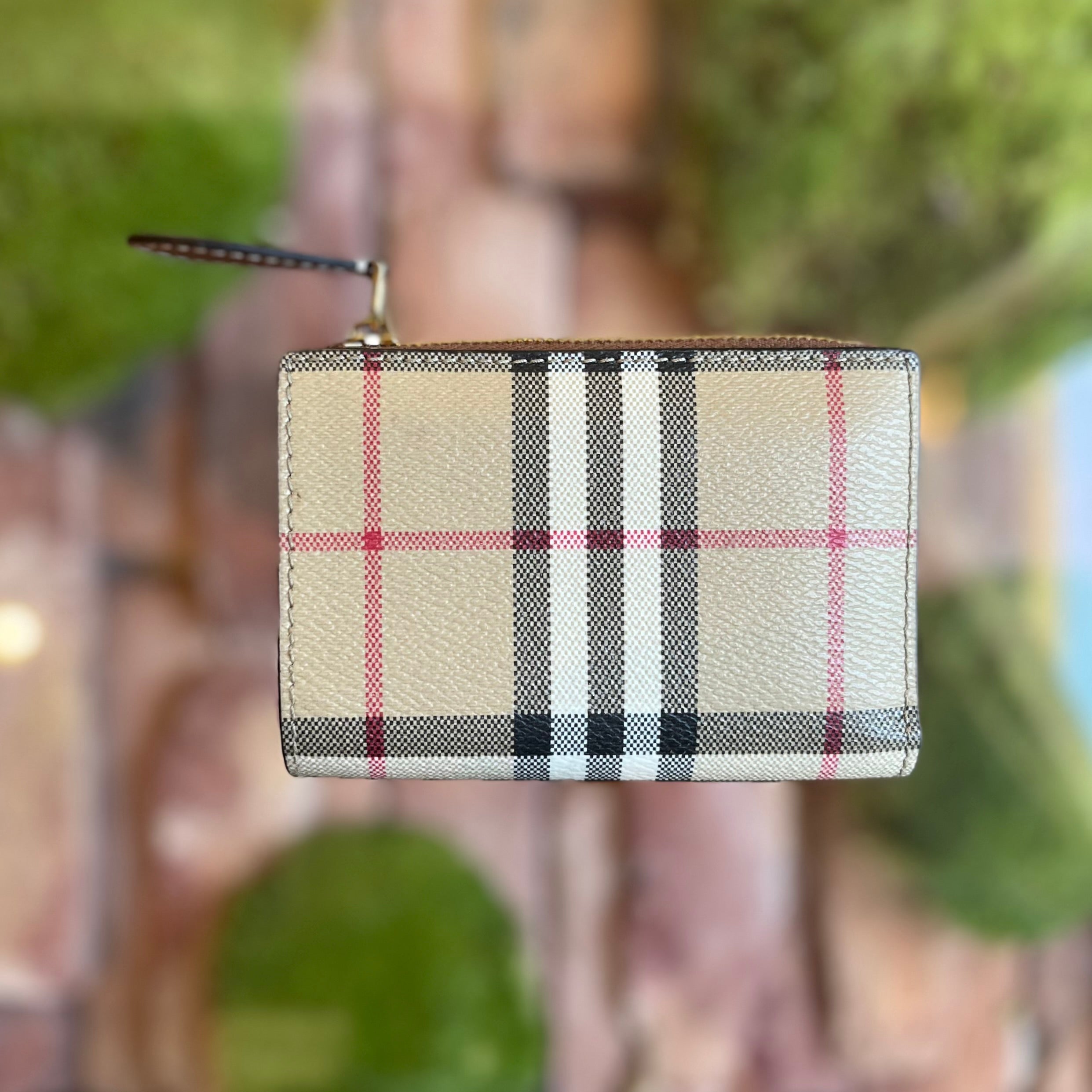 BURBERRY Compact Small Beige Check Canvas Wallet