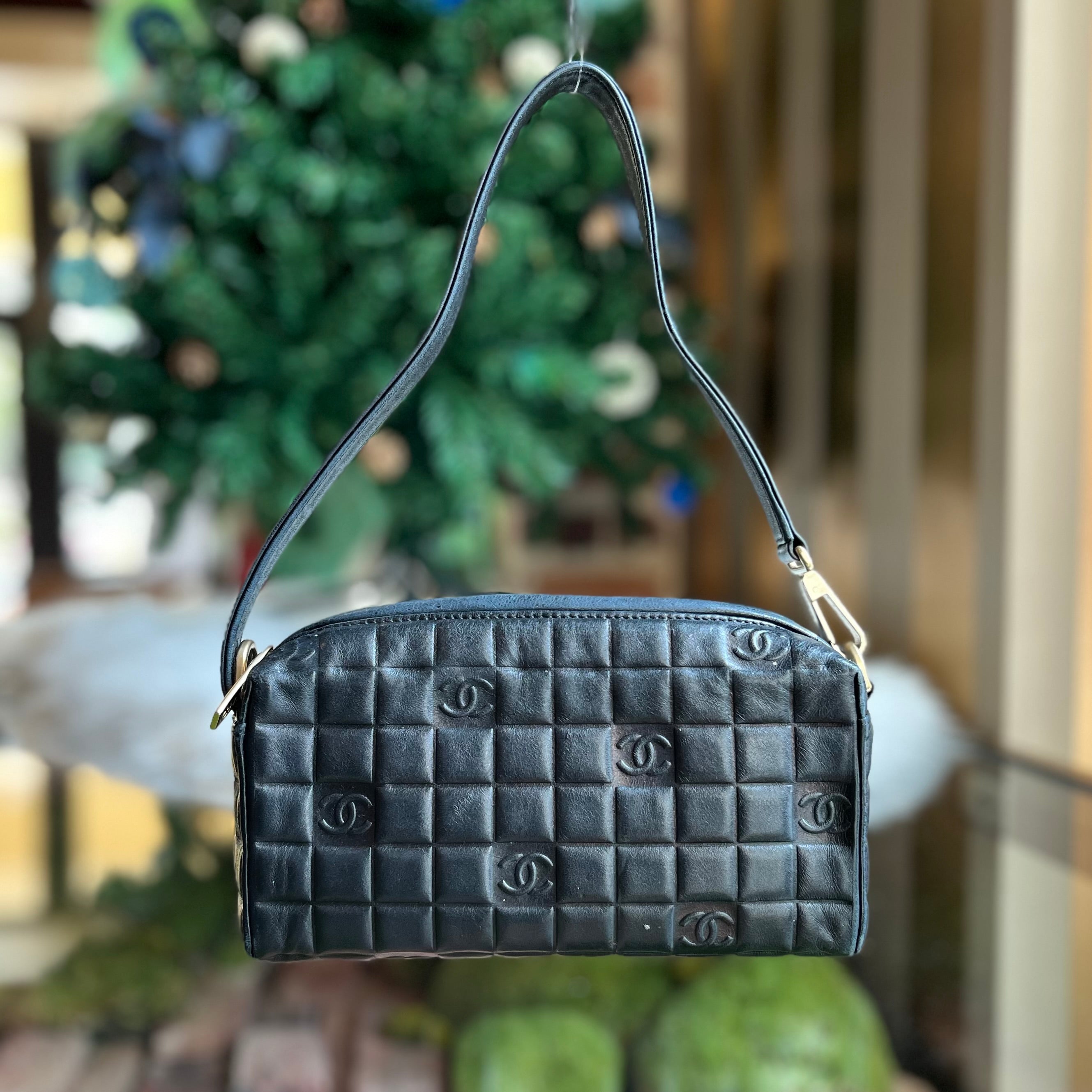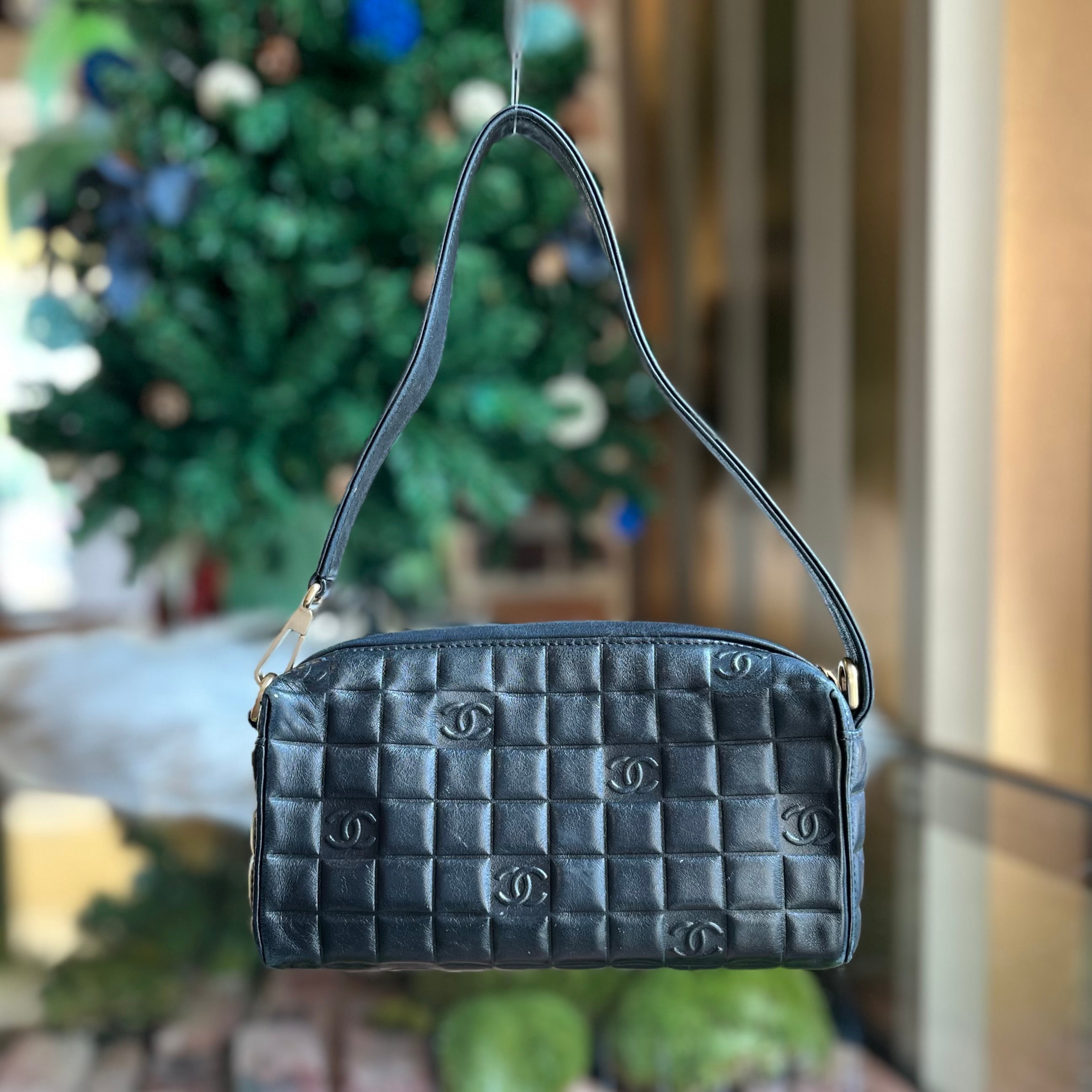 CHANEL Chocolate Bar Pochette Black Lambskin Shoulder Bag