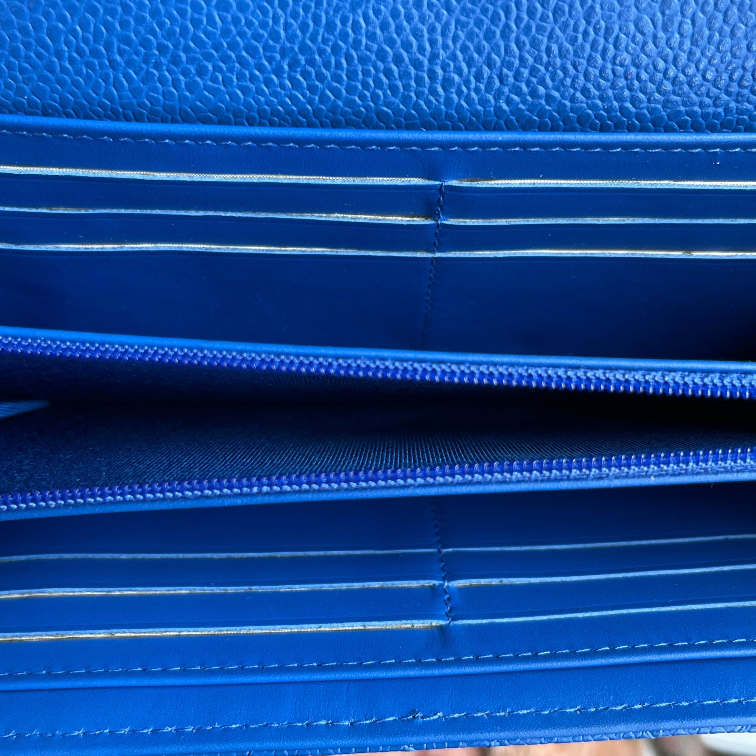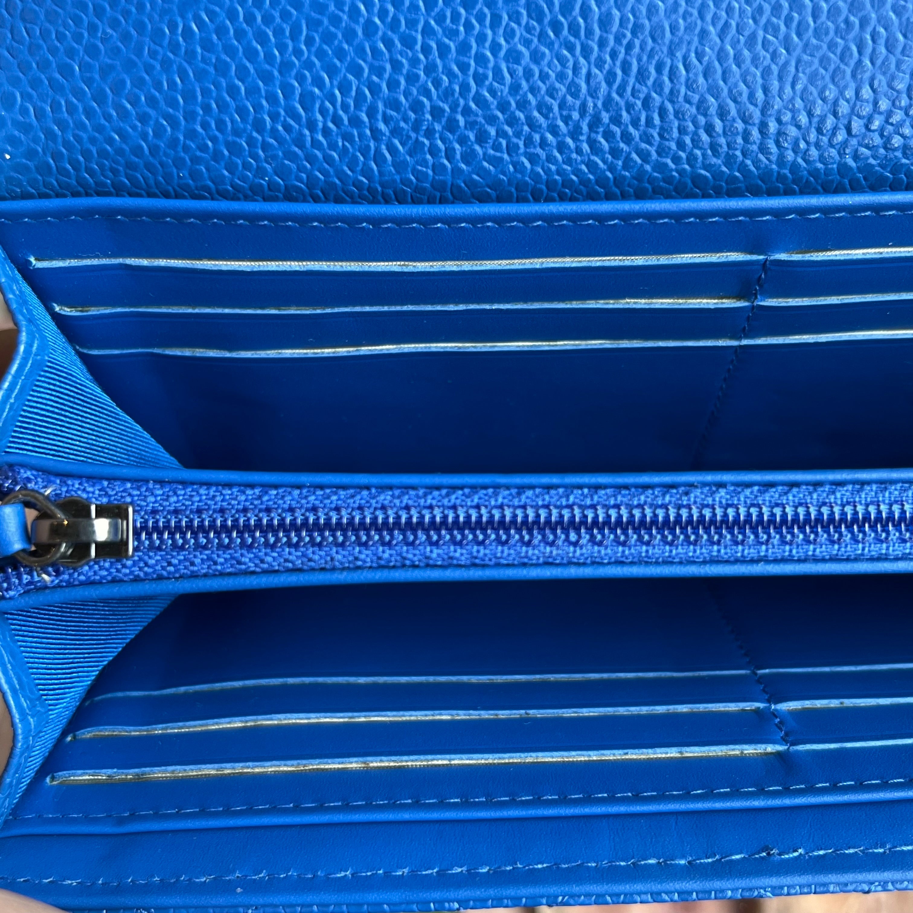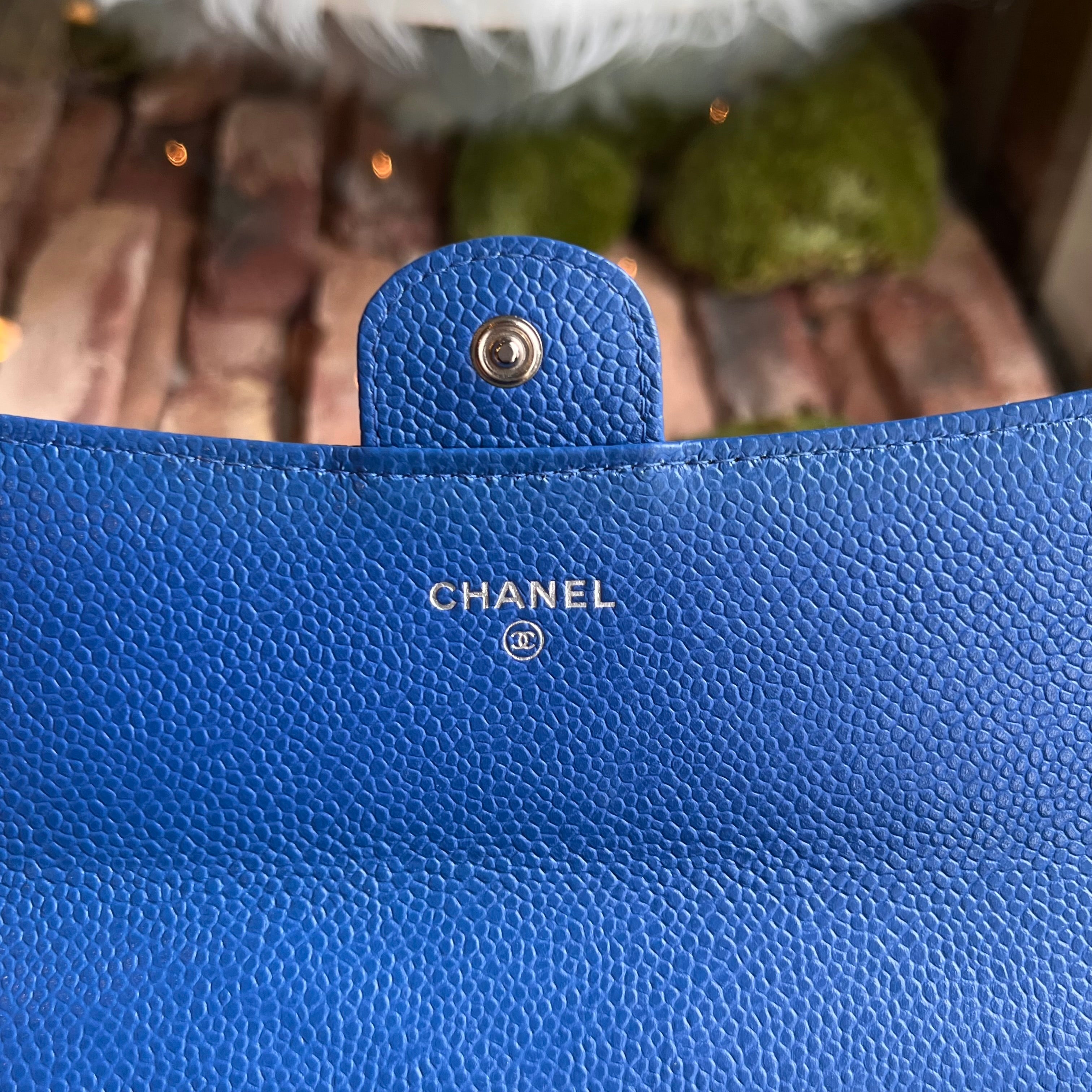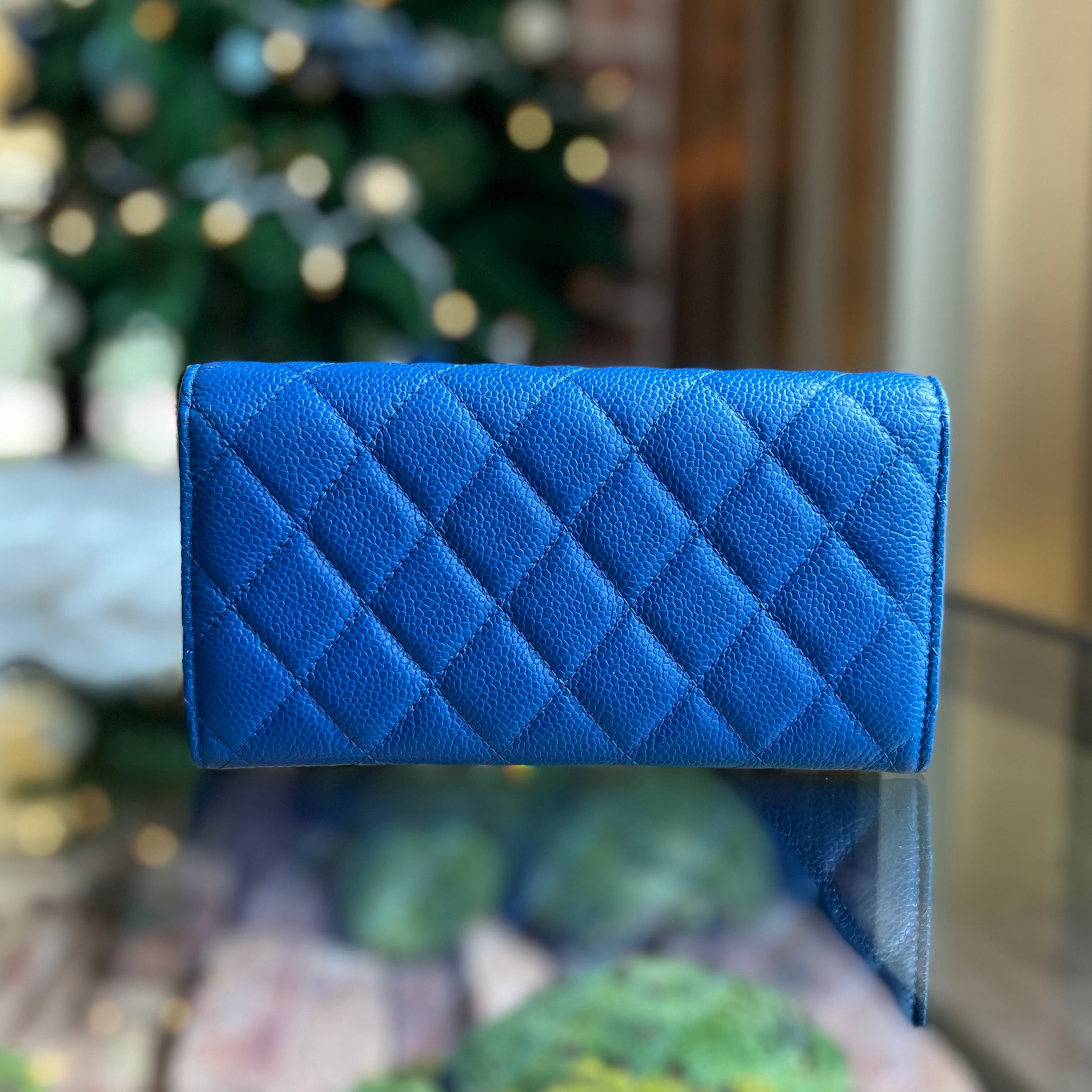CHANEL Large Gusset Flap Blue Caviar Quilted Wallet