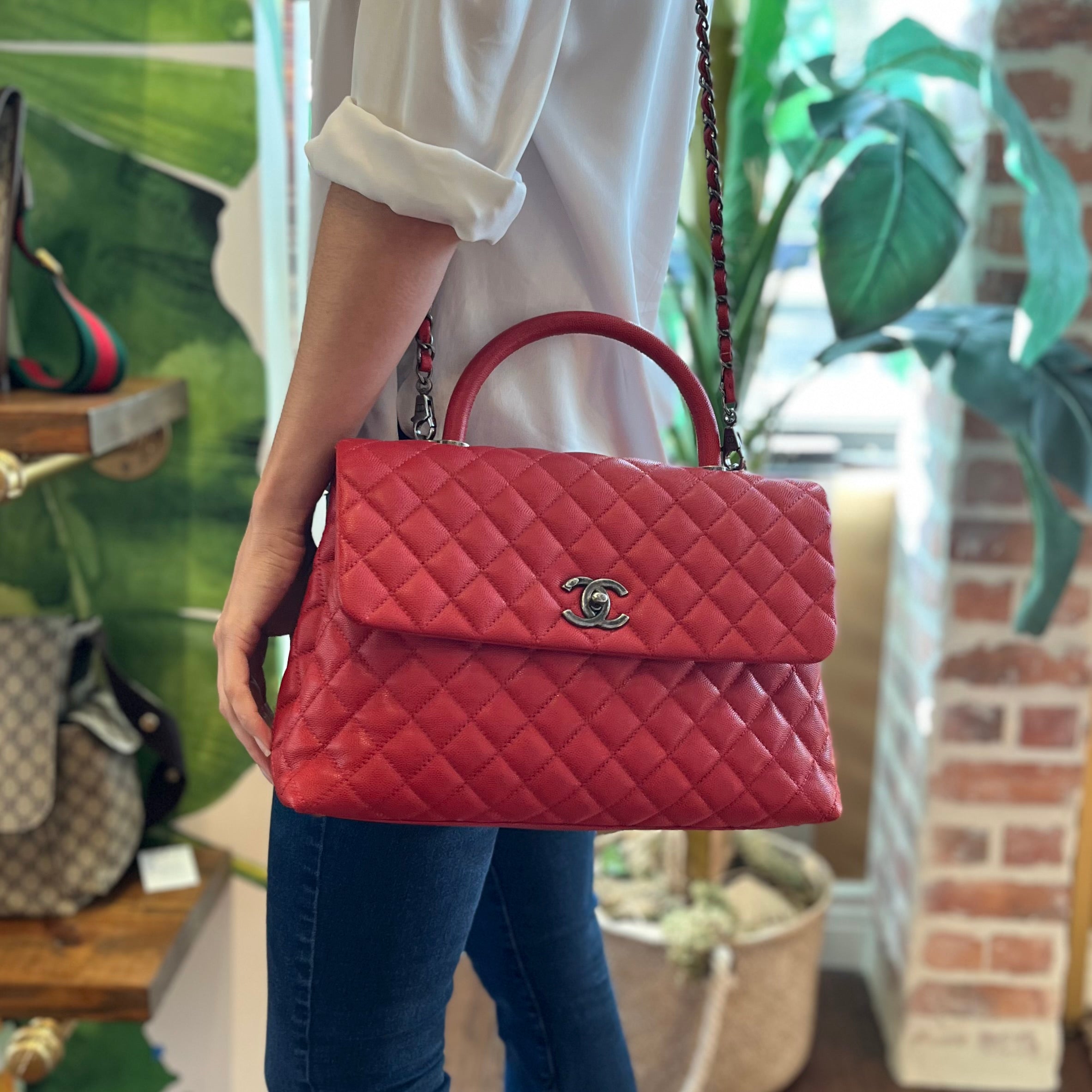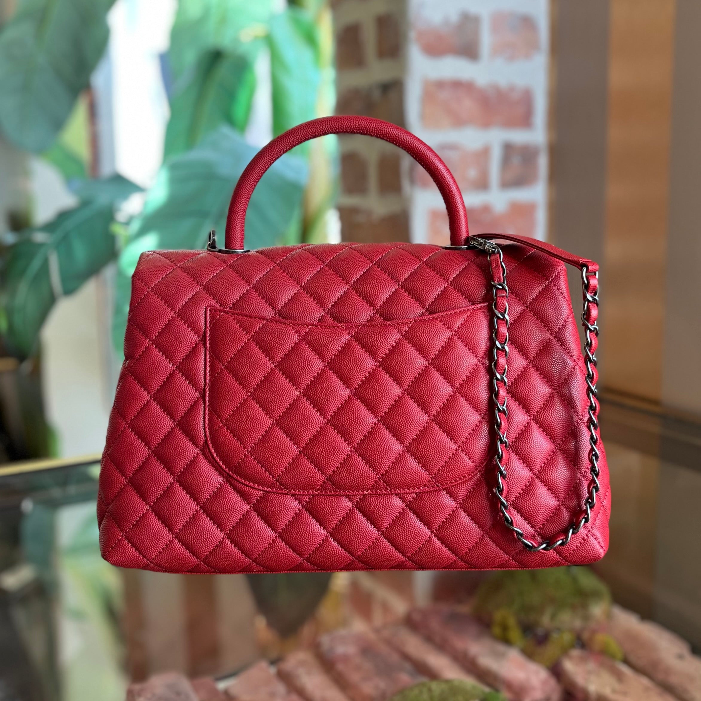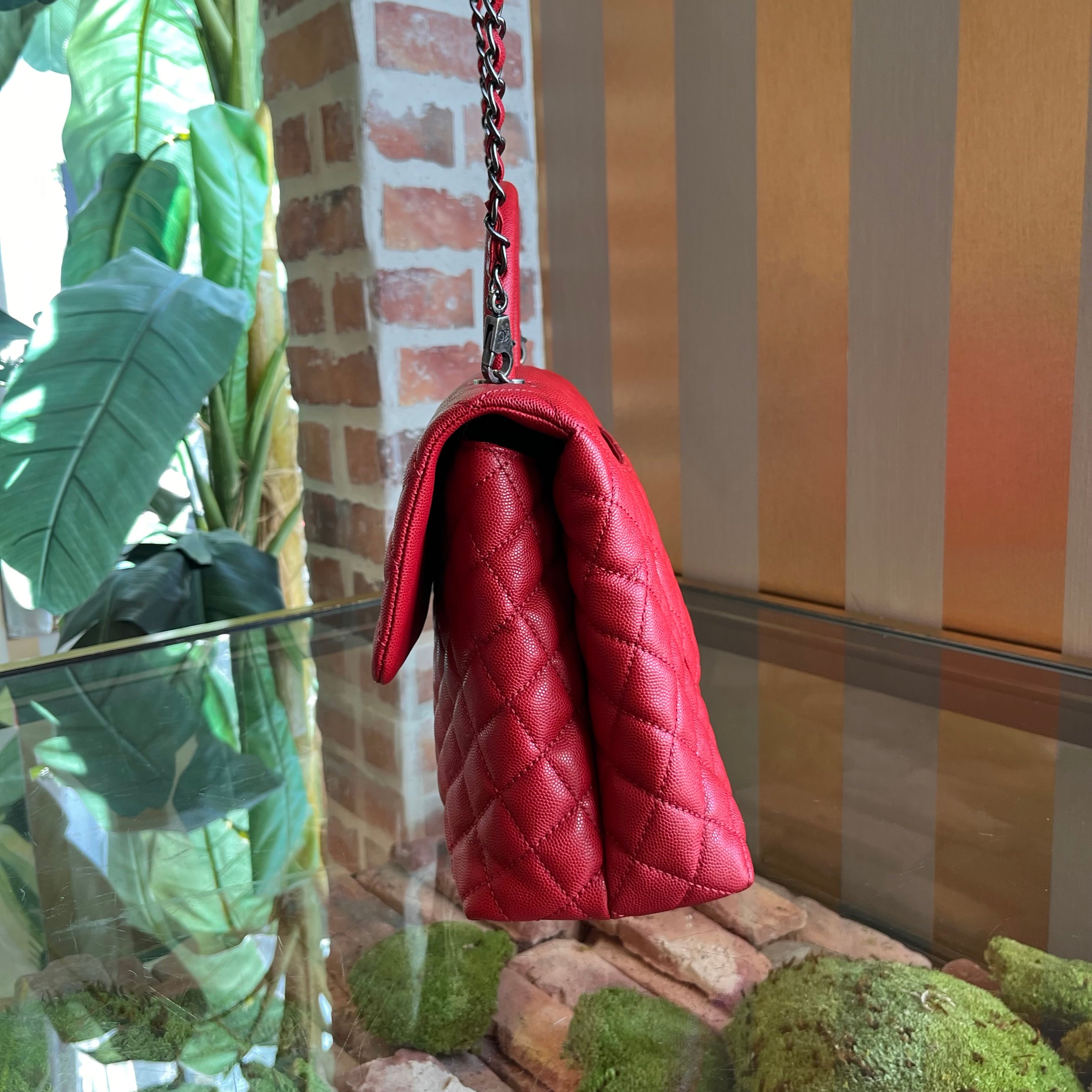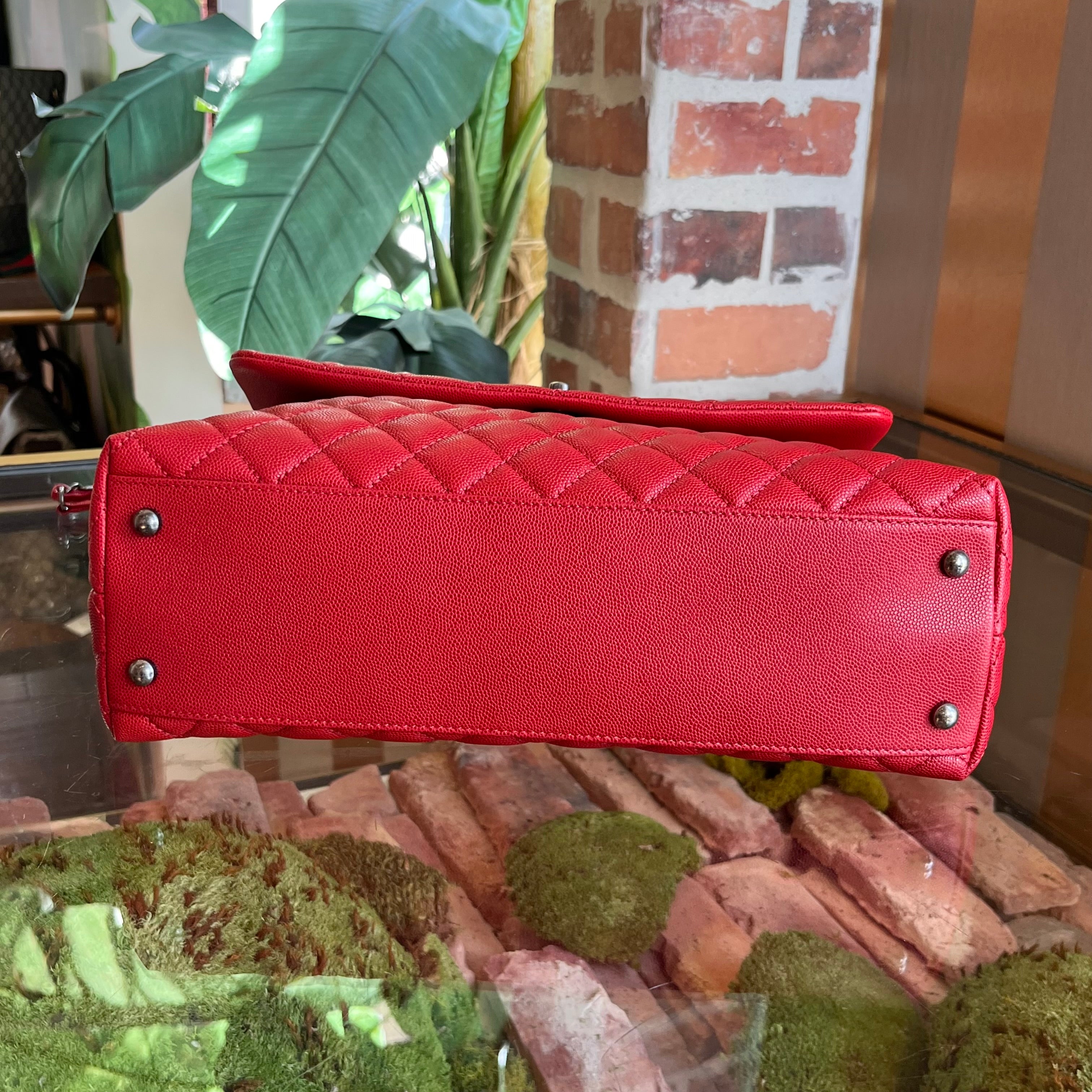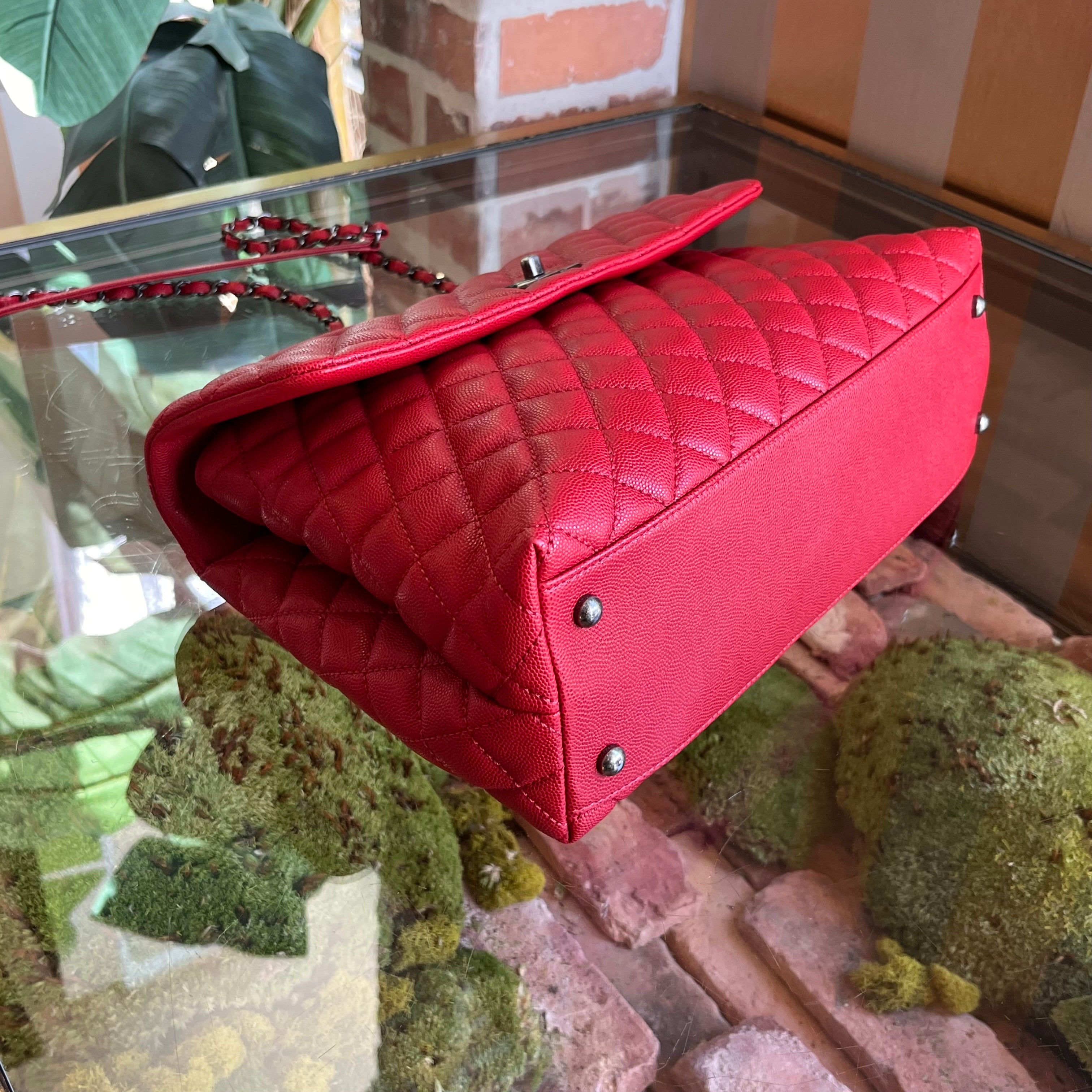 CHANEL Coco Handle Medium Red Caviar Top Handle Bag