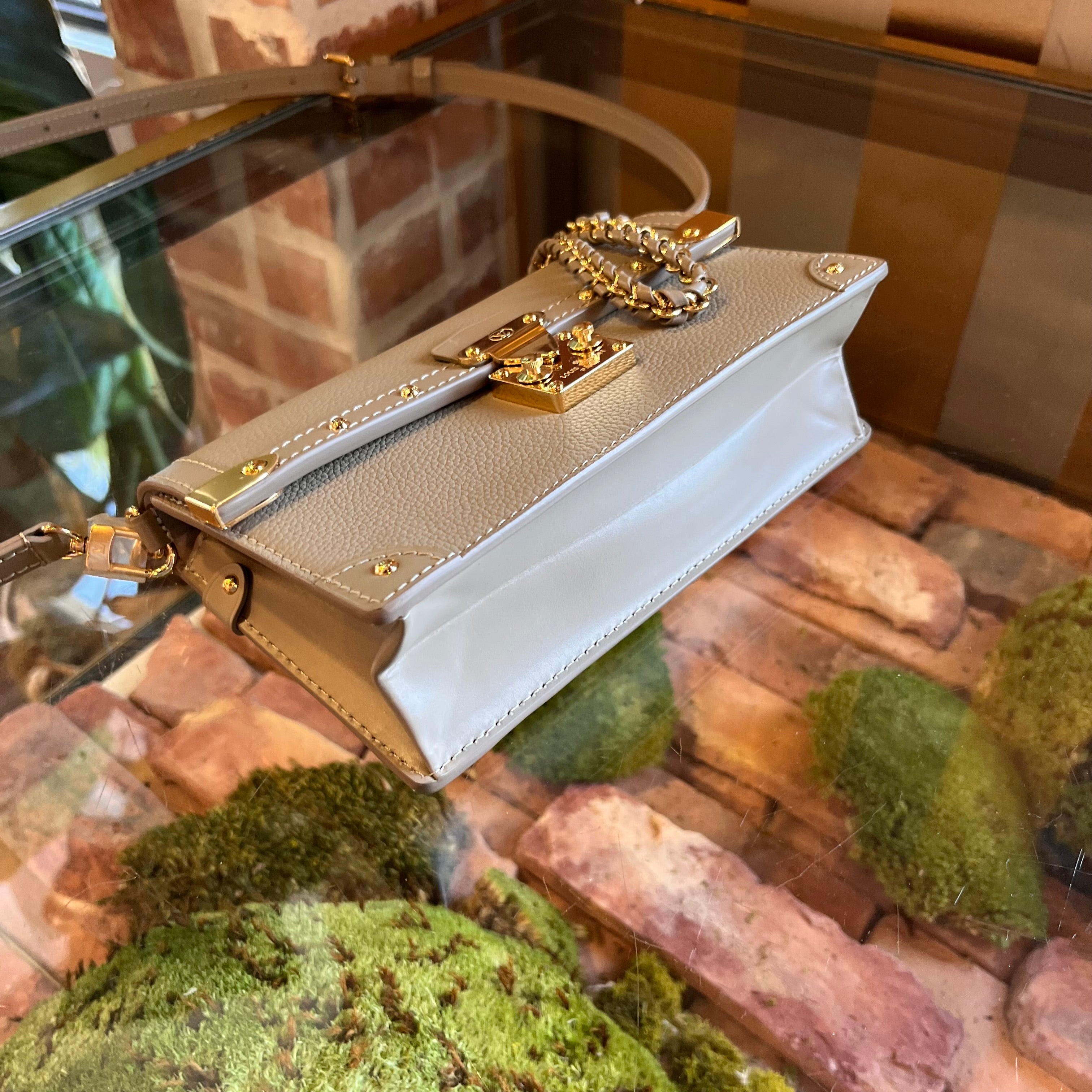LOUIS VUITTON Trunk Chain Taupe Leather Shoulder Bag