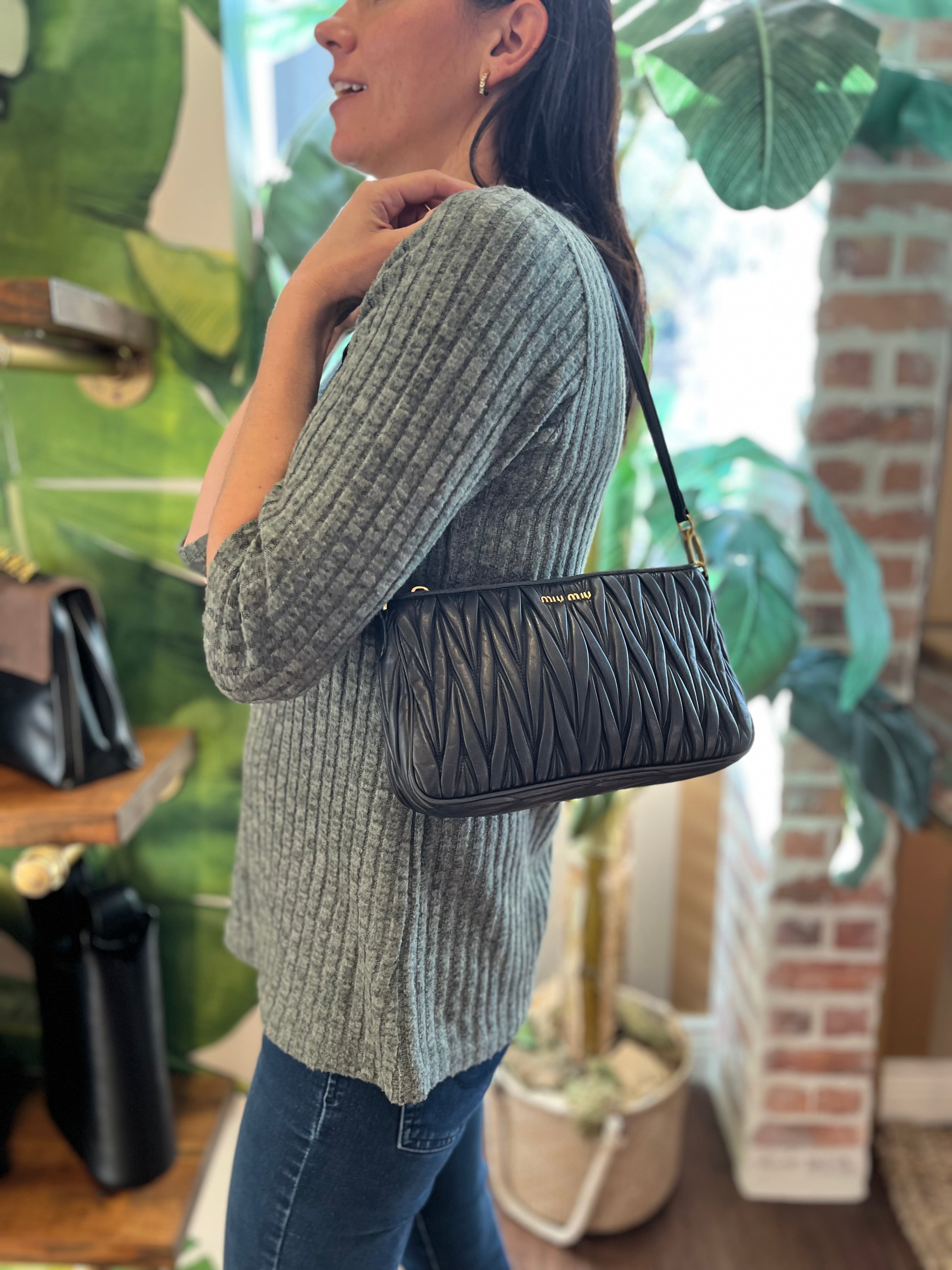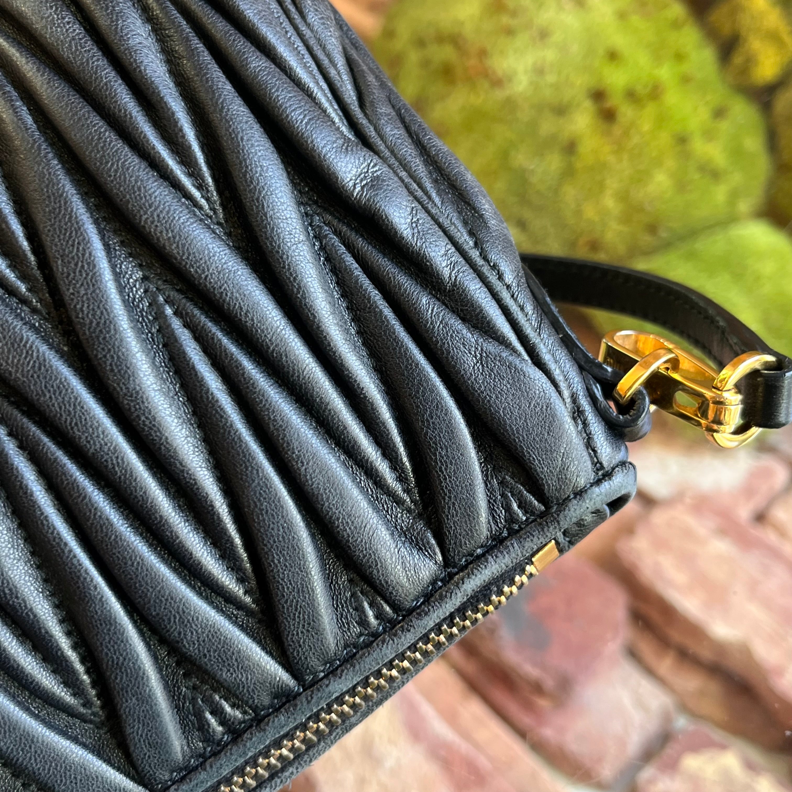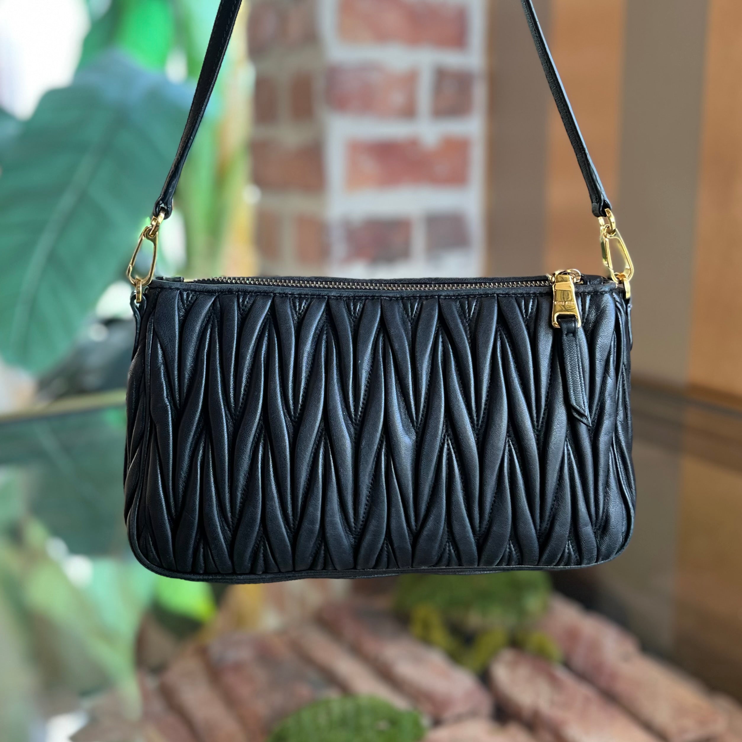 MIU MIU Black Matelasse Nappa Leather Shoulder Bag