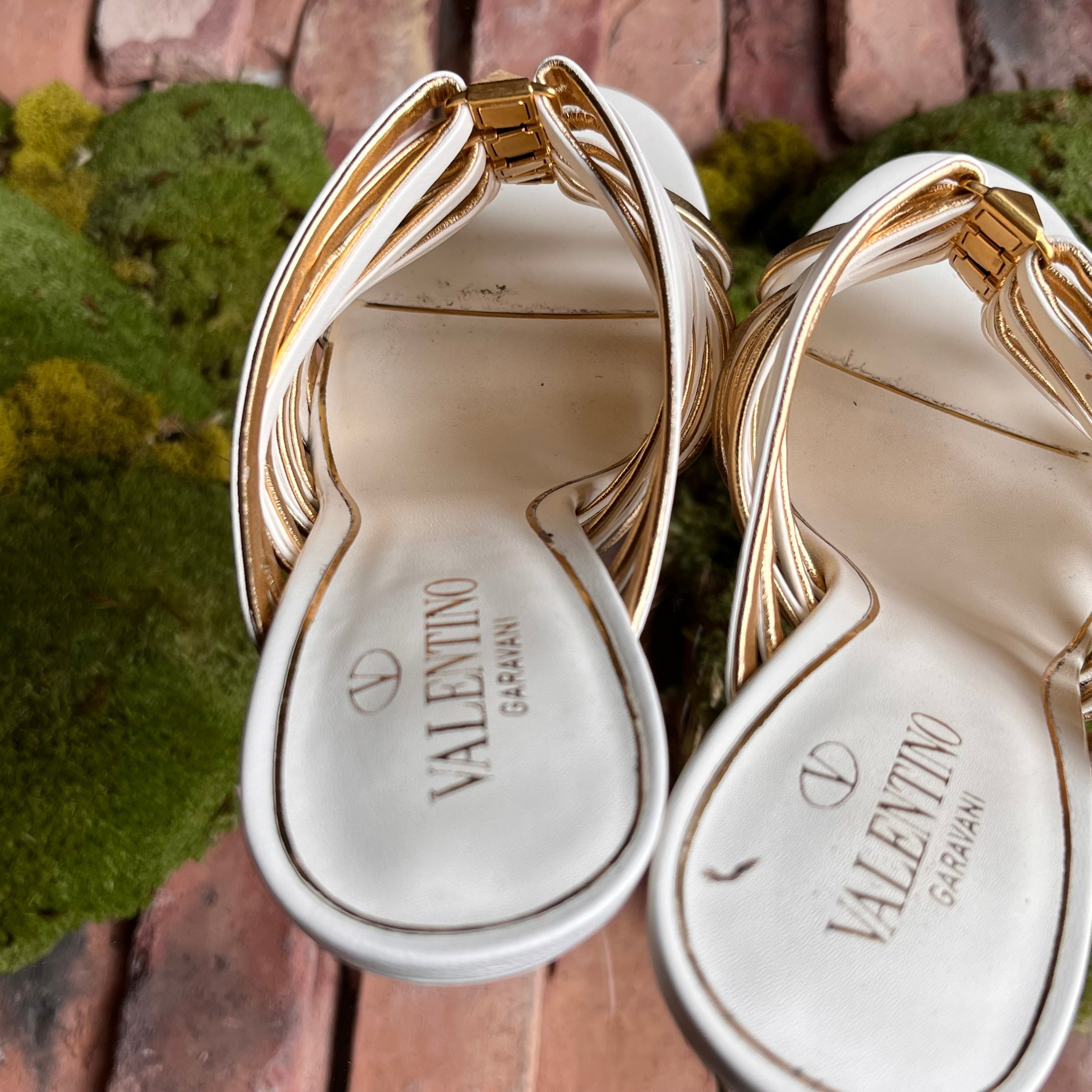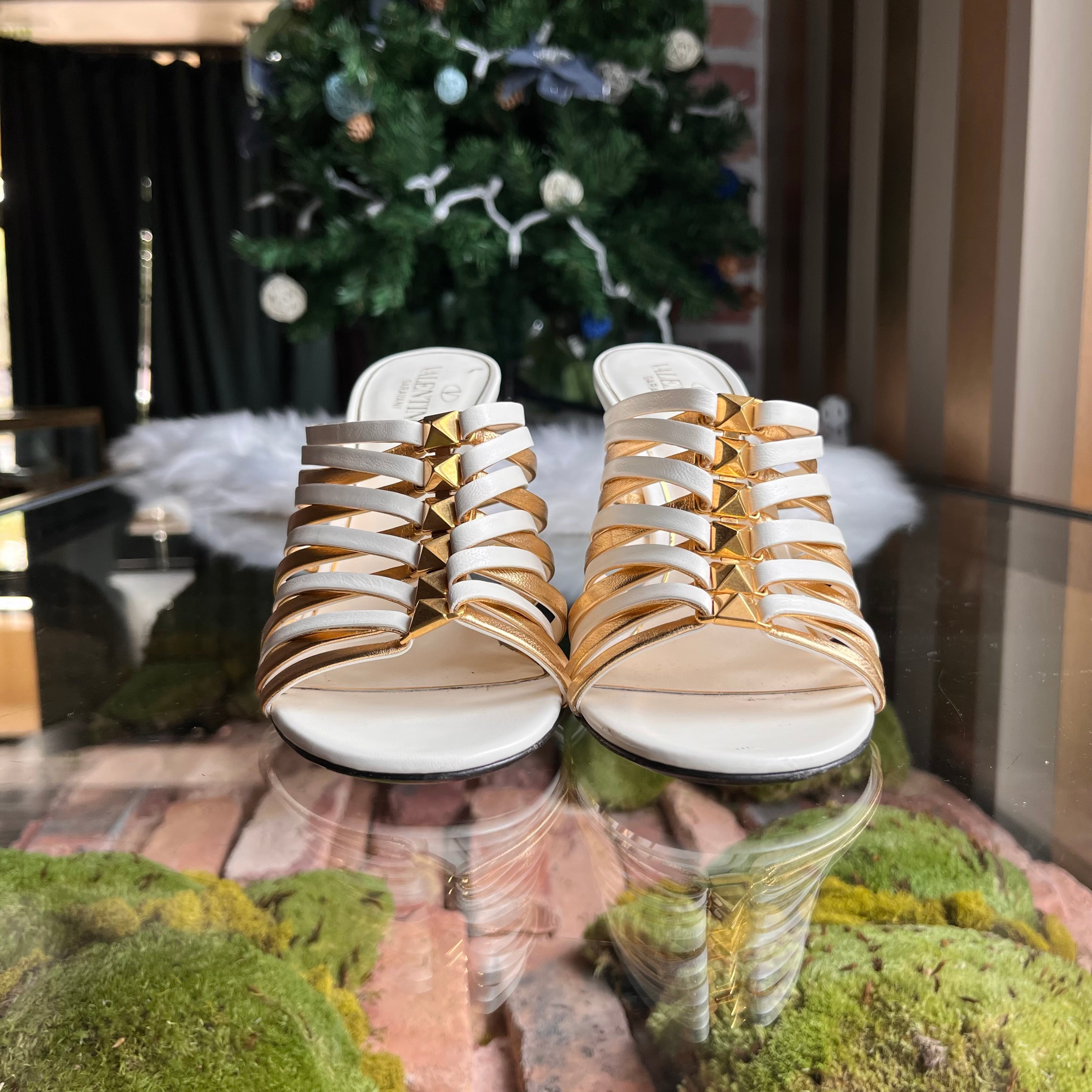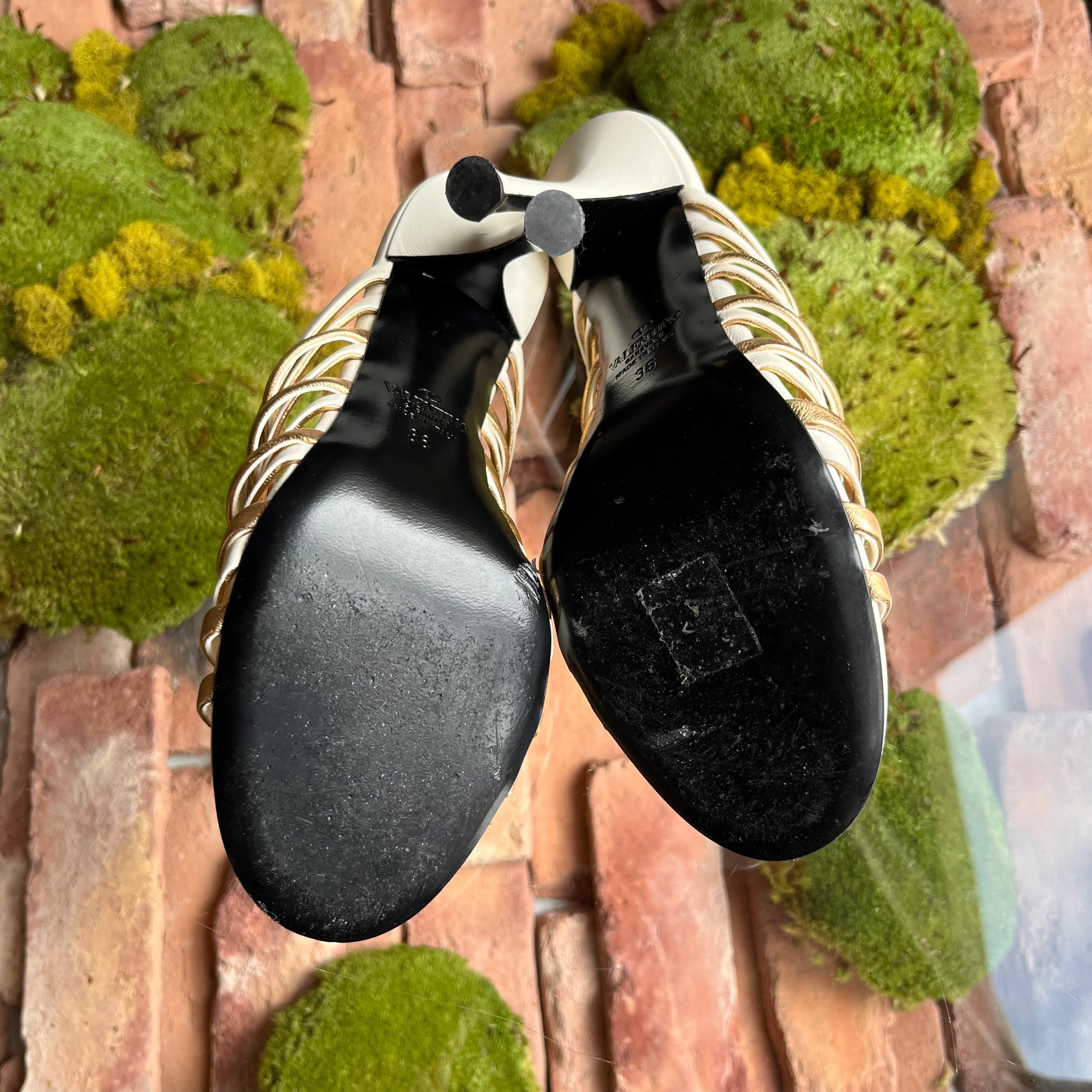 VALENTINO Caged White Gold Calfskin Strappy Heels SZ36(6US)
