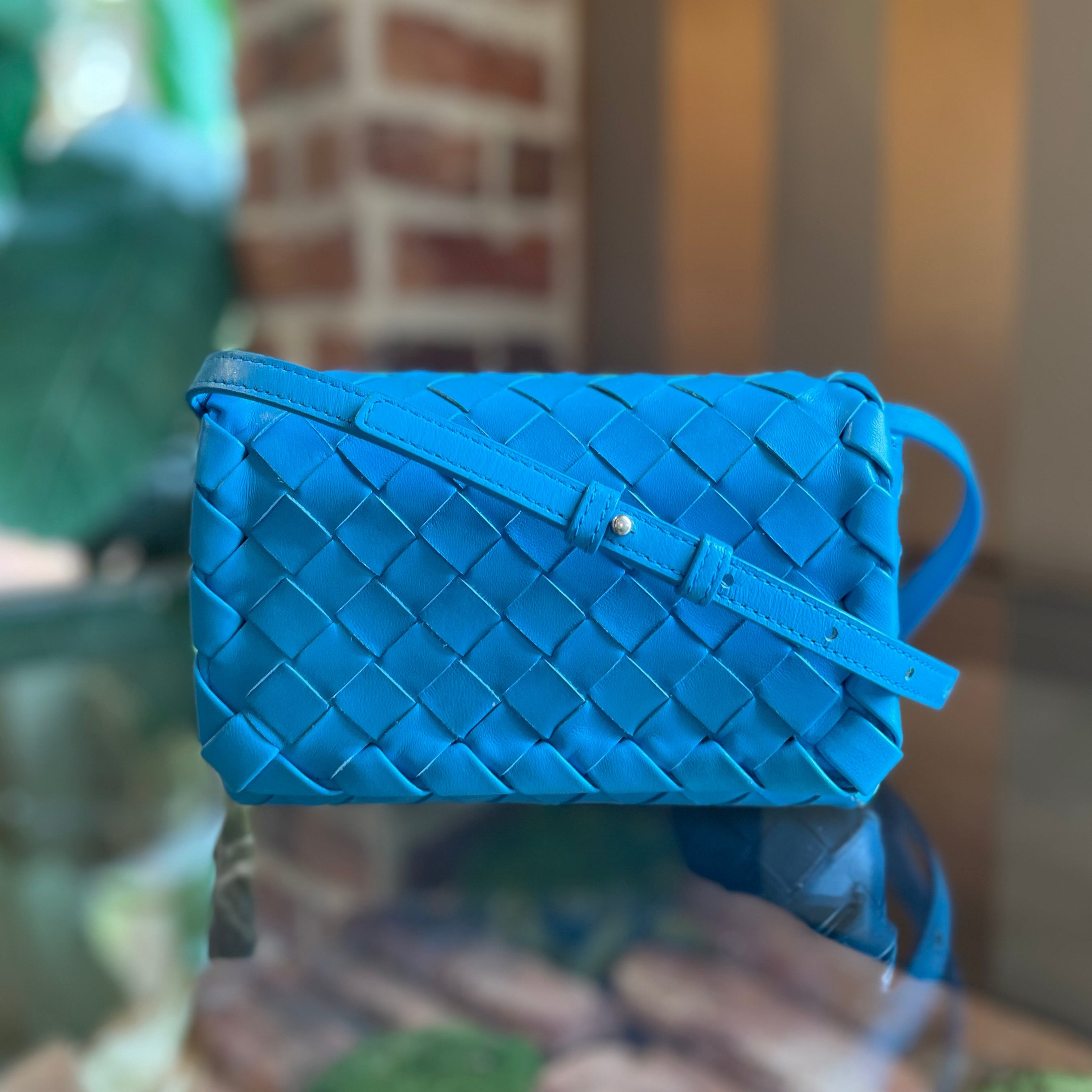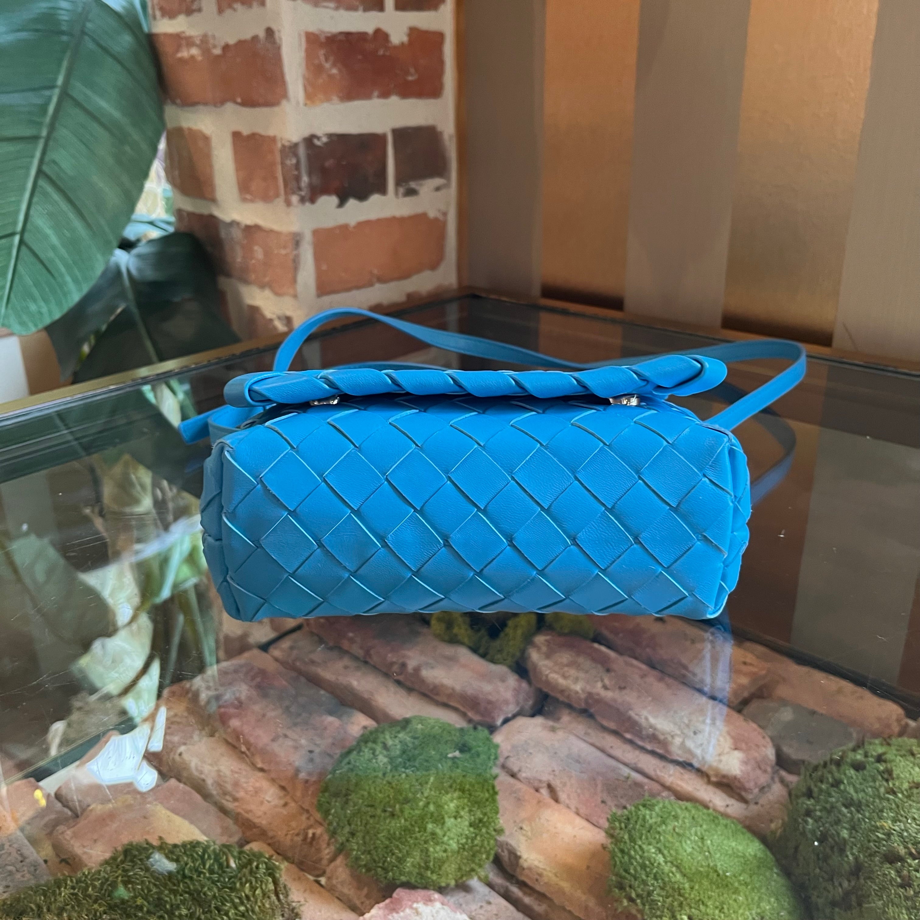 BOTTEGA VENETA Blue Intrecciato Flap Crossbody