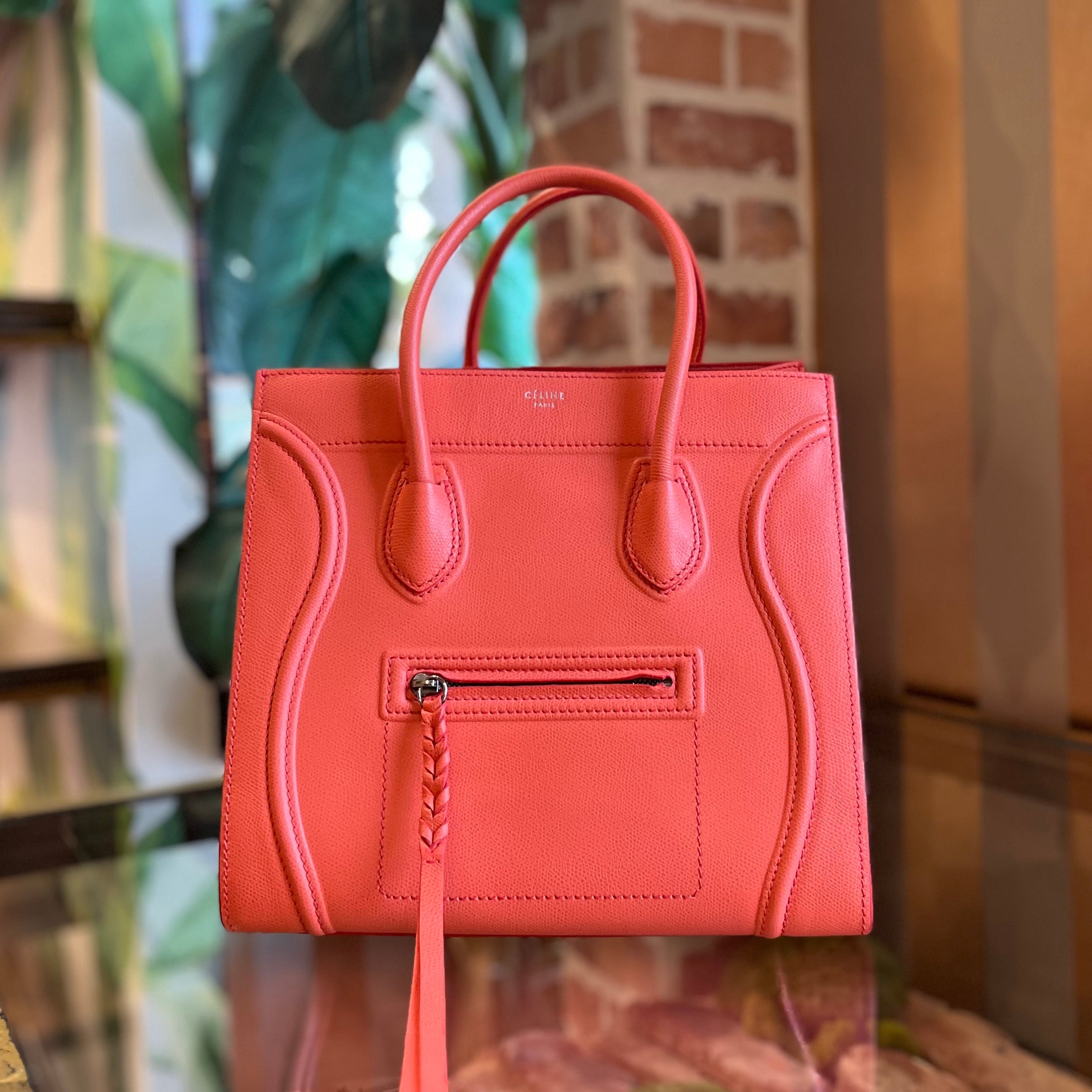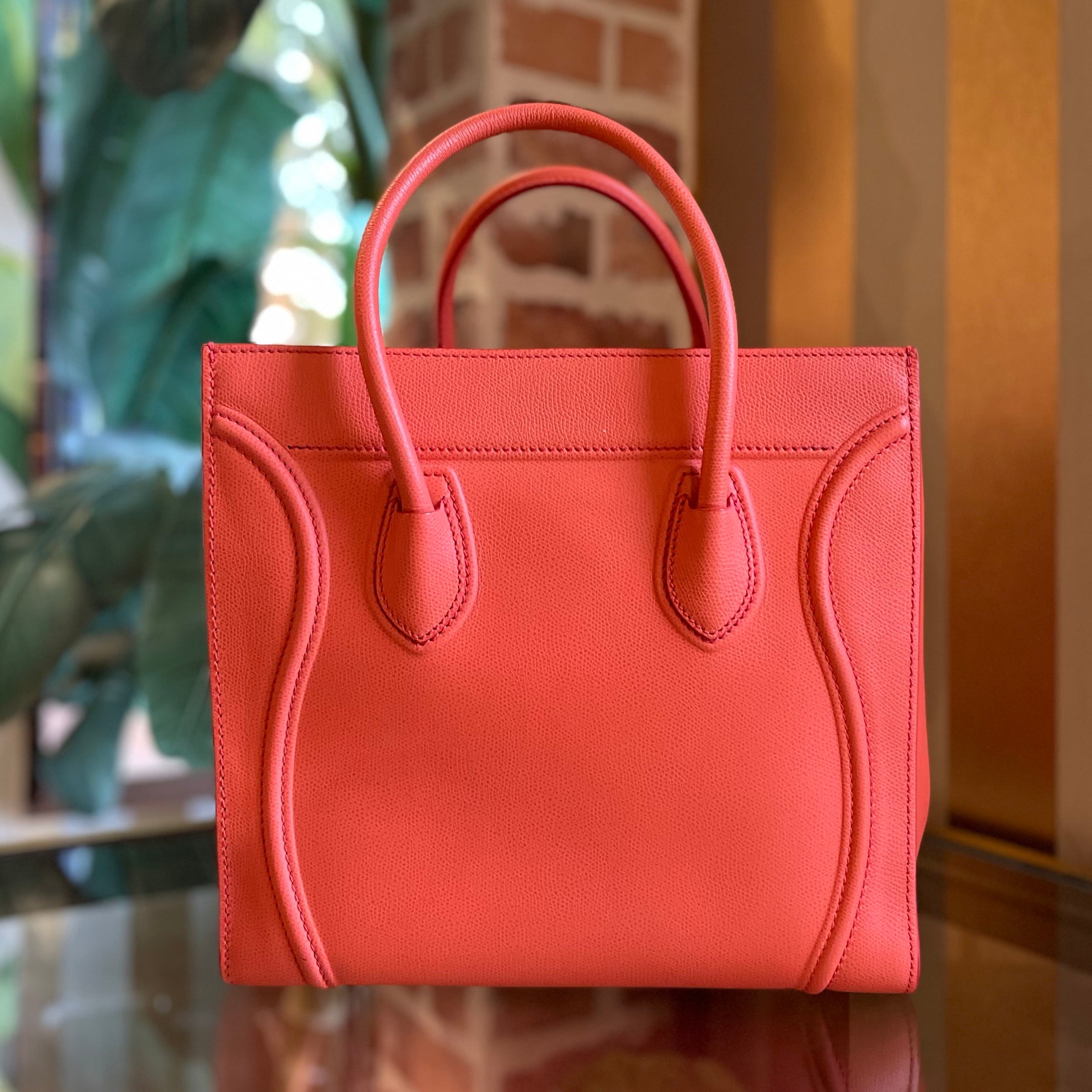 CELINE Luggage Medium Coral Calfskin Tote