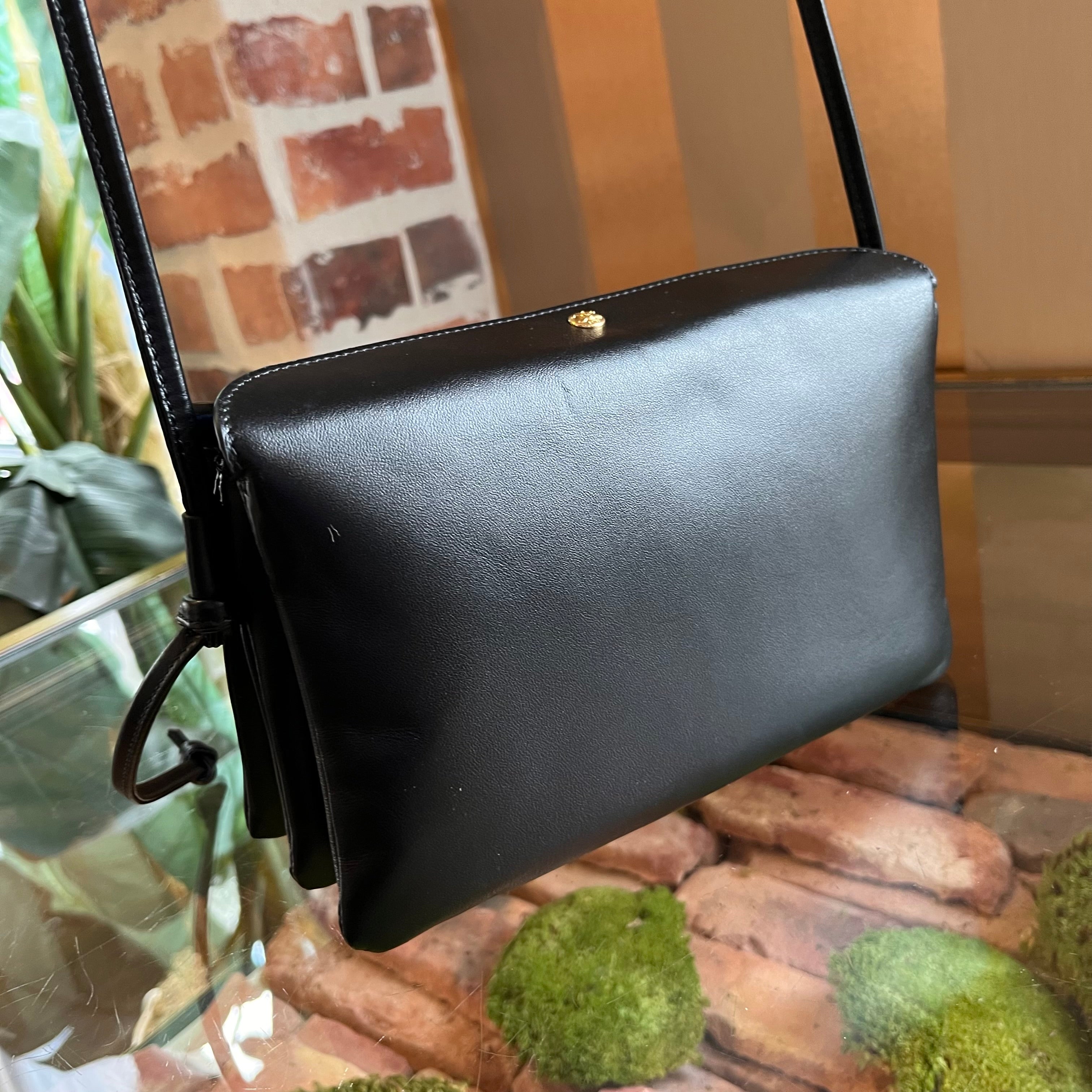 CELINE Trio Black Smooth Lambskin Leather Flap Crossbody