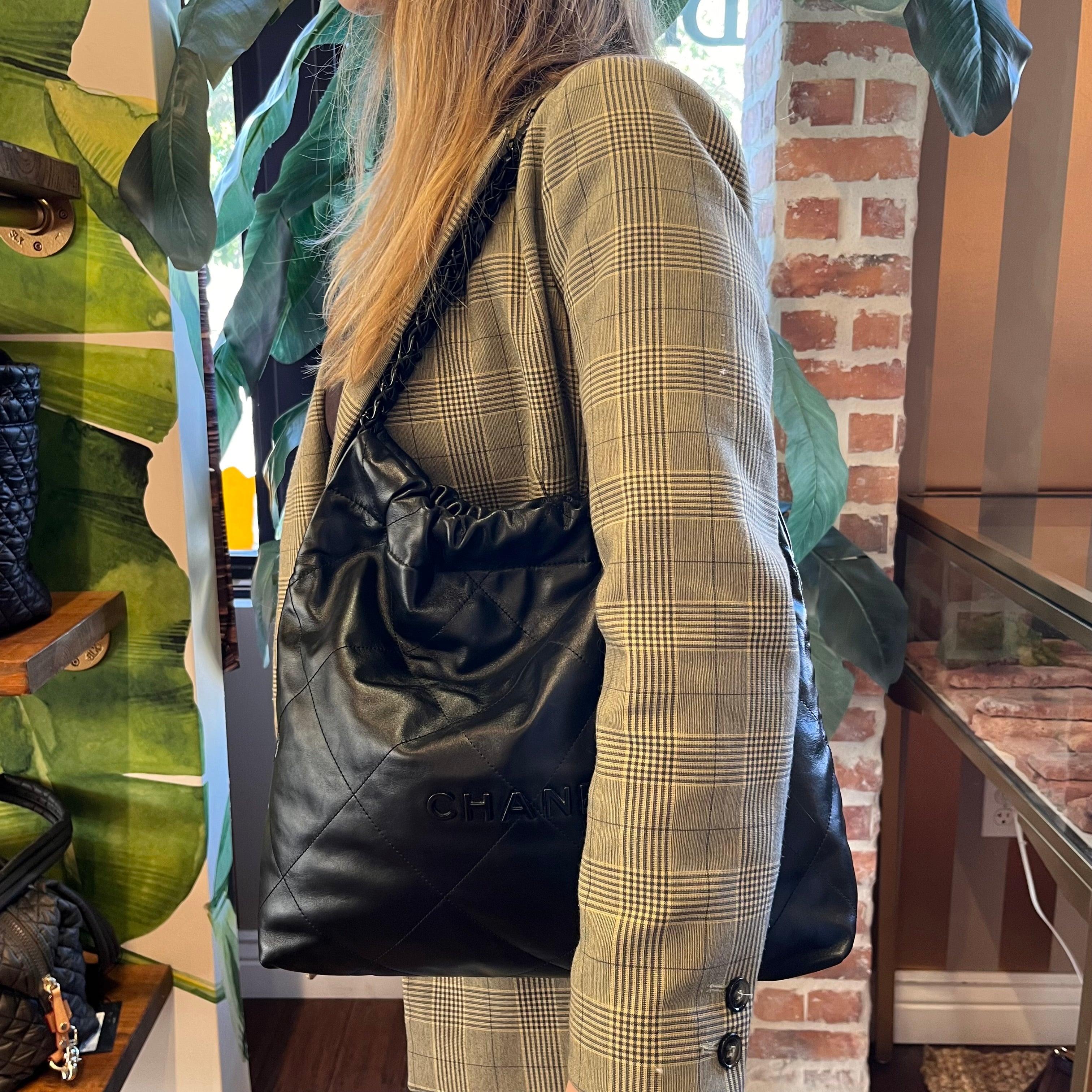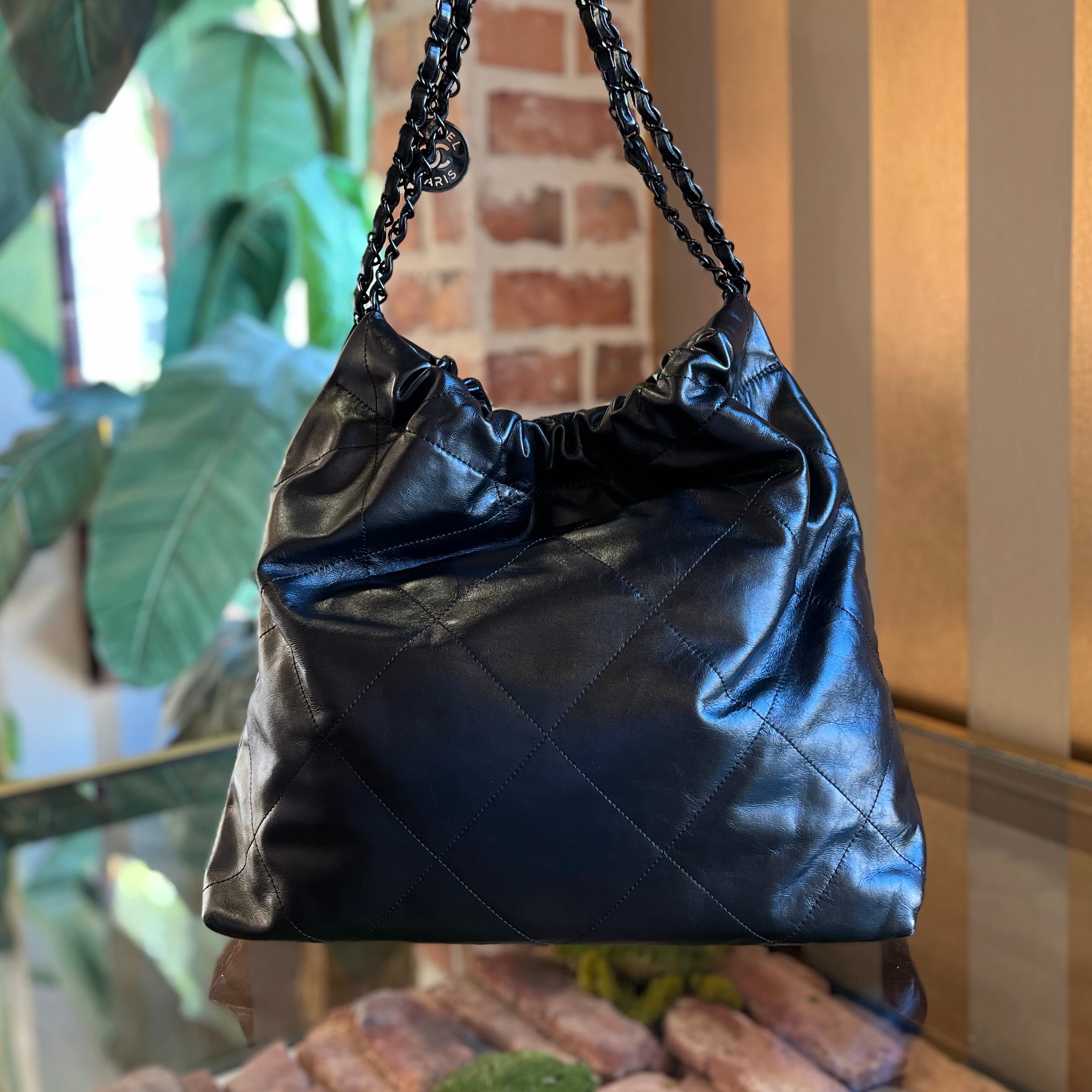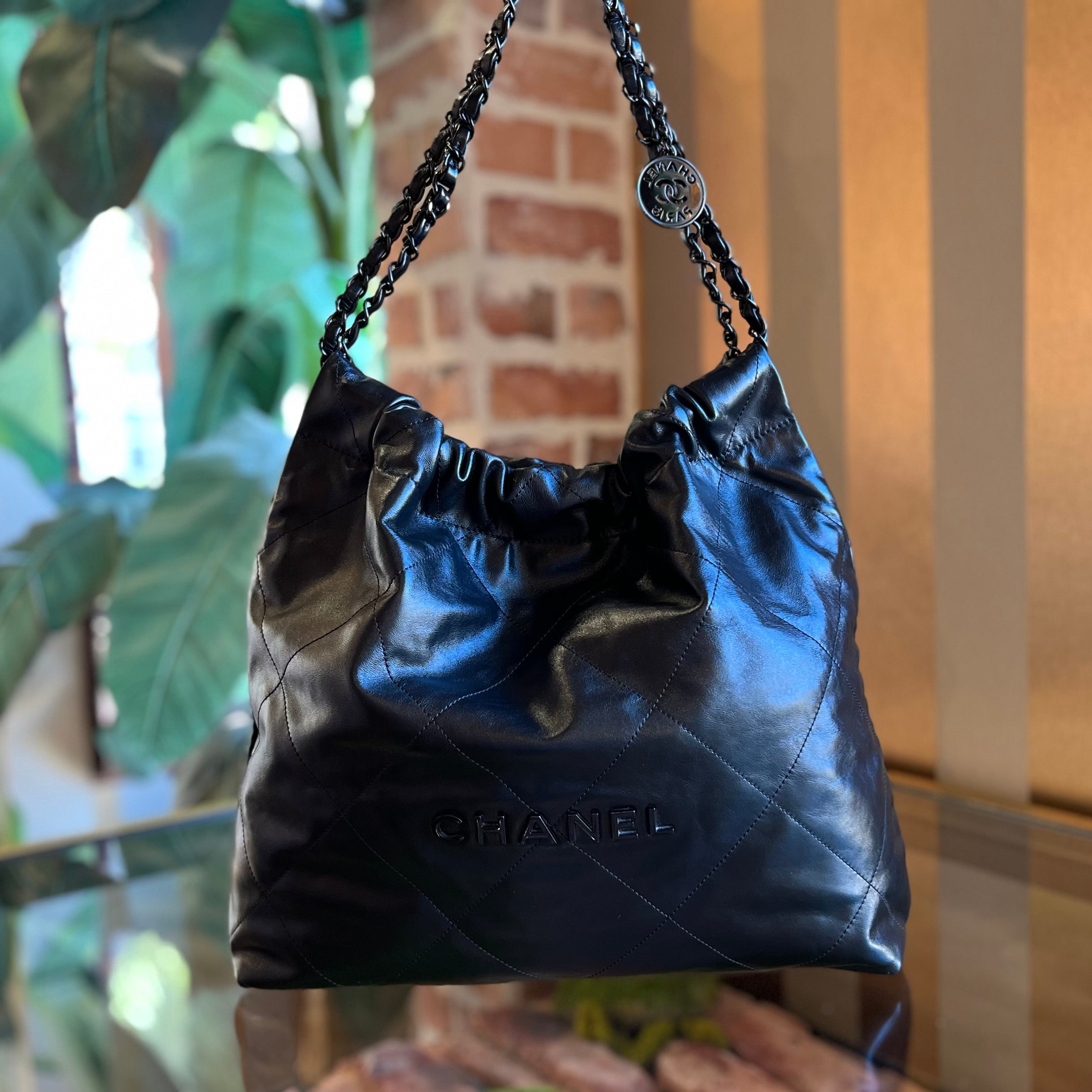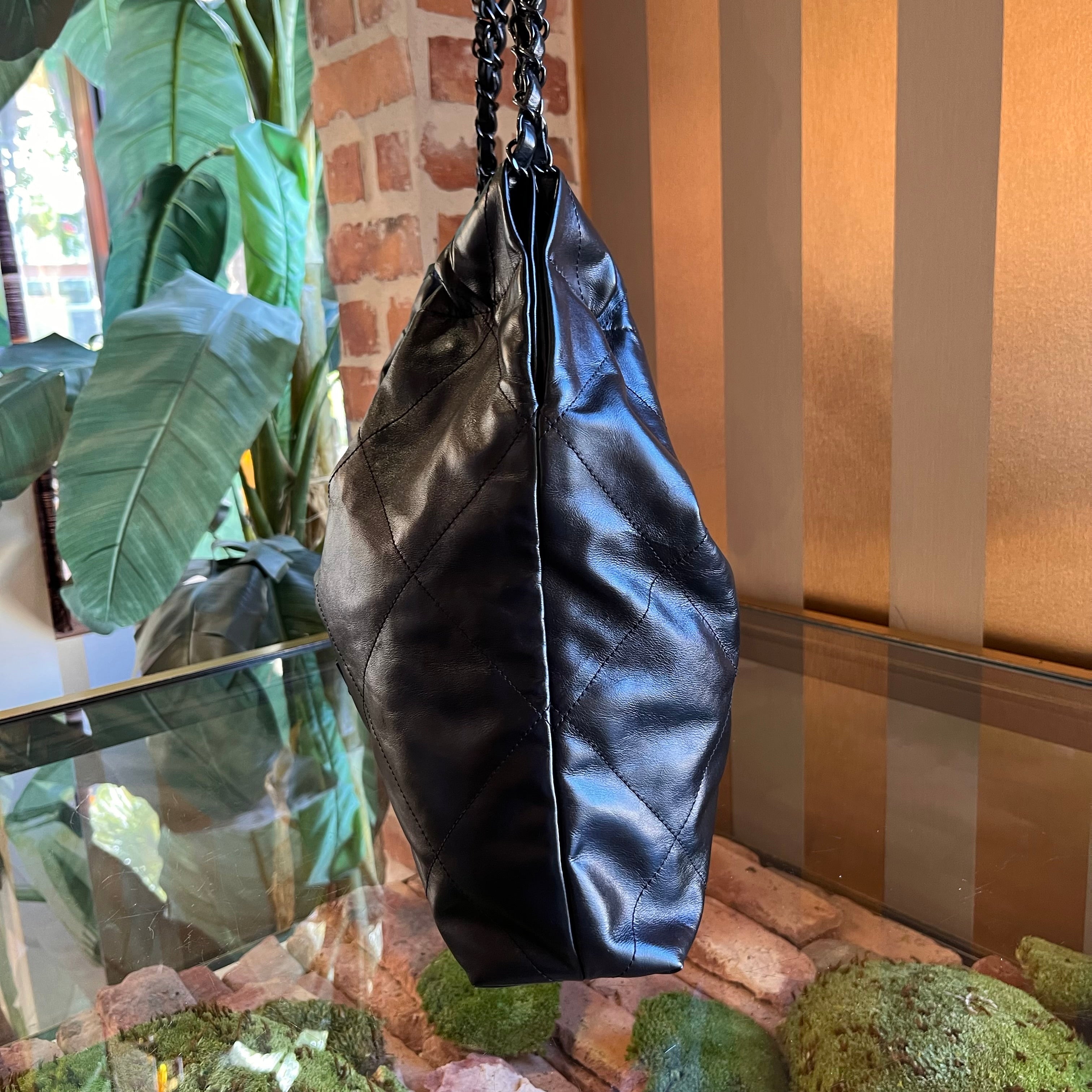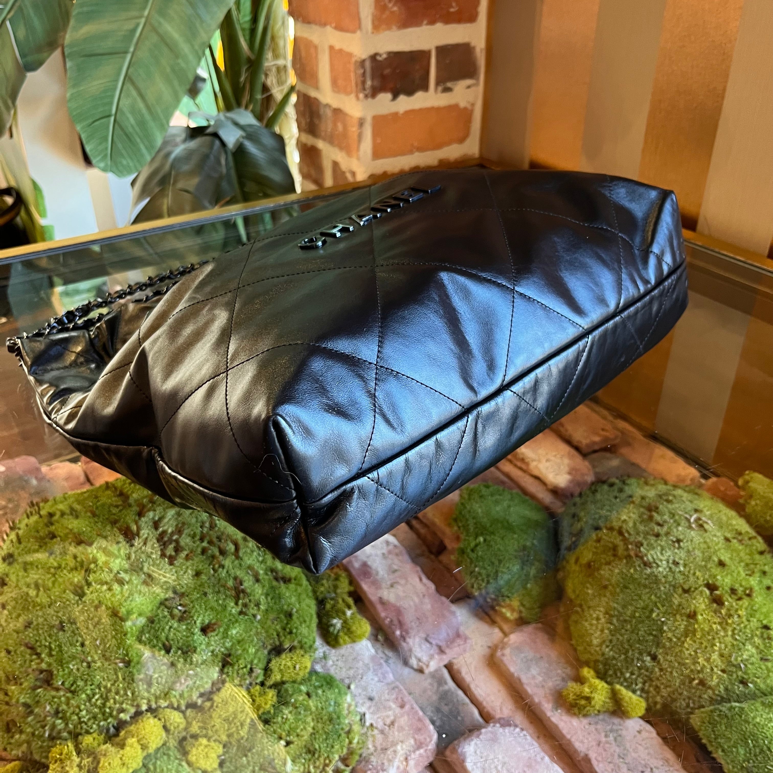CHANEL 22 Small So Black Shiny Calfskin Tote Bag