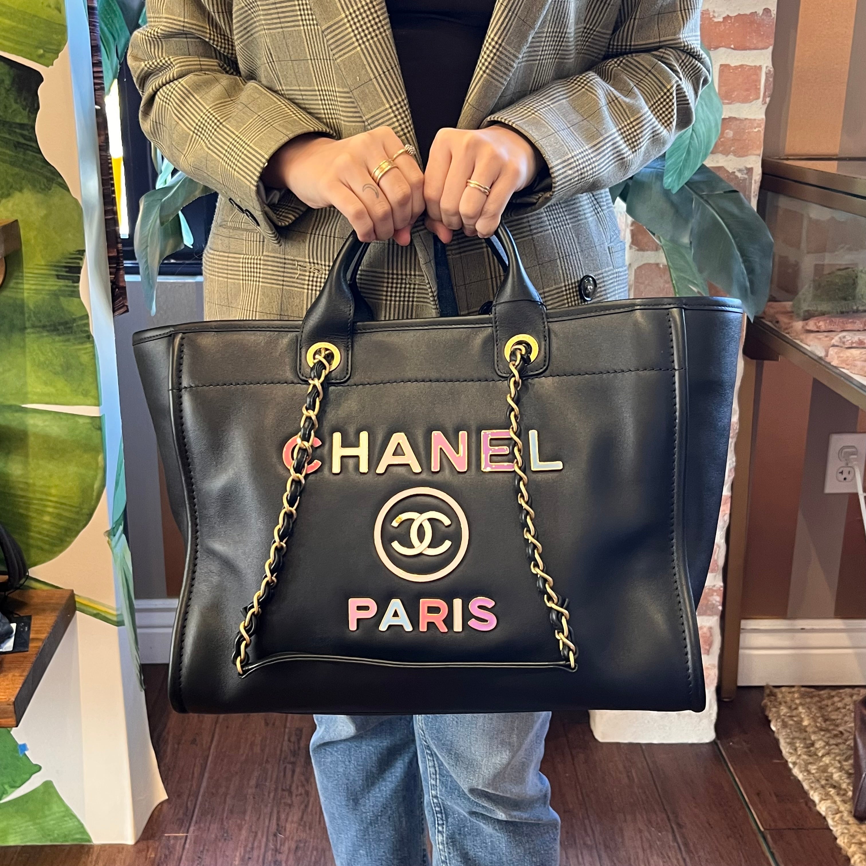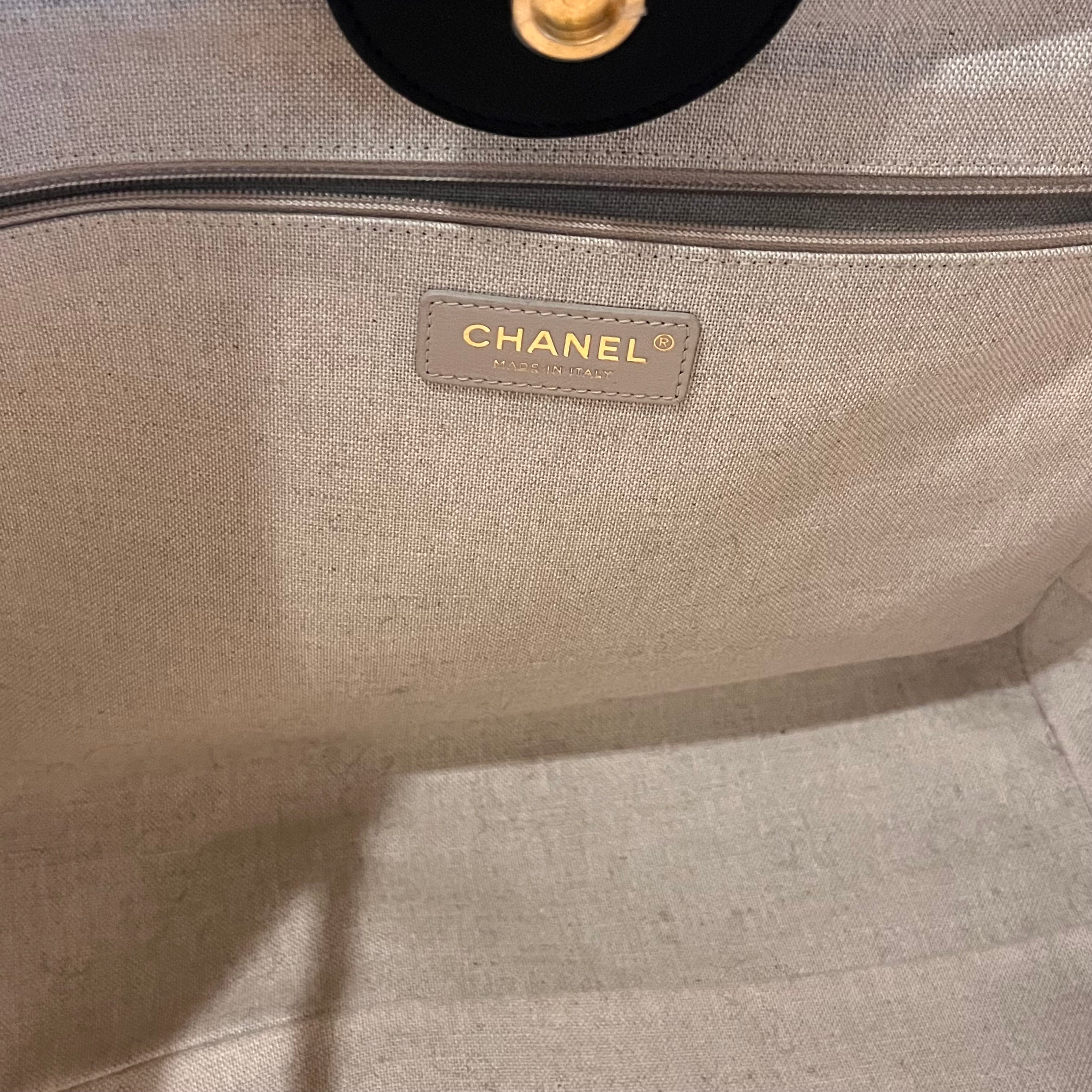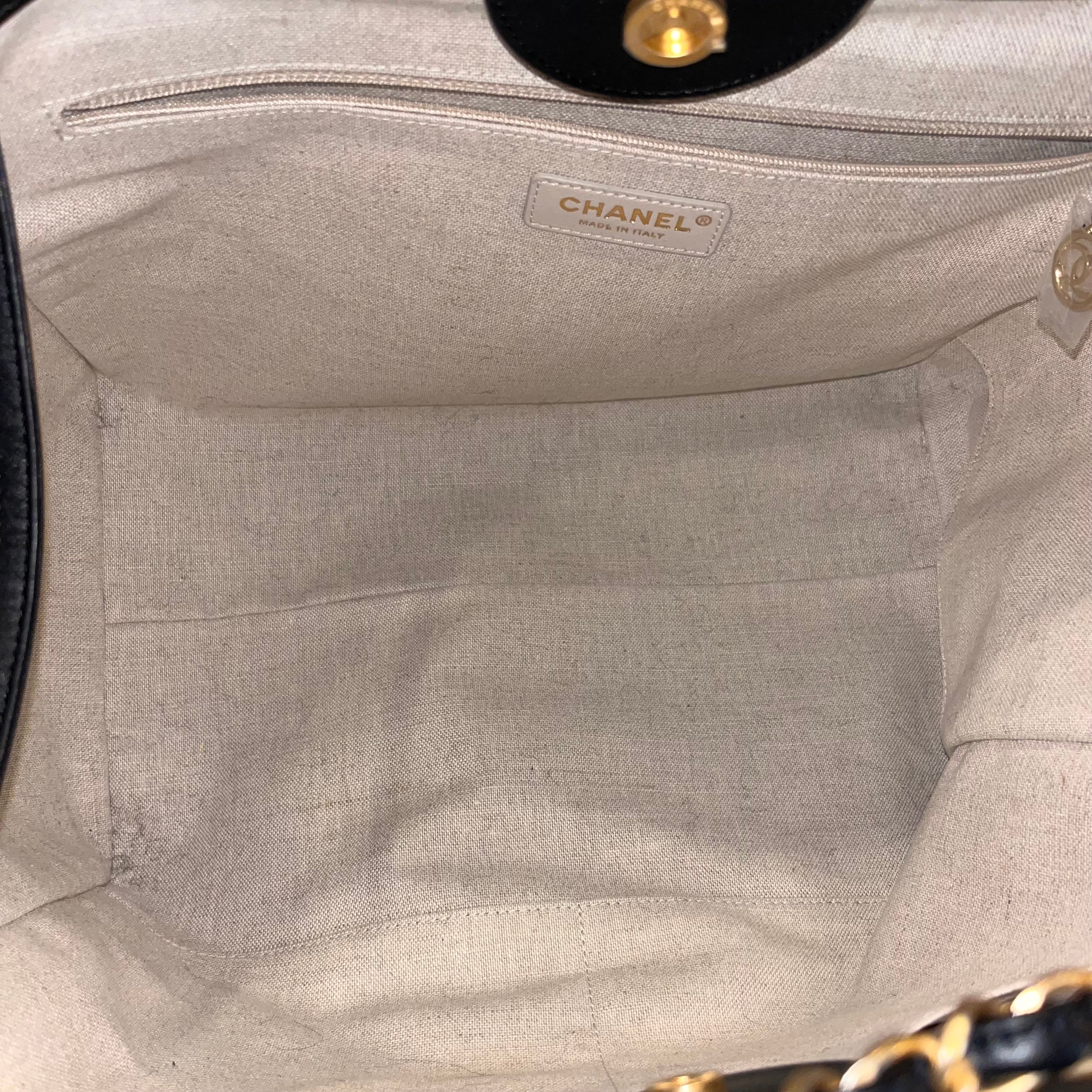 CHANEL Large Deauville Black Calfskin Enamel Tote