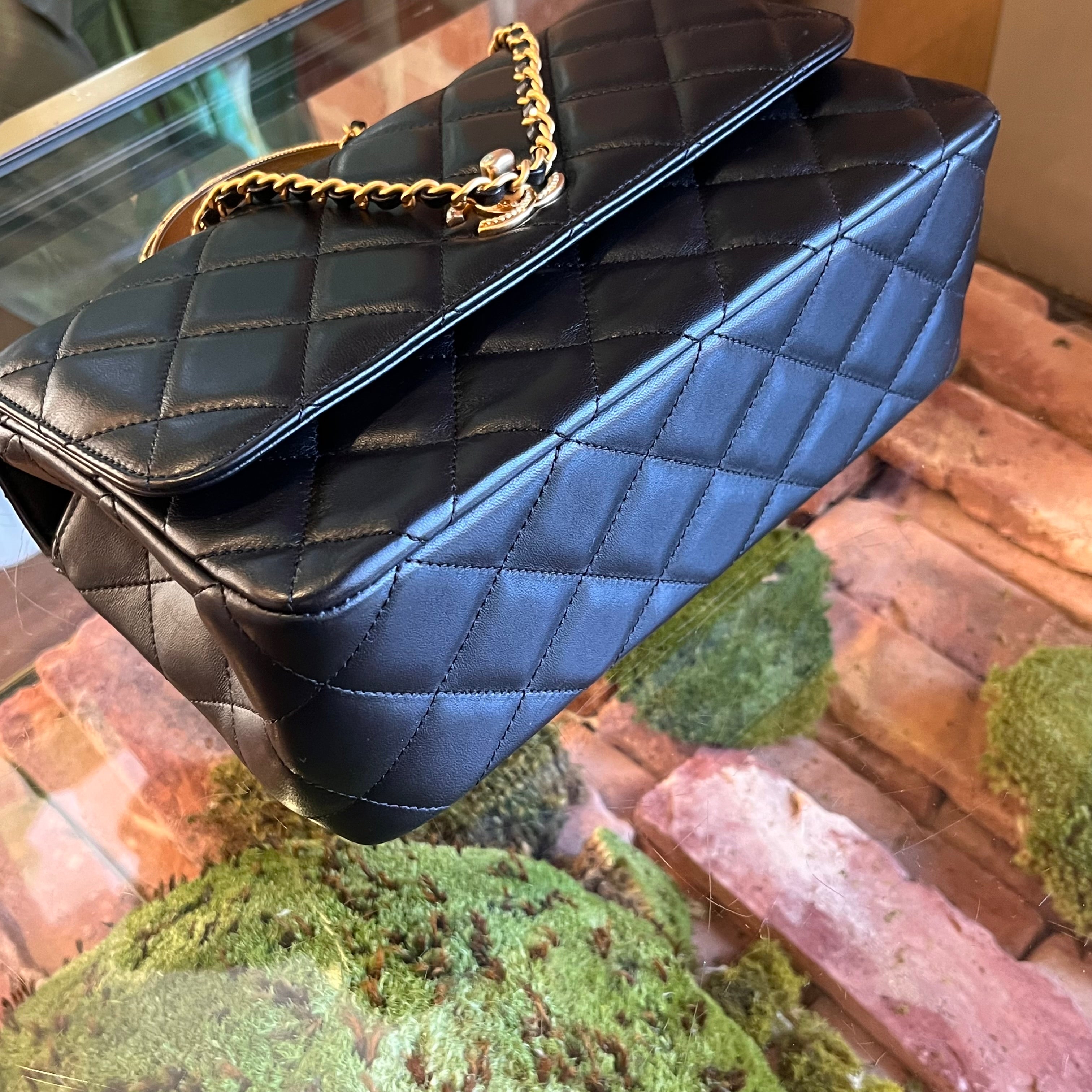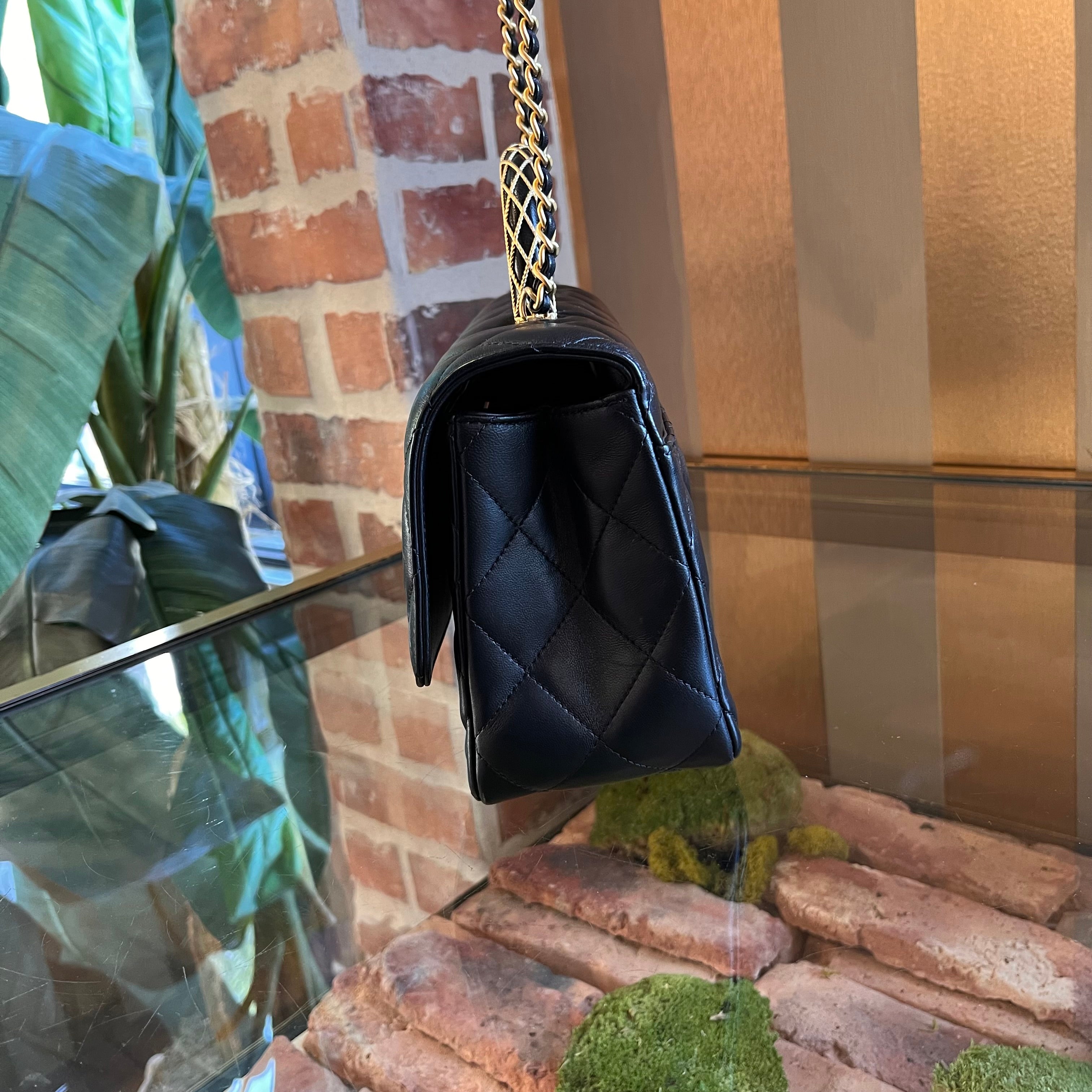 CHANEL Twist Flap Black Lambskin Metal Quilted Chain Top Handle Bag