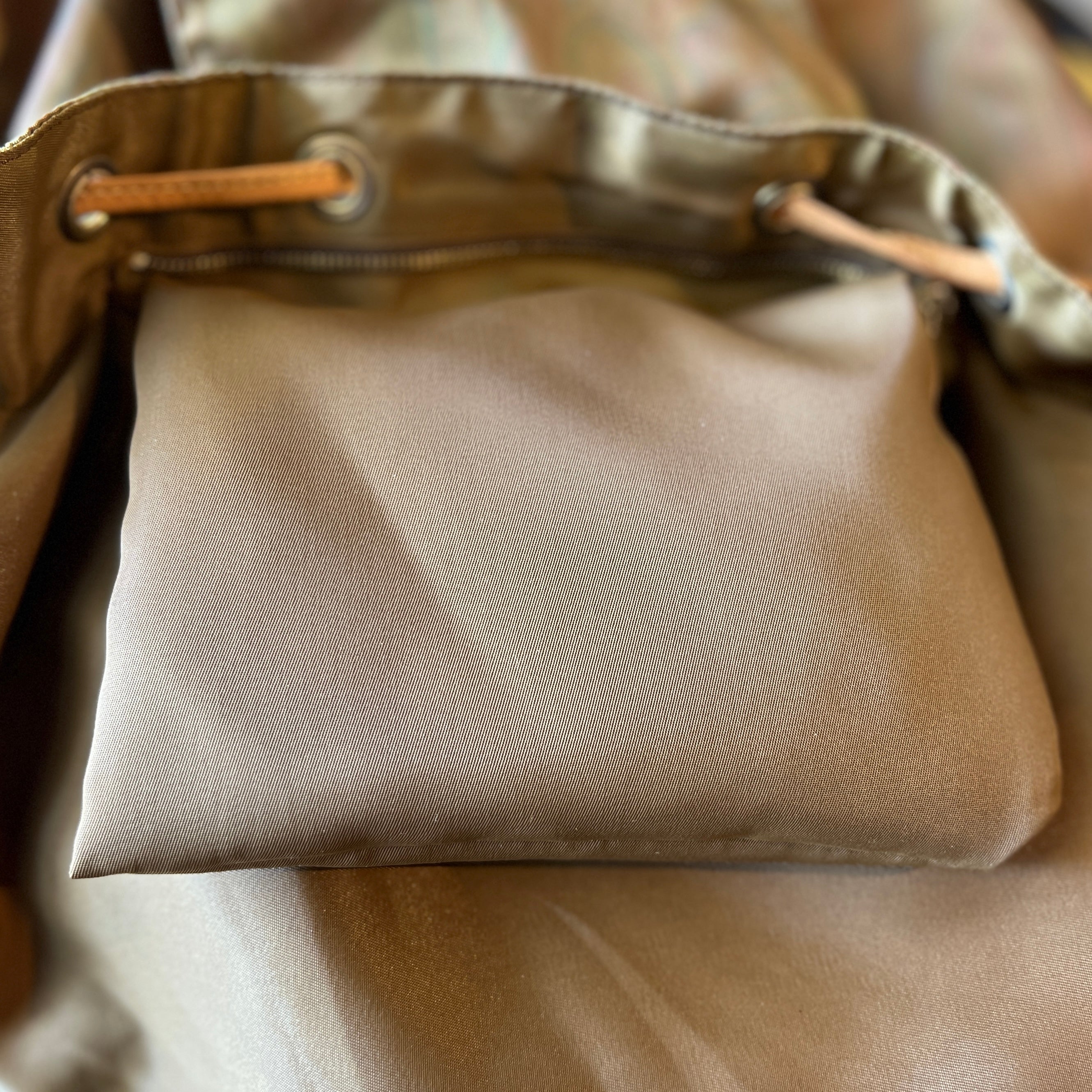 - Exterior: The exterior is vibrant and beautiful displaying wear to the raw hide leather detailing such as: rubbing, scuffing, water spots and other signs of previous use. Overall it's in good condition.