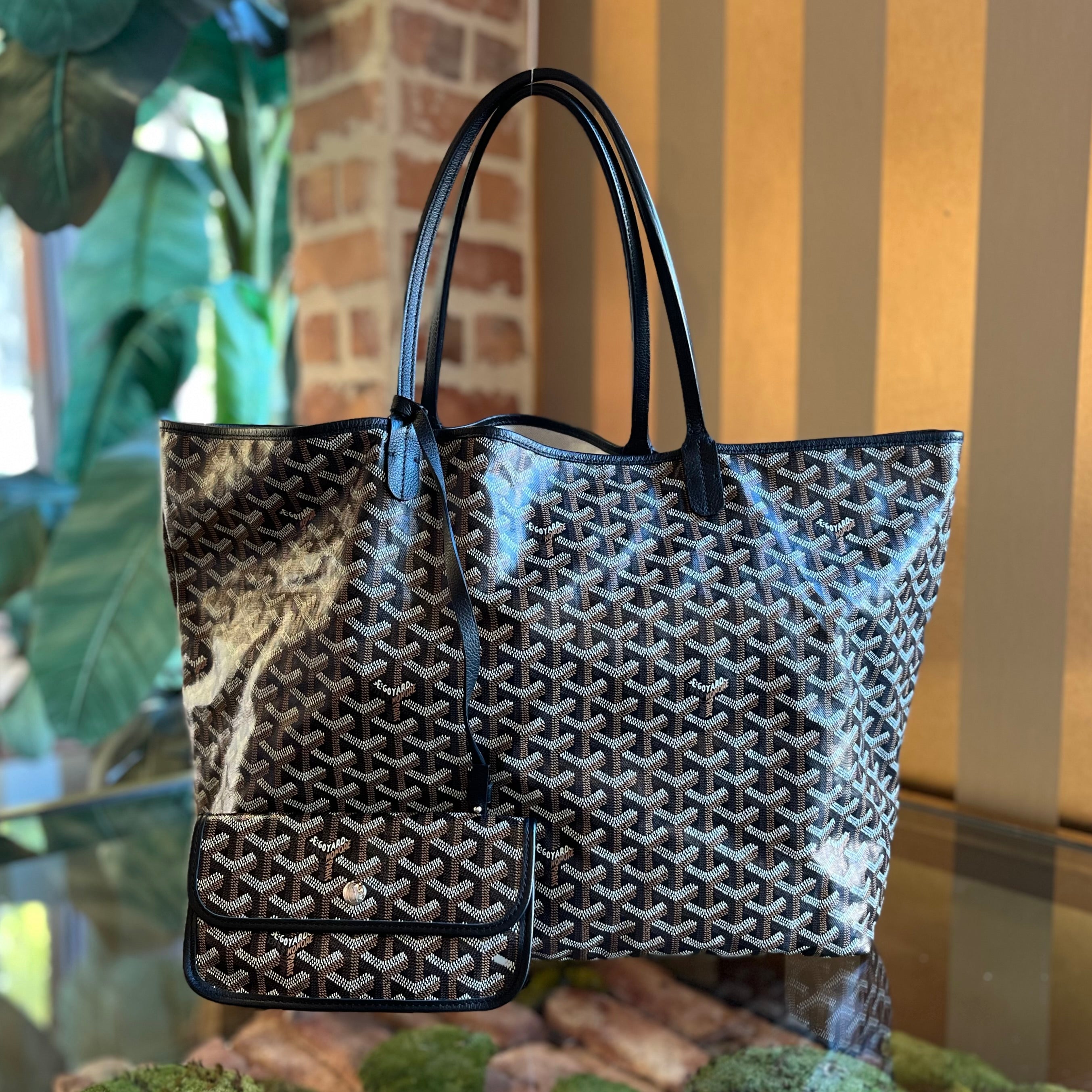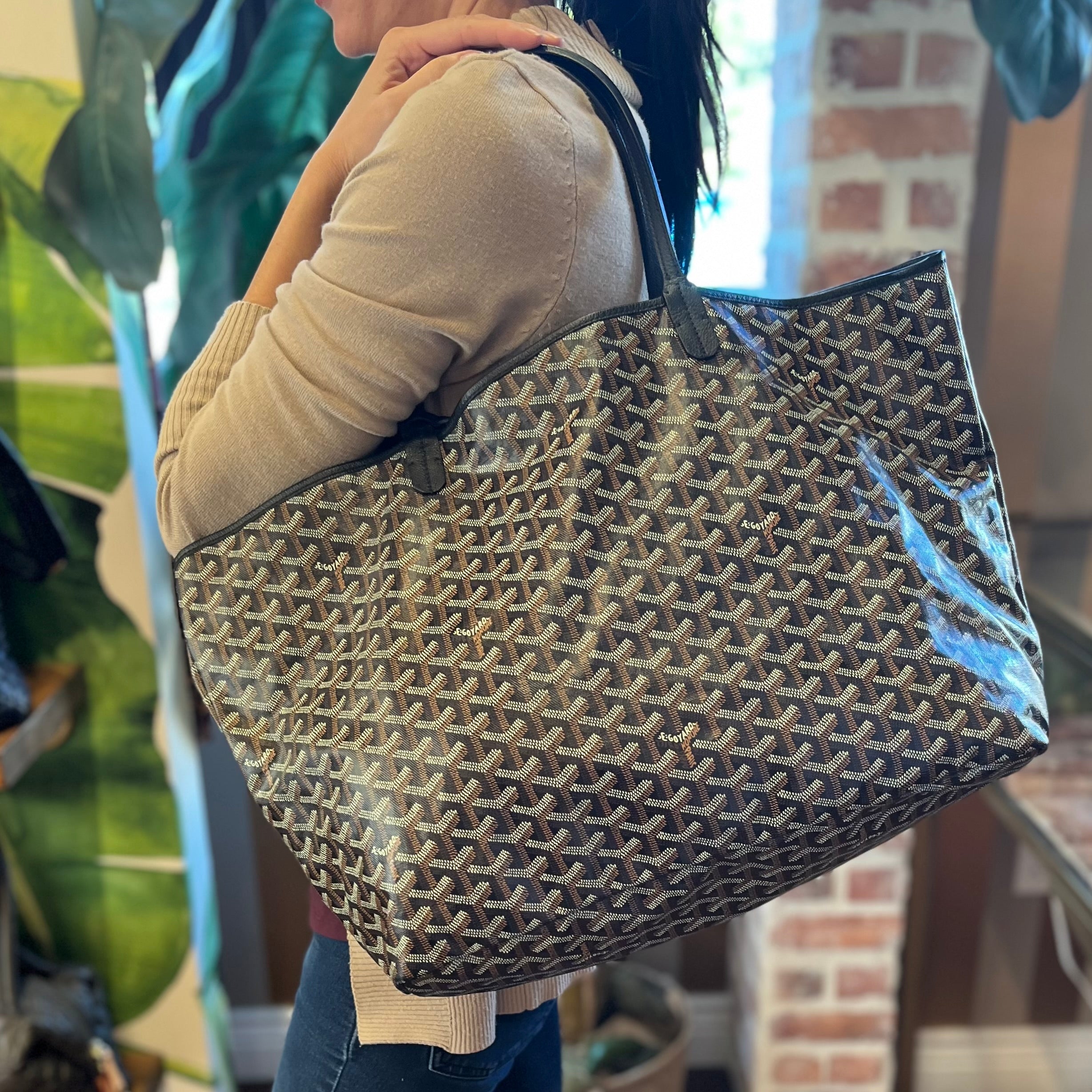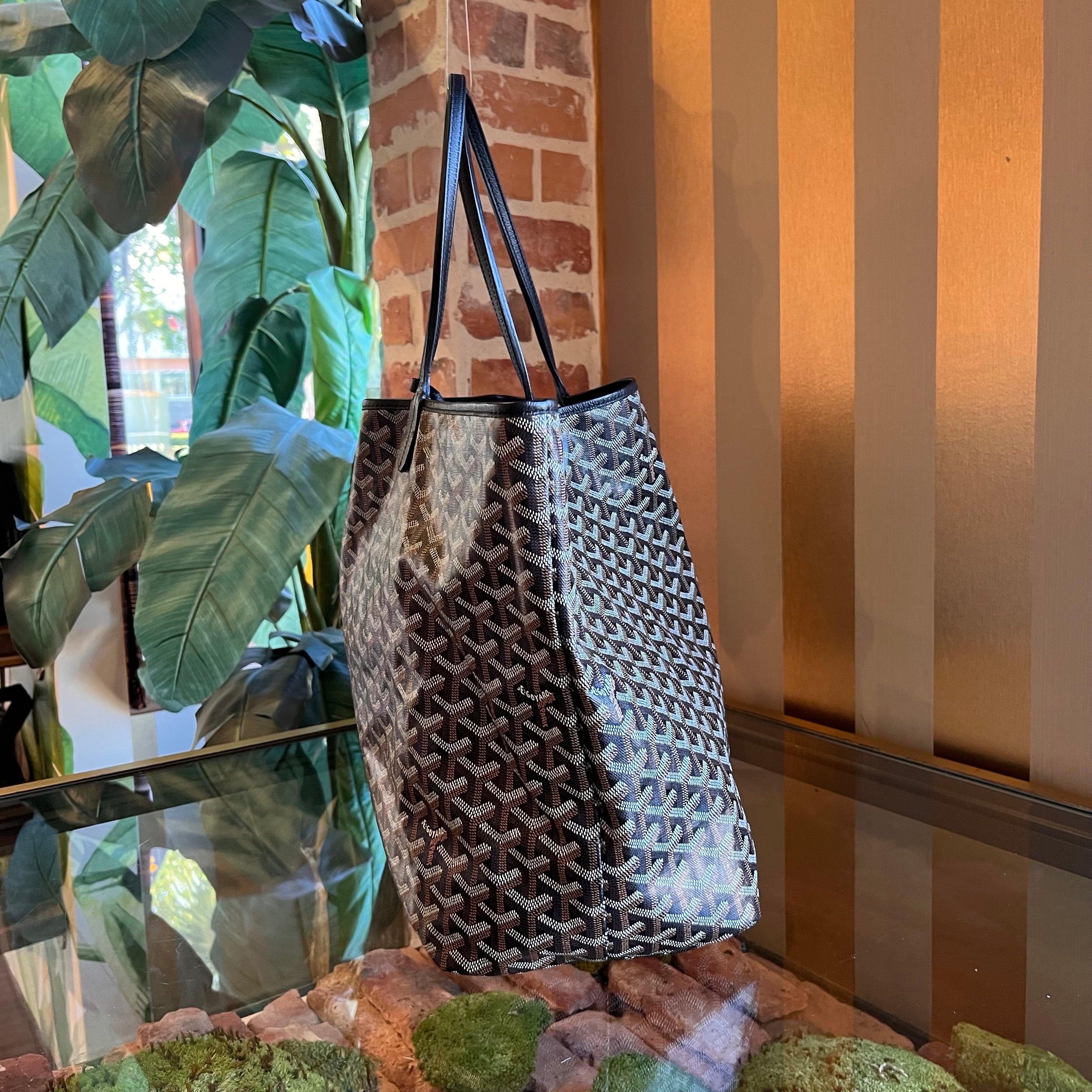 GOYARD St.Louis GM Black Goyardine Canvas Chevroches Tote Bag