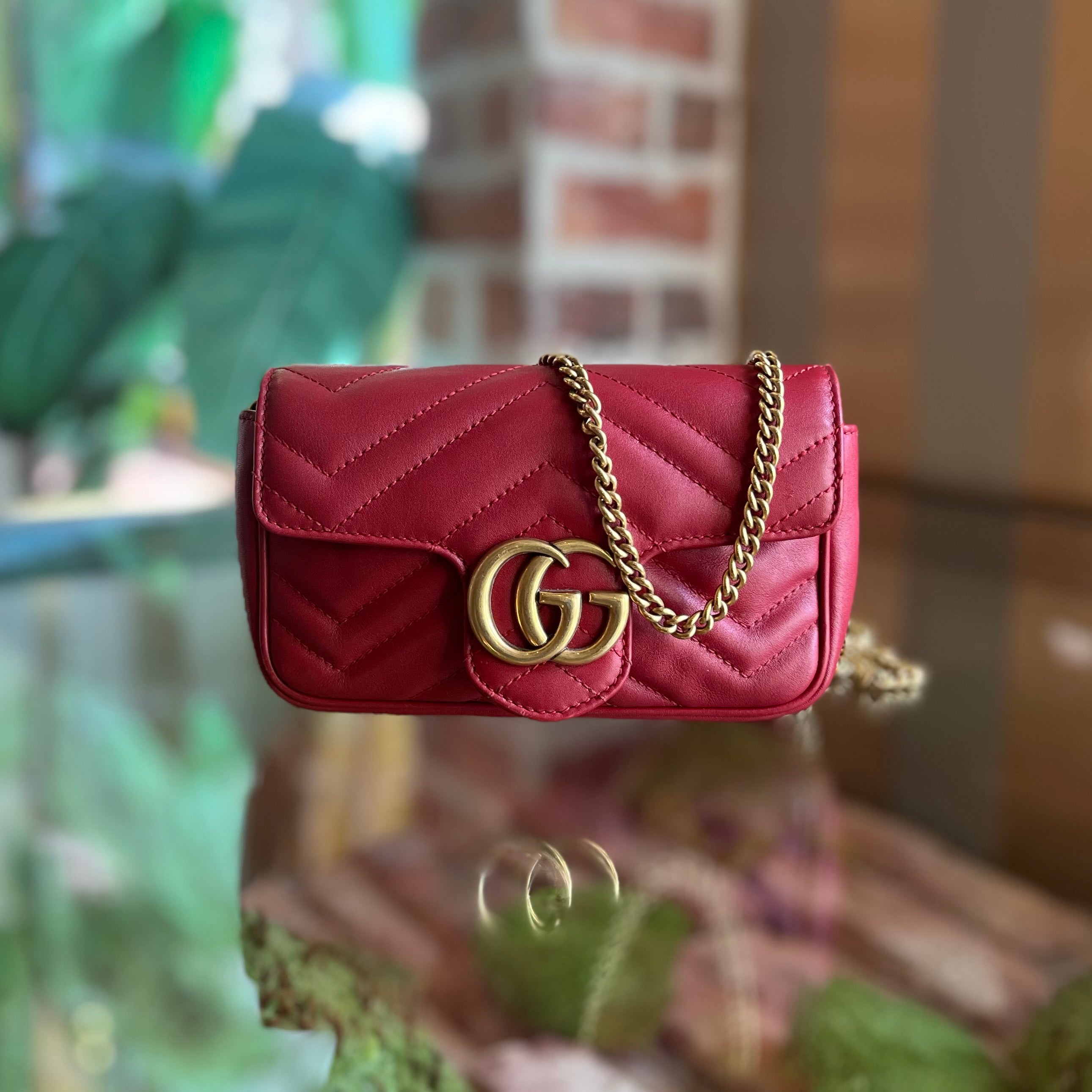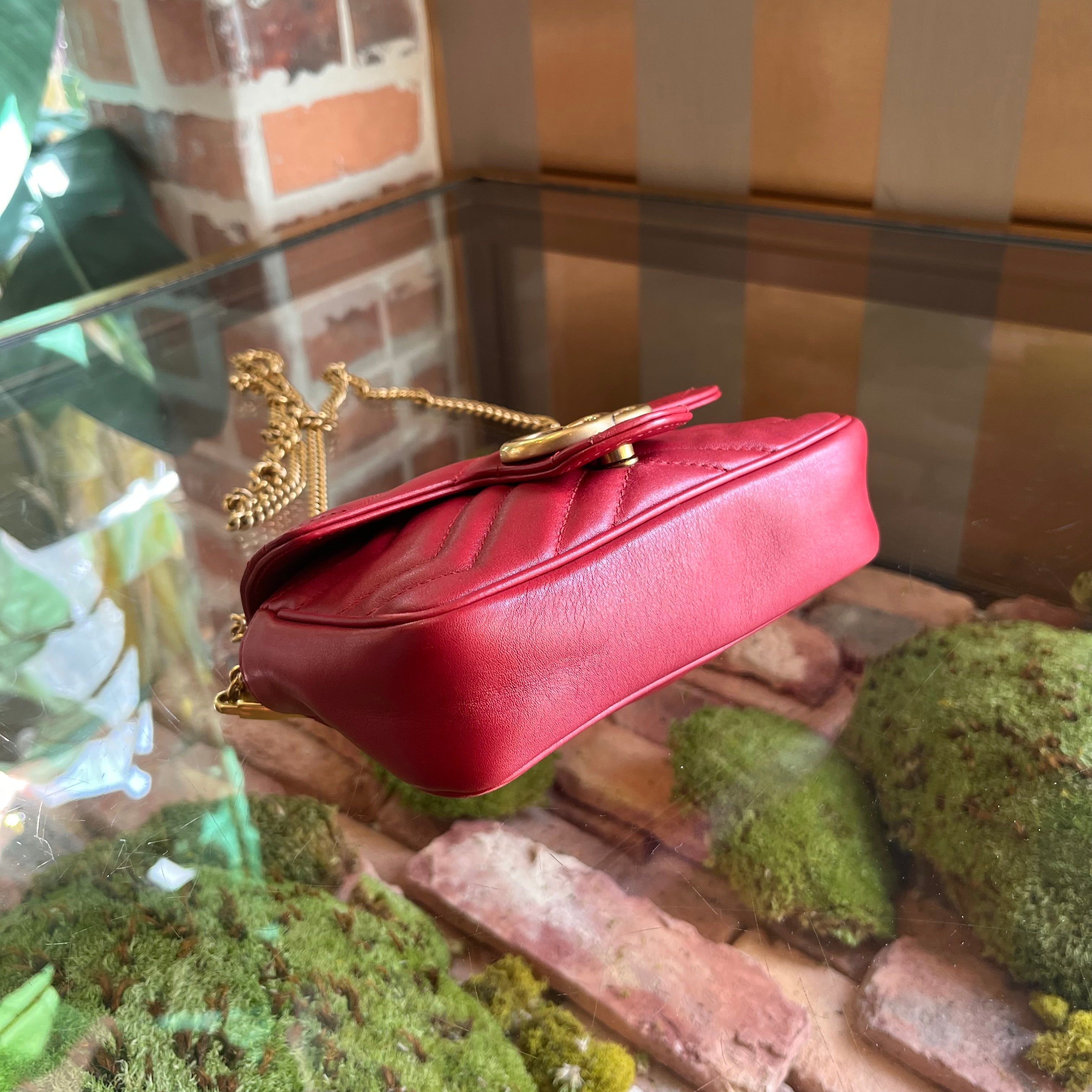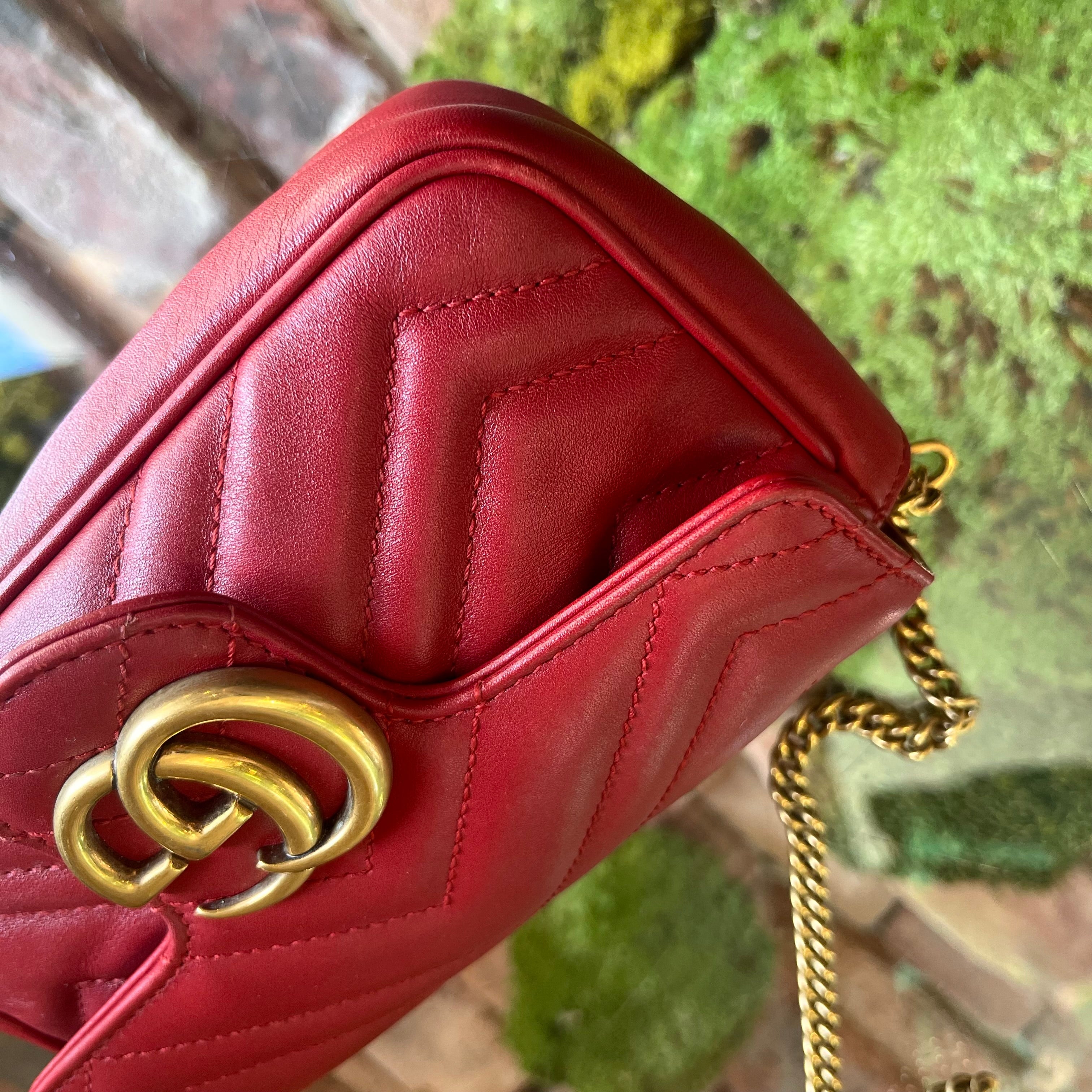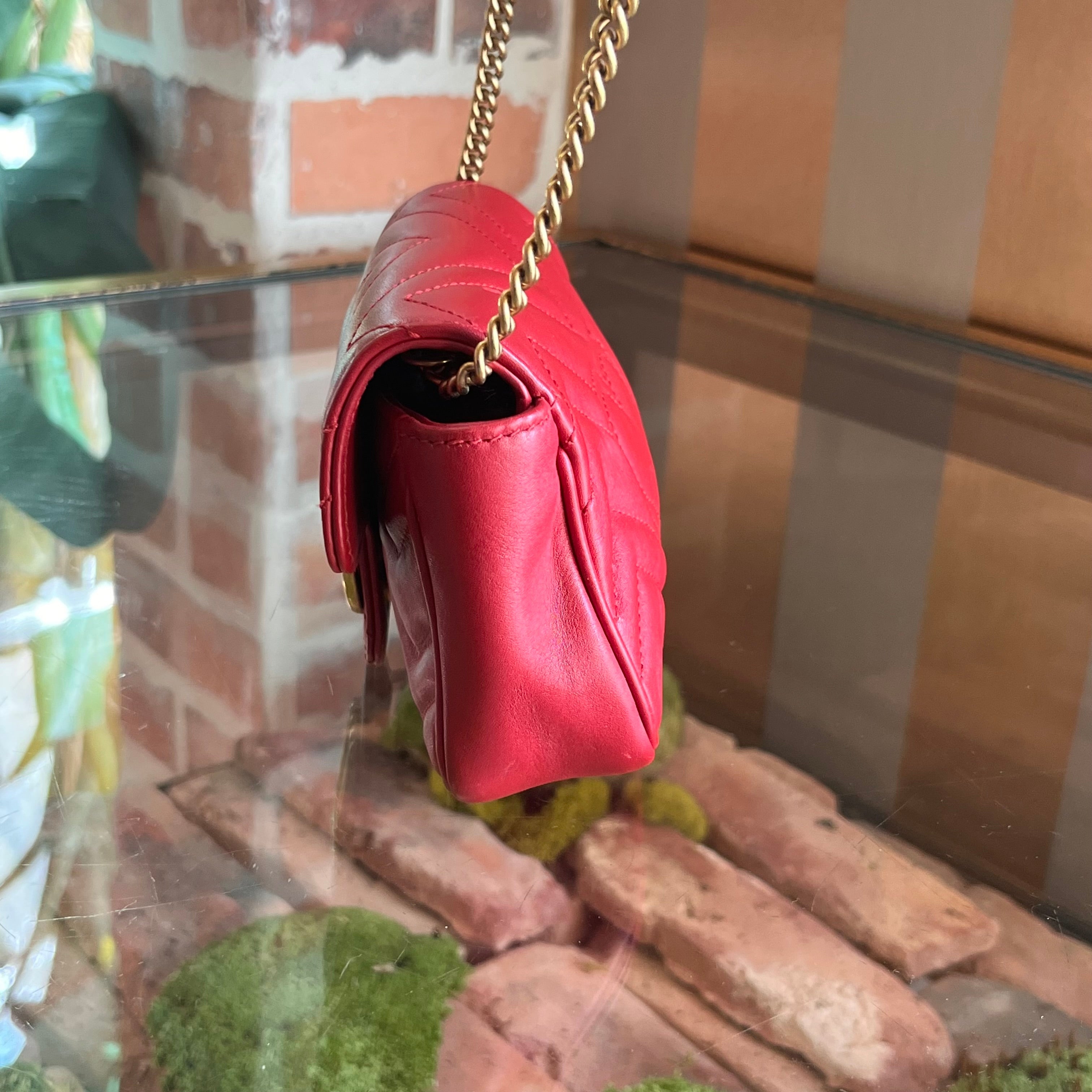GUCCI GG Marmont Super Mini Red Chevron Leather Crossbody Bag