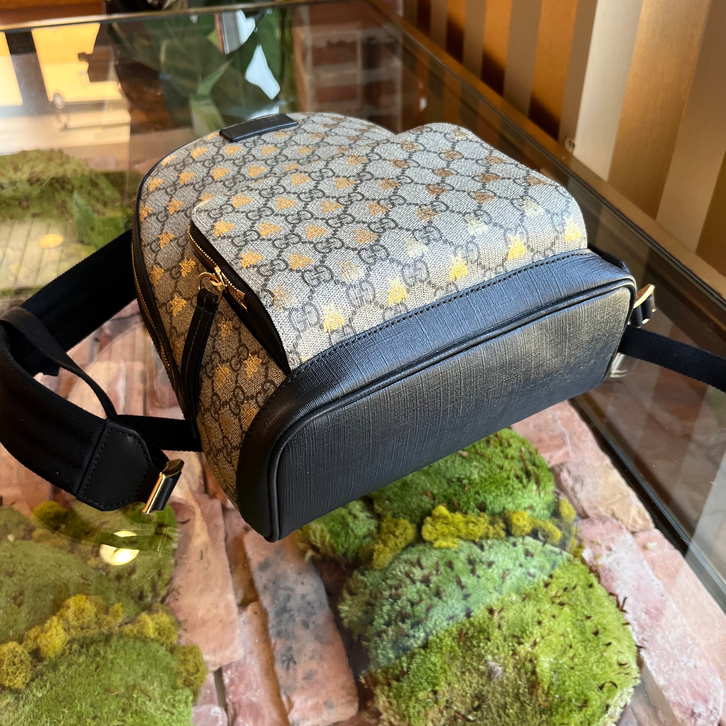 GUCCI Day Small GG Supreme Monogram Bees Print Backpack