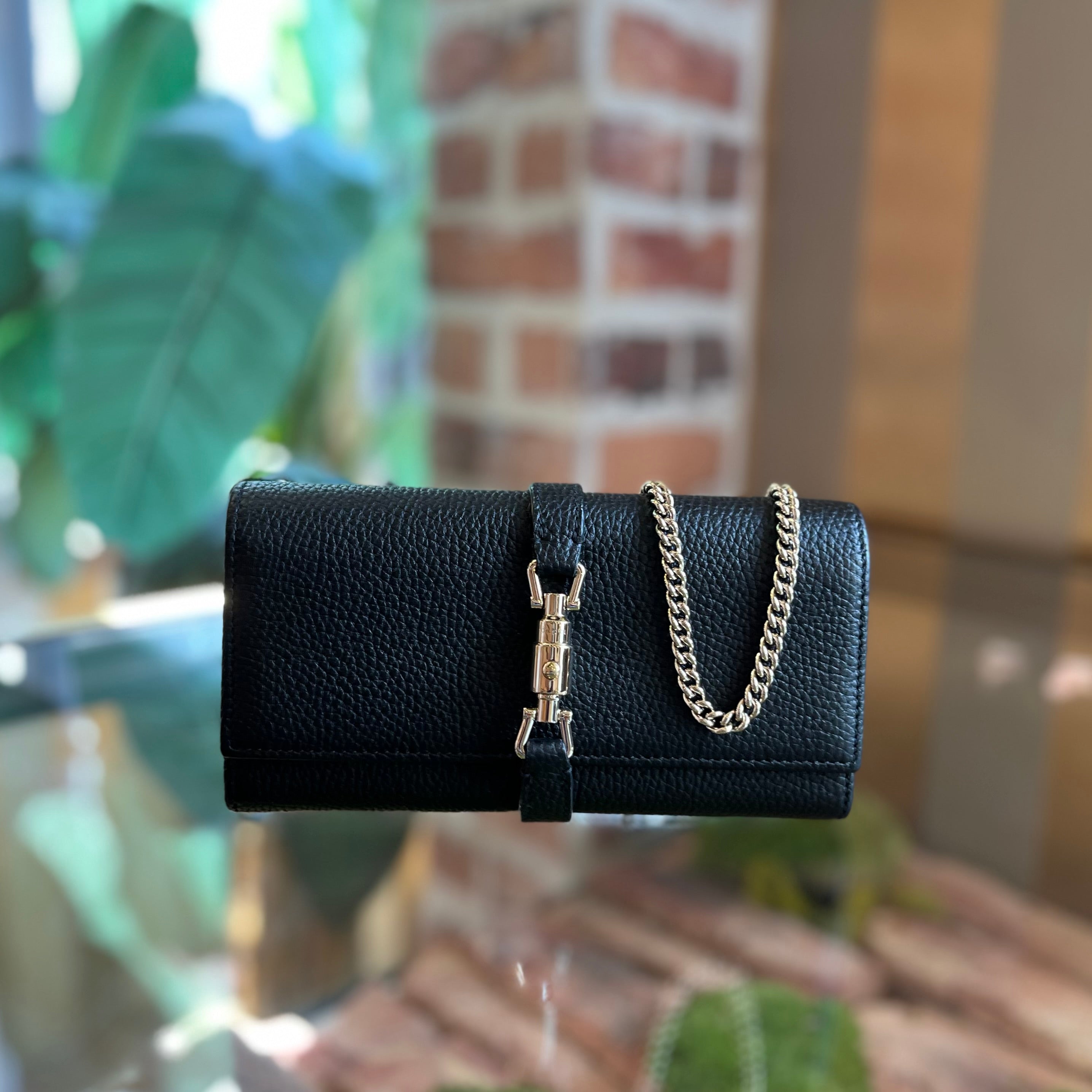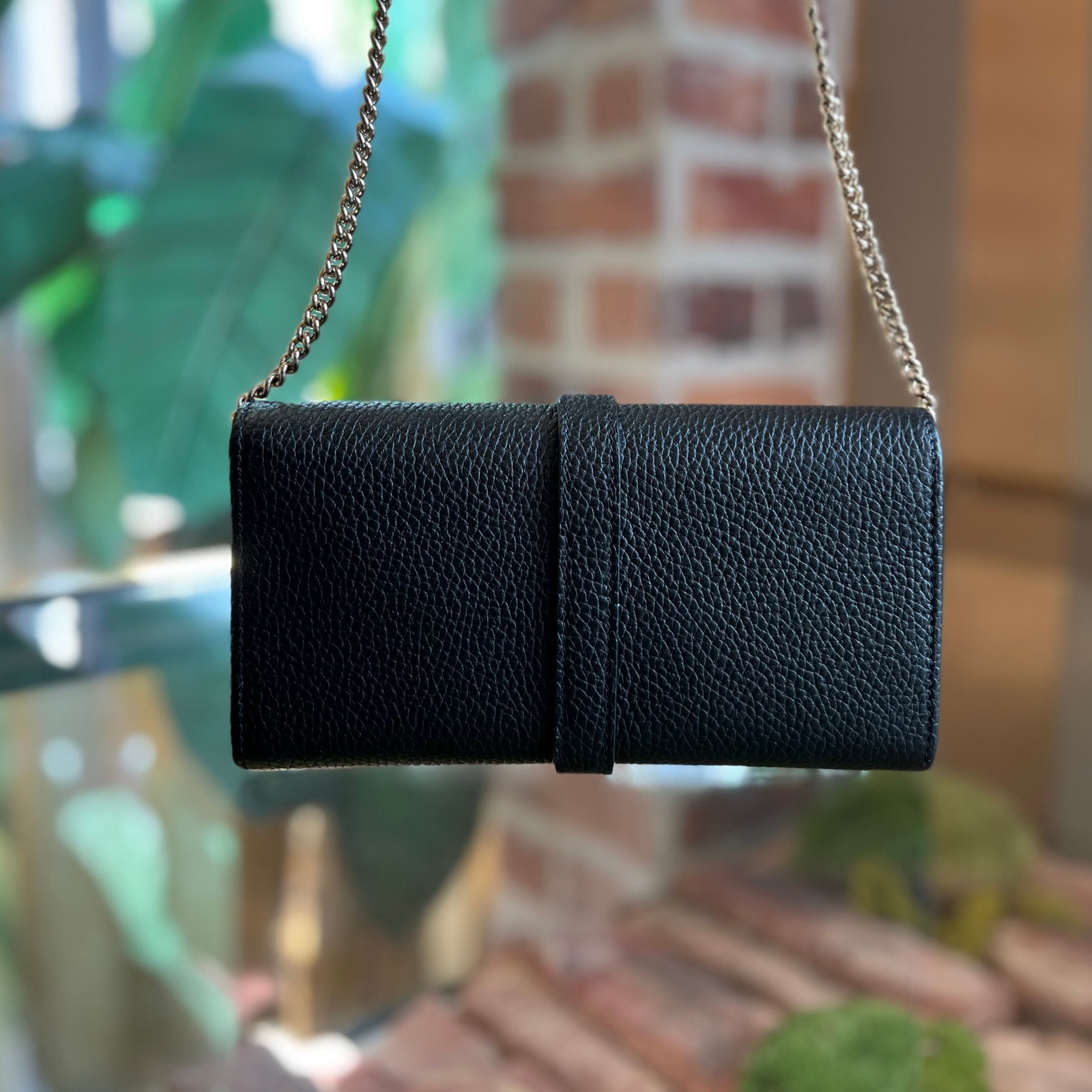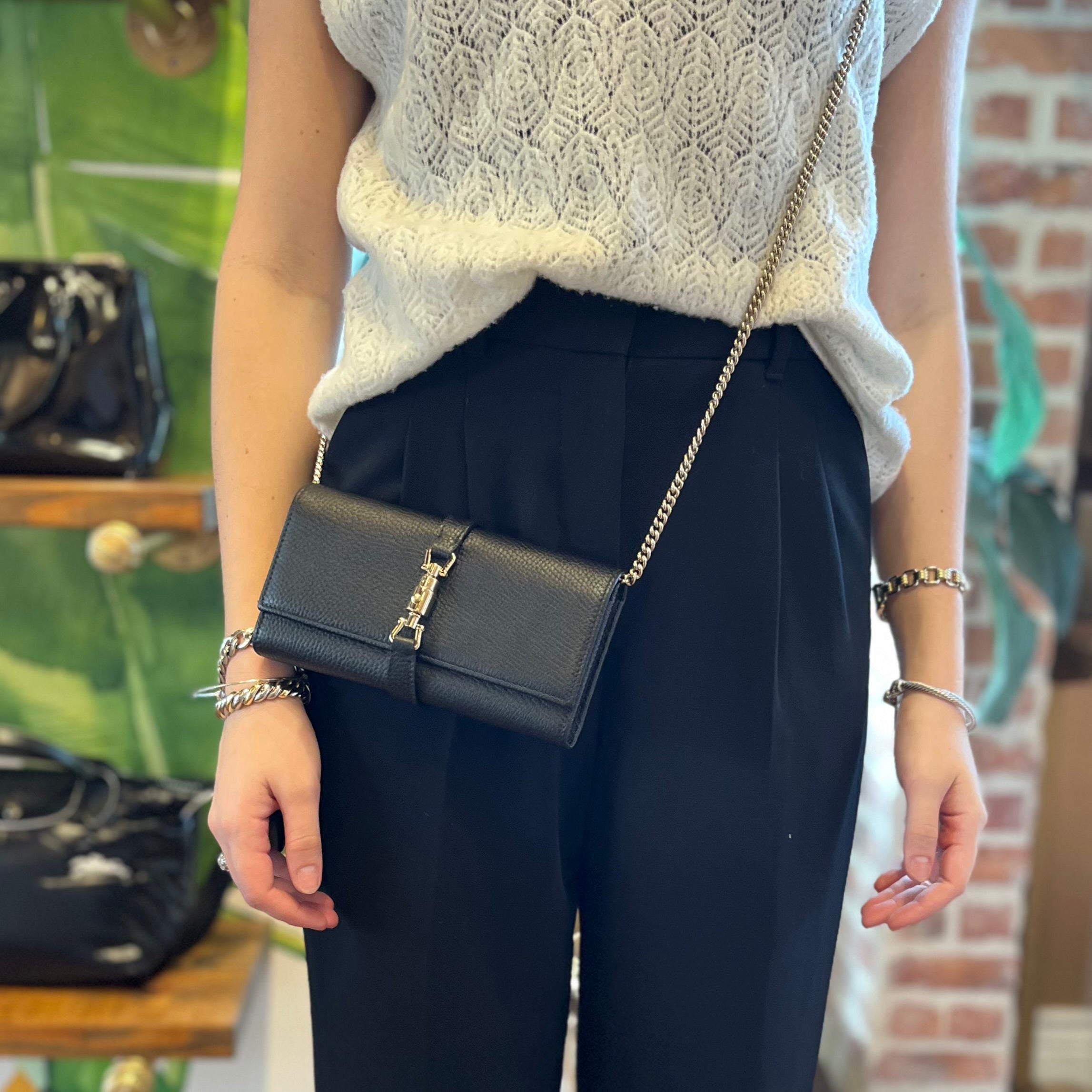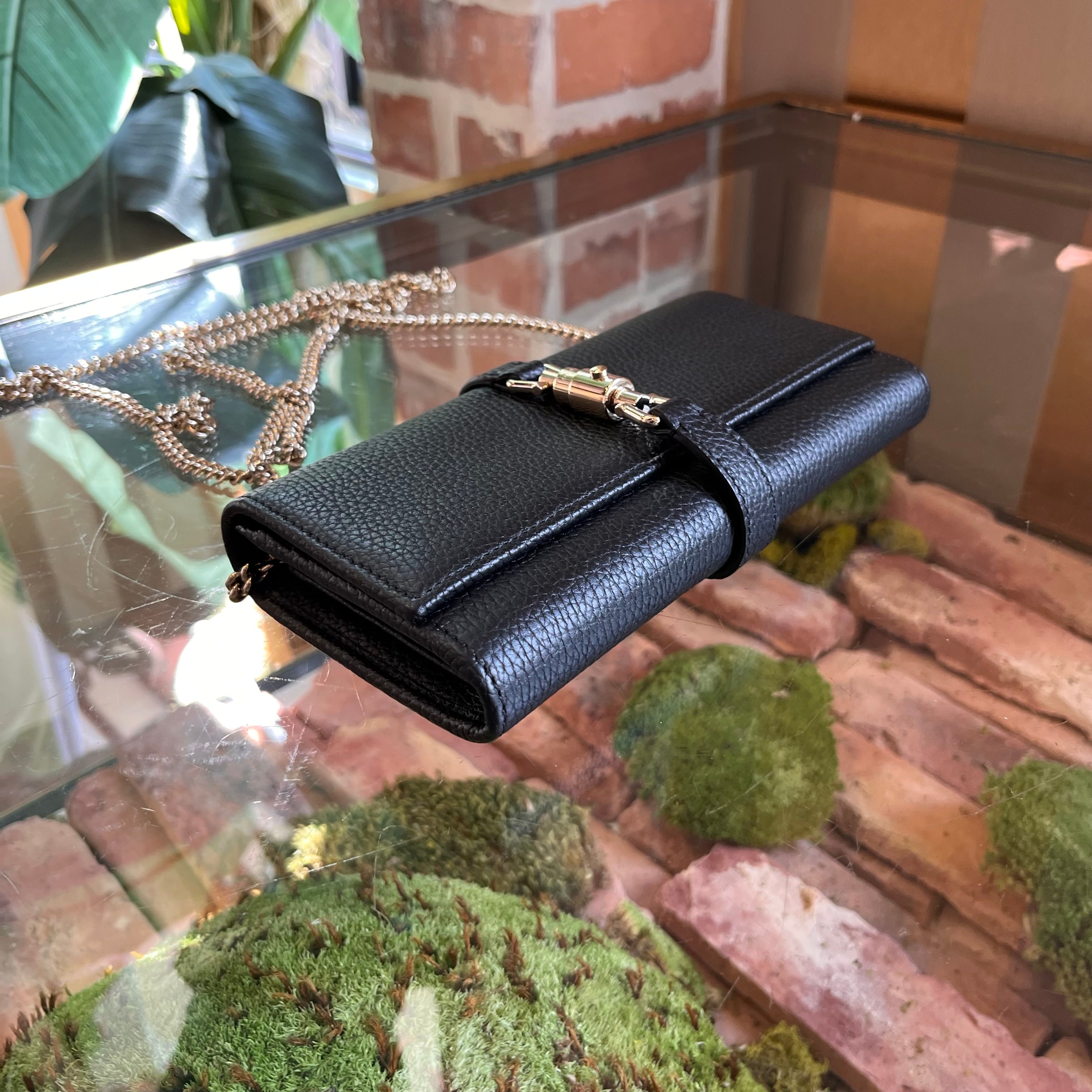 GUCCI Jackie 1961 Black Leather Wallet On Chain Crossbody