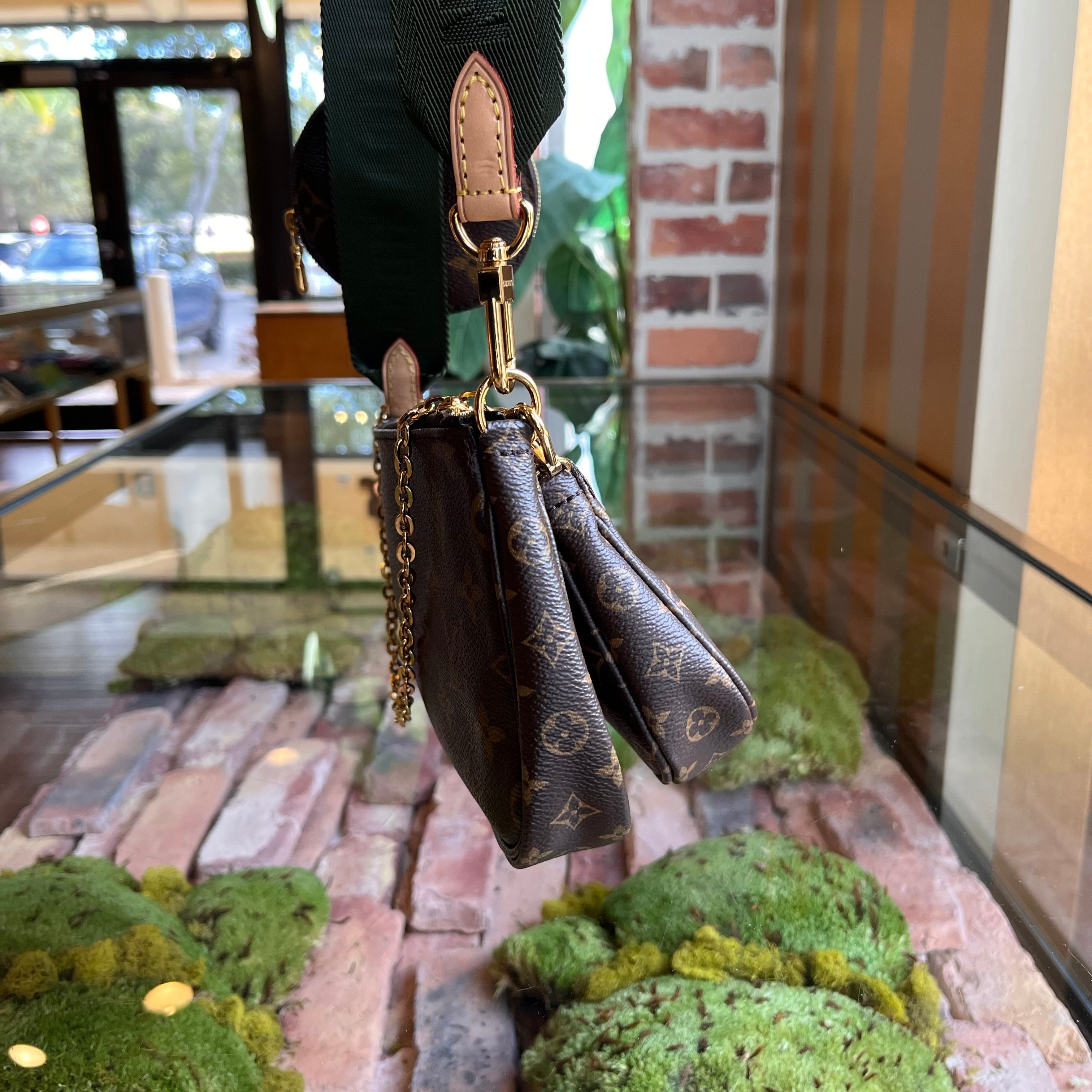 LOUIS VUITTON Multi Pochette Accessories Khaki Brown Monogram Coated Canvas Crossbody Bag