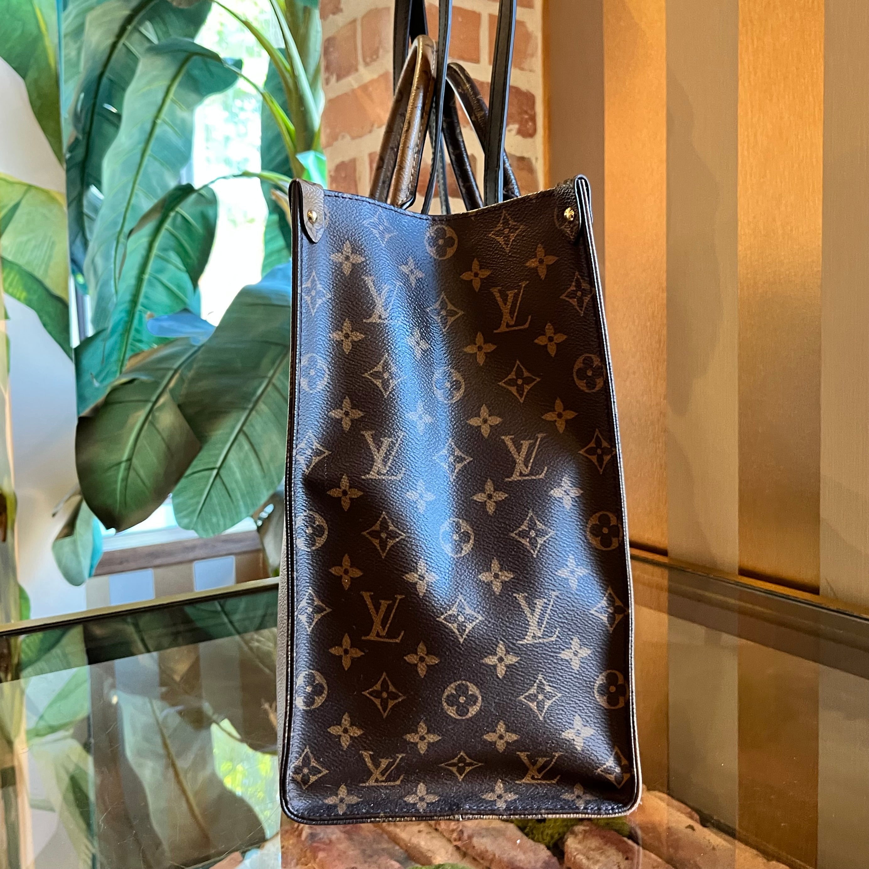 Crafted from Giant Reverse Monogram canvas, the Louis Vuitton OnTheGo GM offers a bold, statement-making look with ample space for daily essentials. Its structured silhouette and dual top handles provide both style and versatility. B+ Very Good Condition