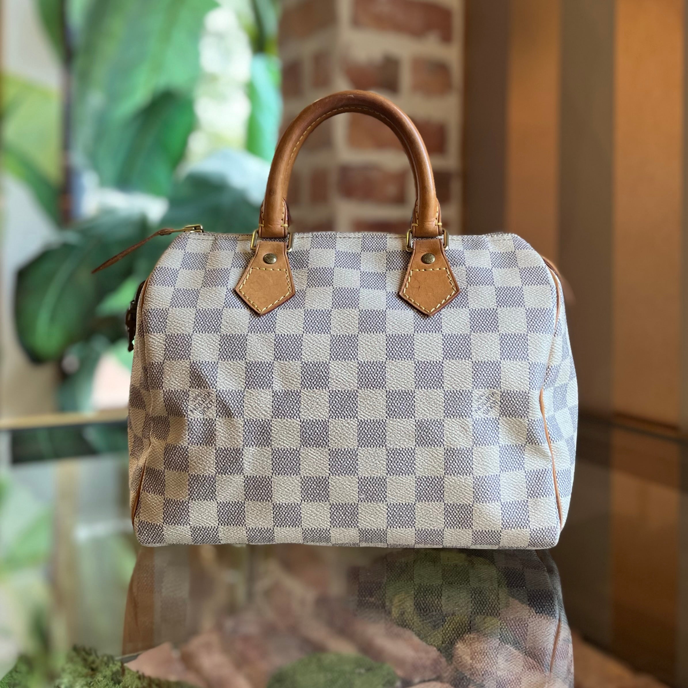 LOUIS VUITTON Speedy 25 Damier Azur Canvas Satchel
