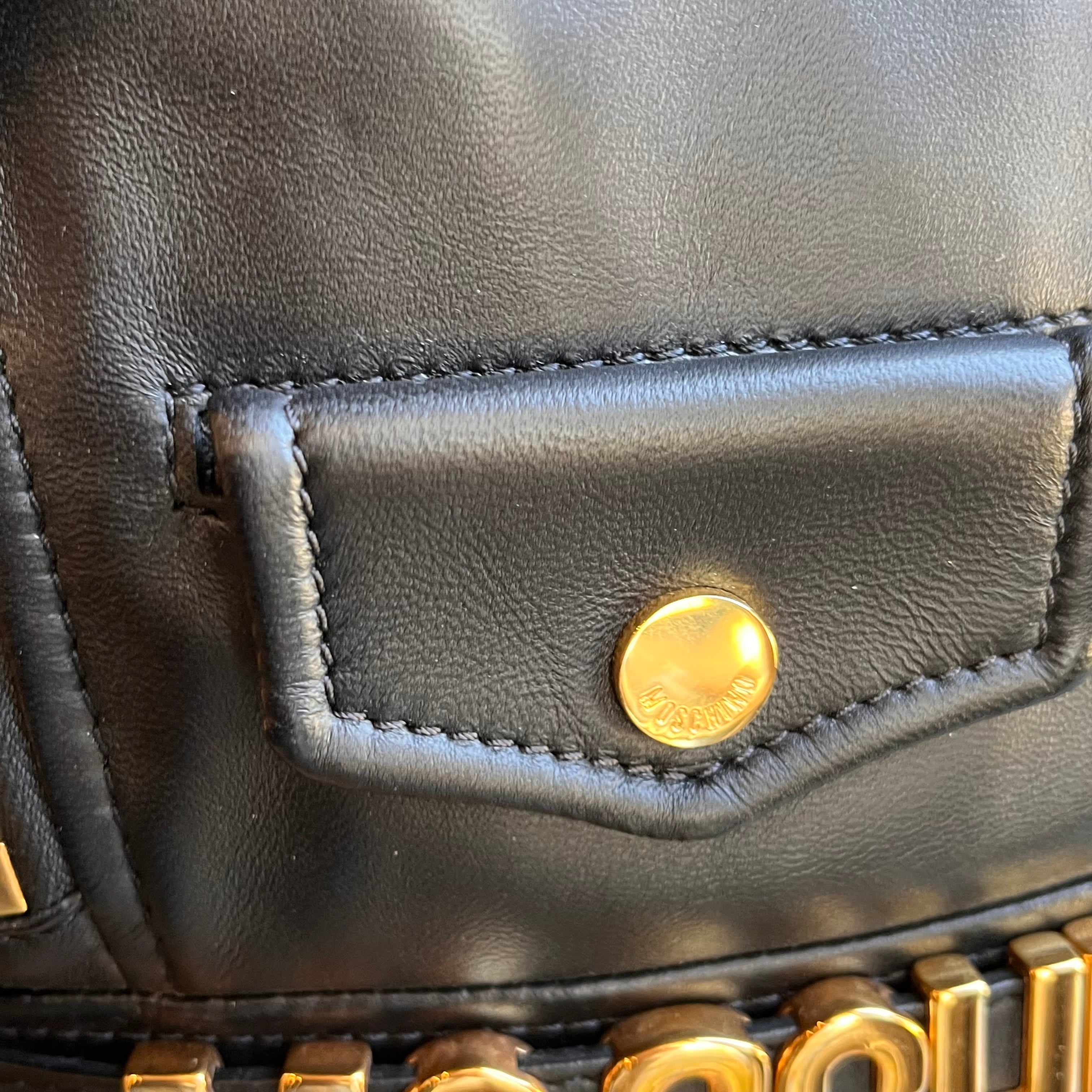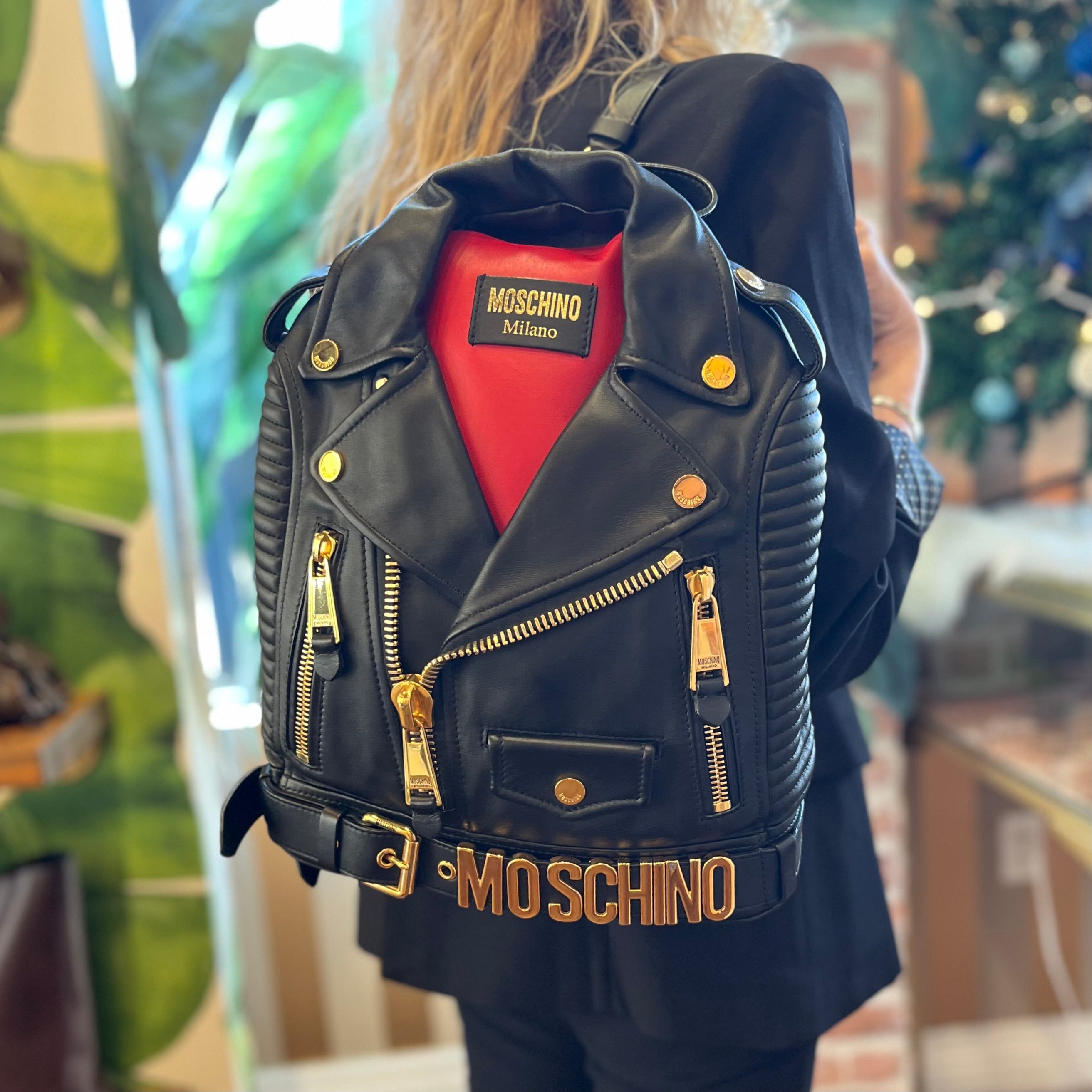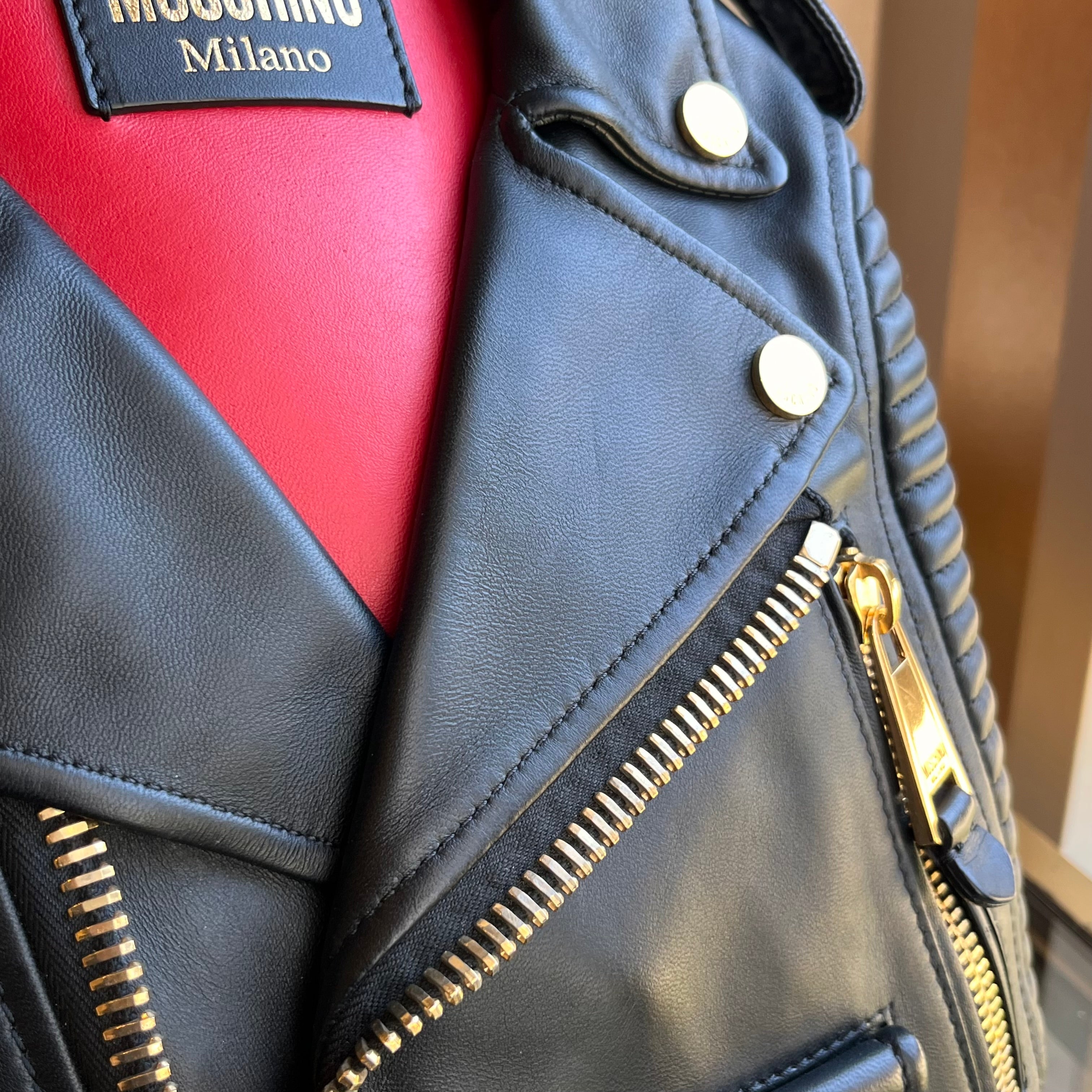 MOSCHINO Biker Jacket Black Leather Backpack Second-Hand Collections