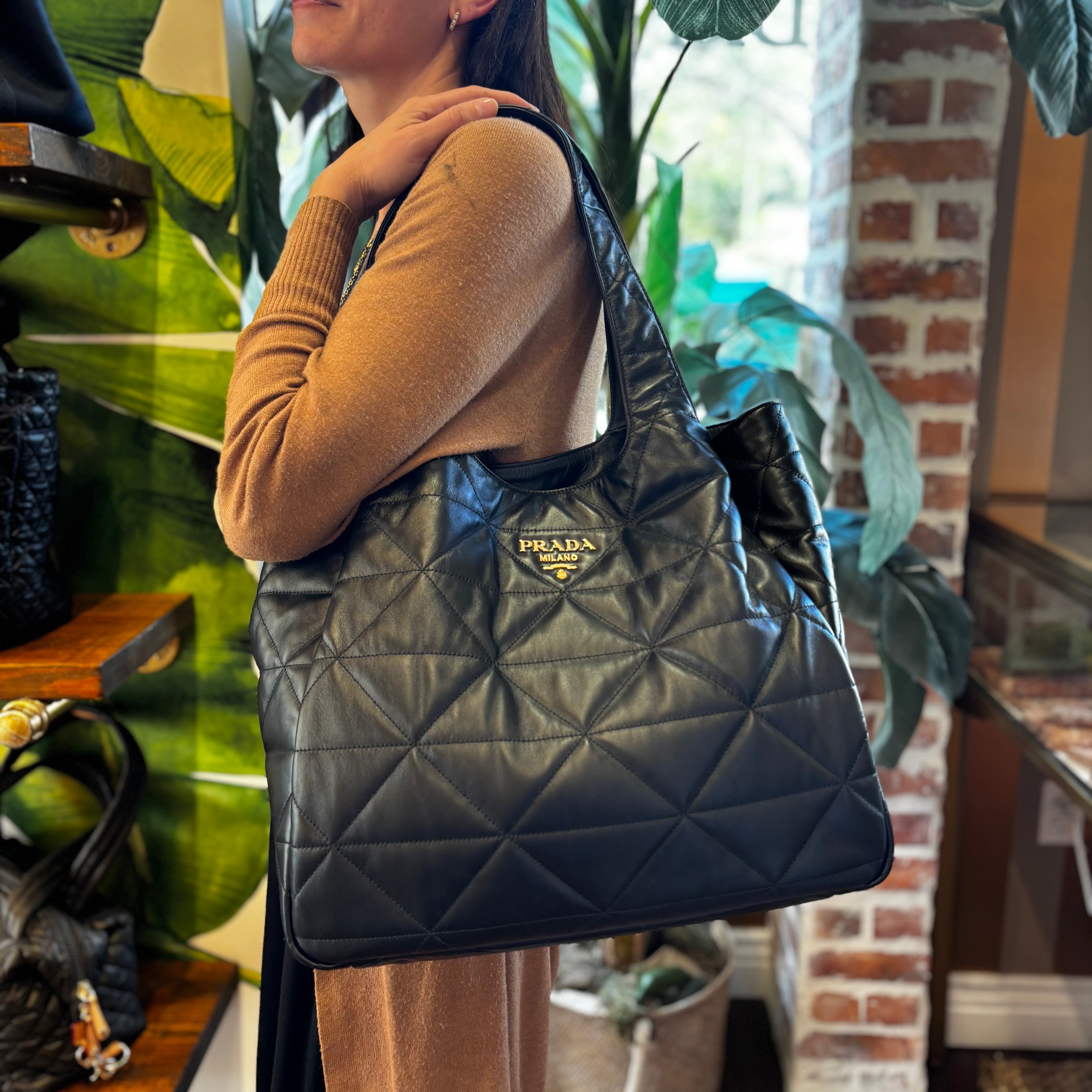 PRADA Large Black Nappa Quilted Fluo Dynamique Tote