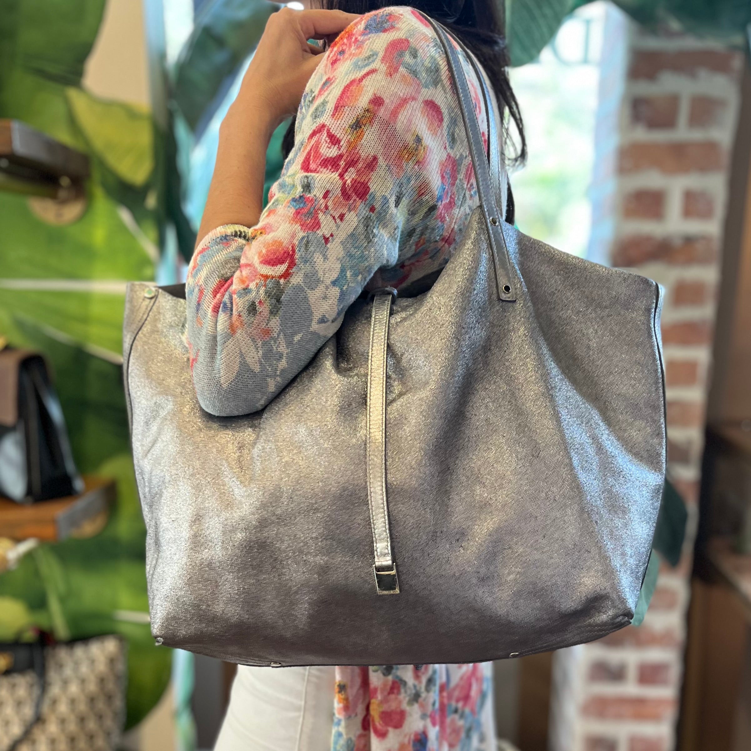 TIFFANY & CO Reversible Metallic Silver Suede Tote Bag