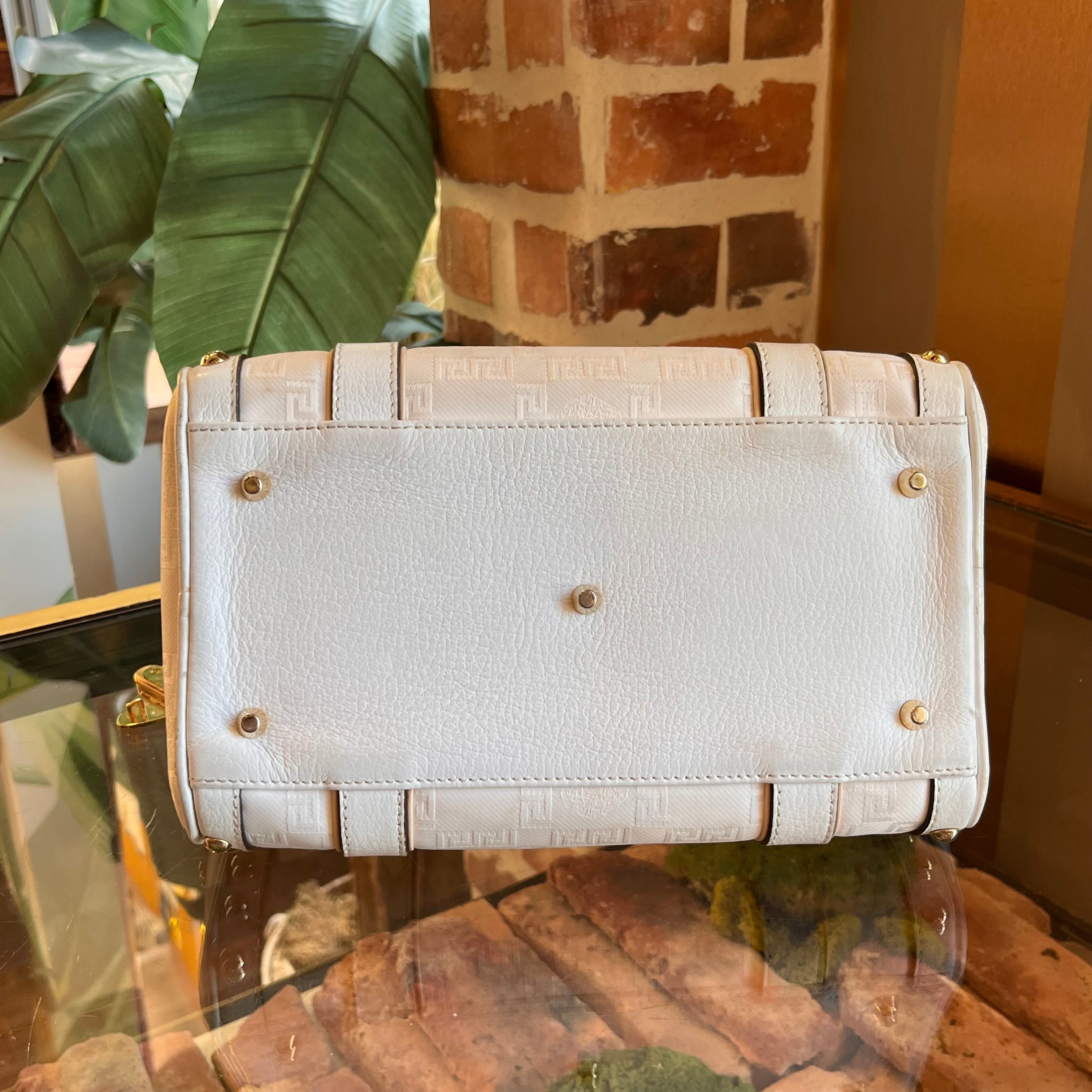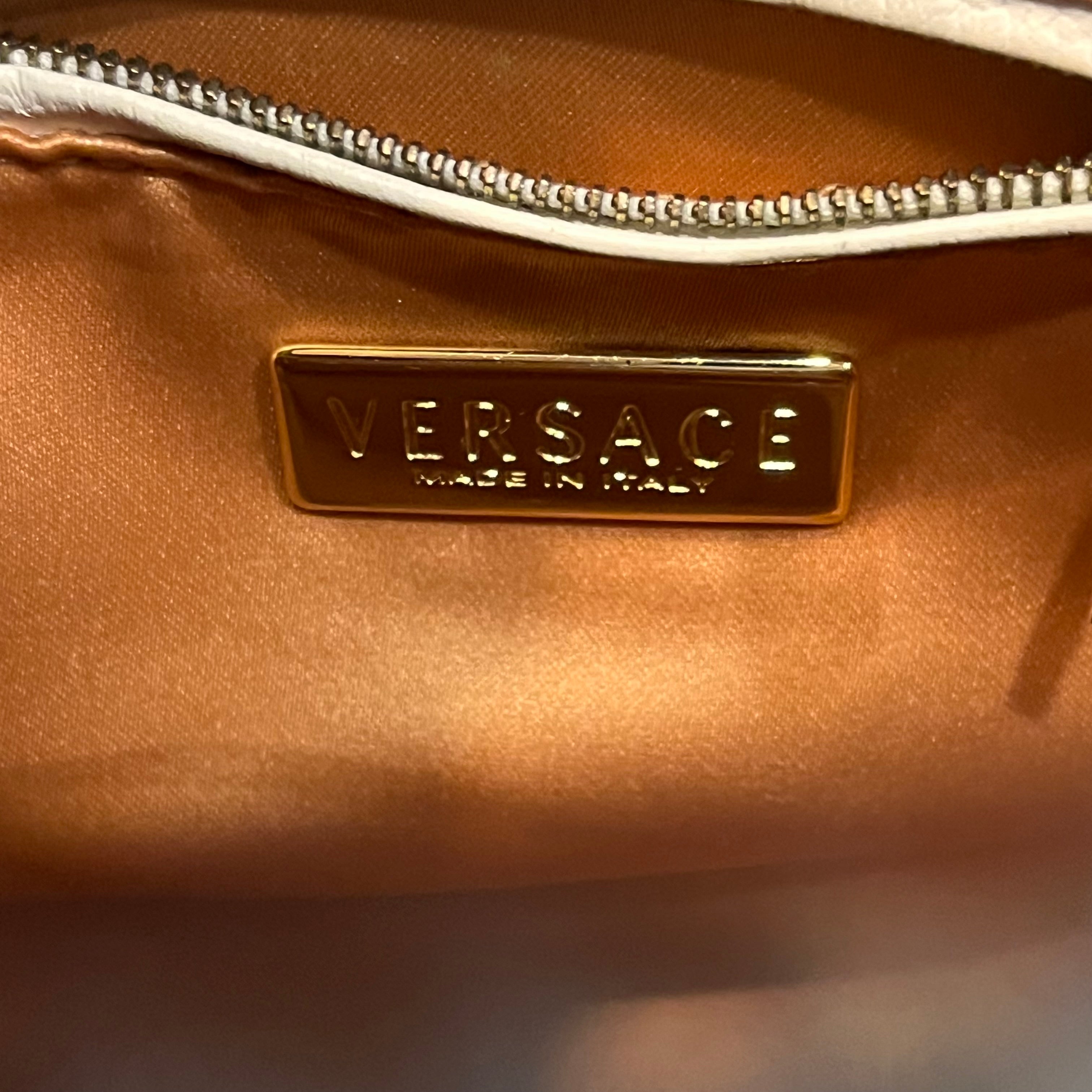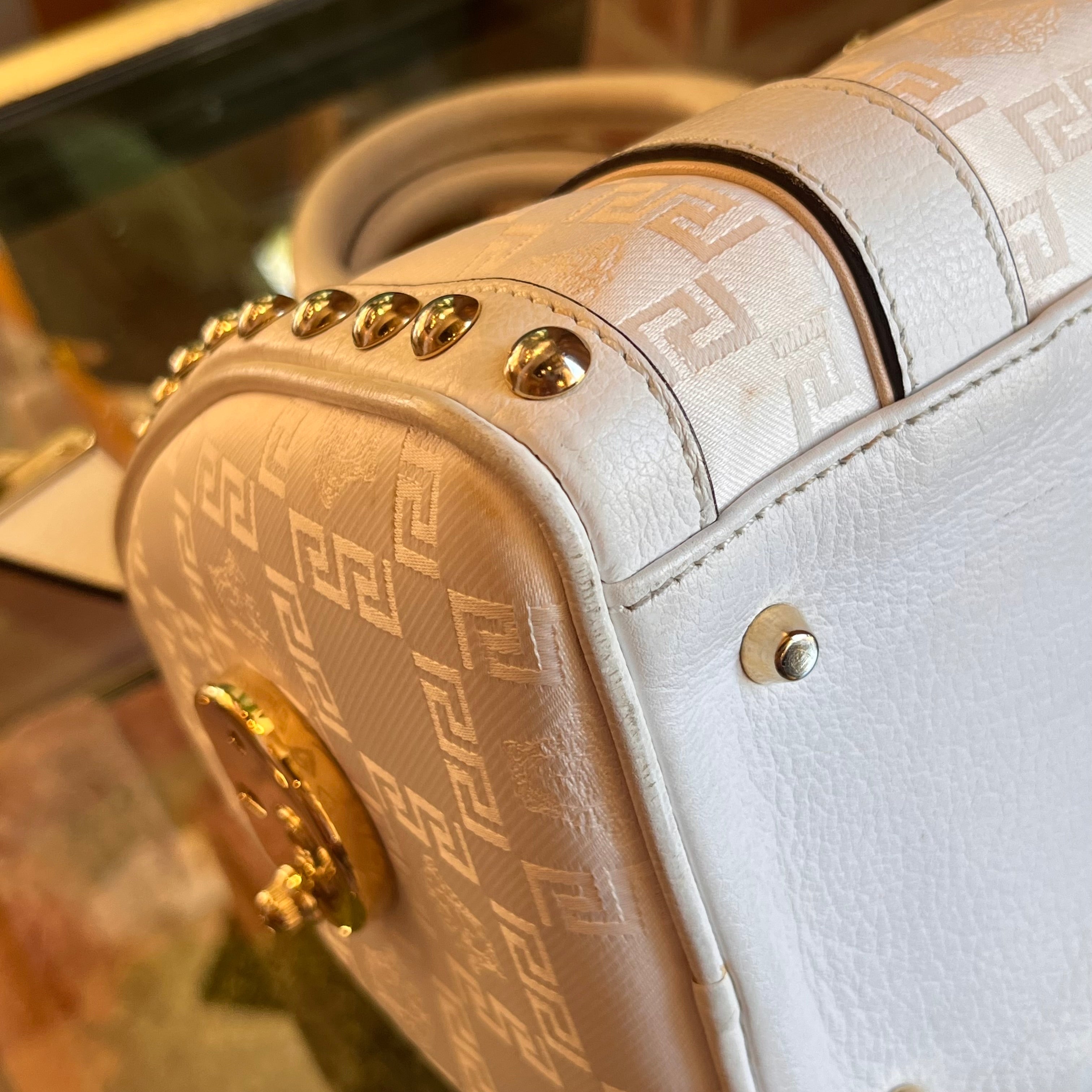 VERSACE Boston White Logo Jacquard Canvas Studded Satchel Bag
