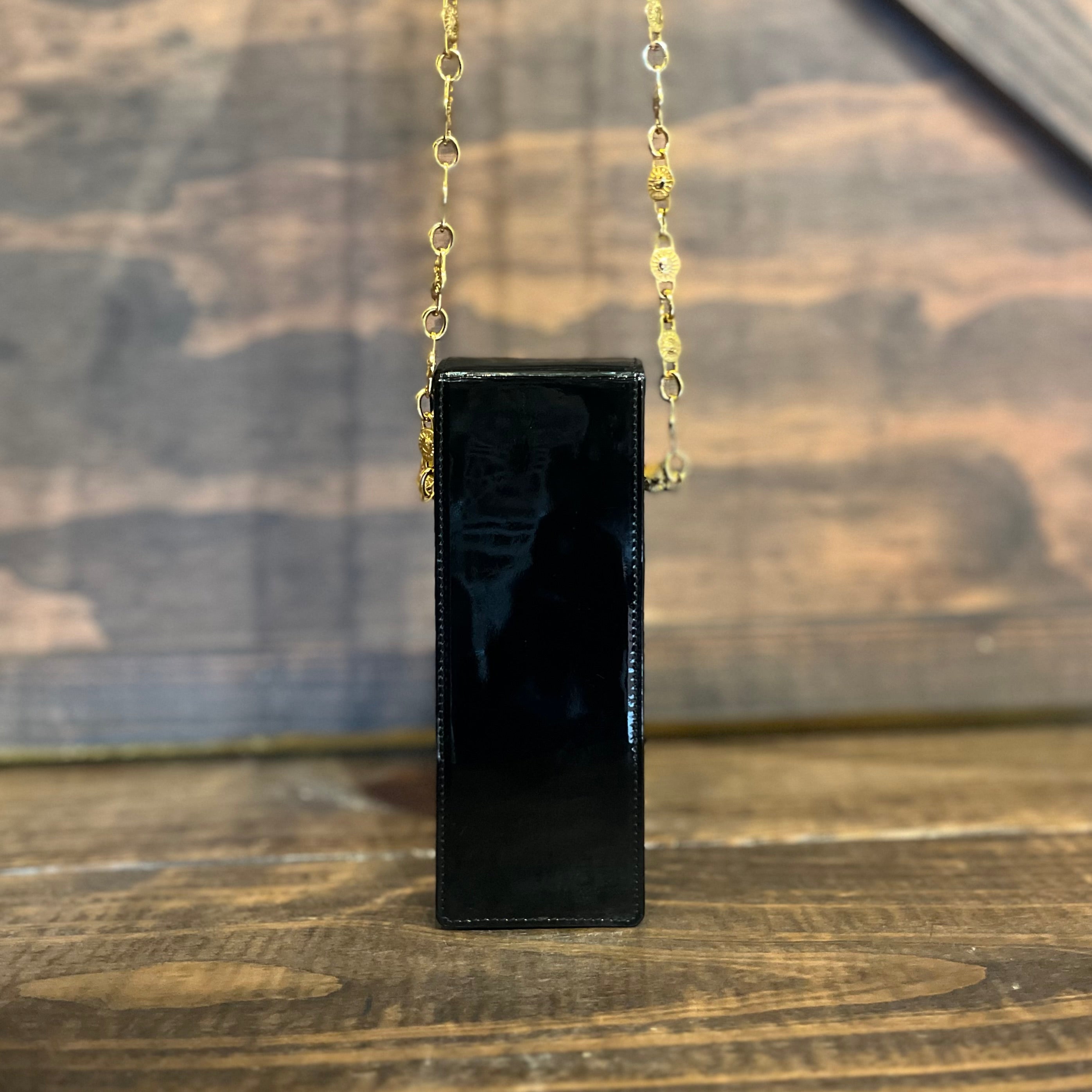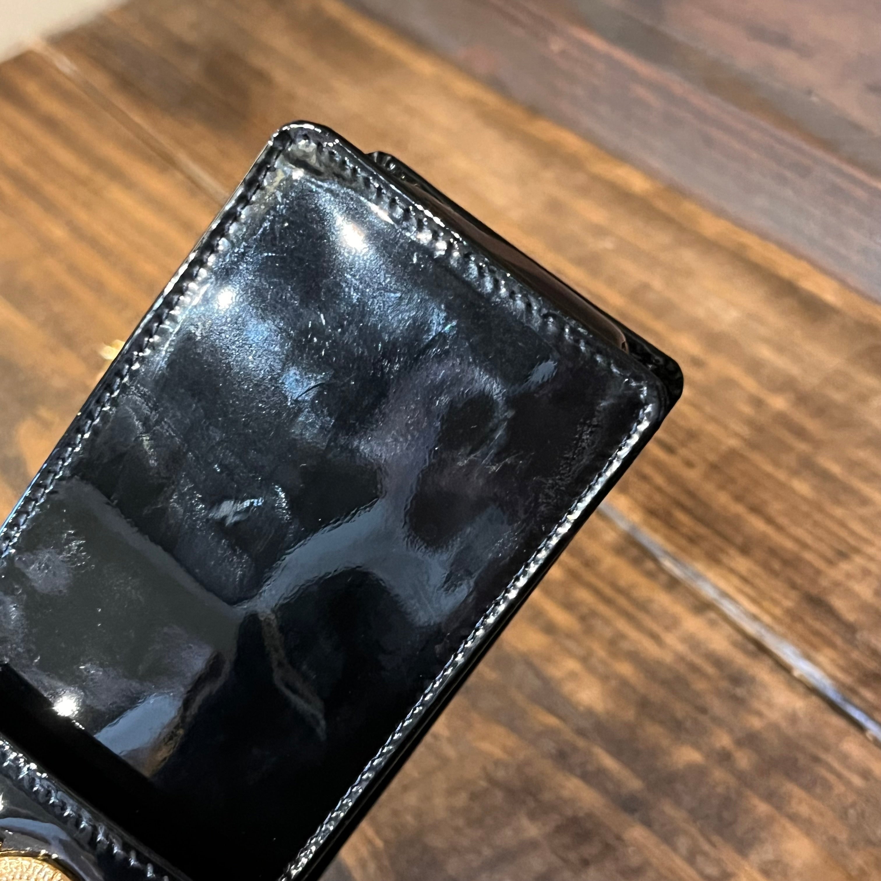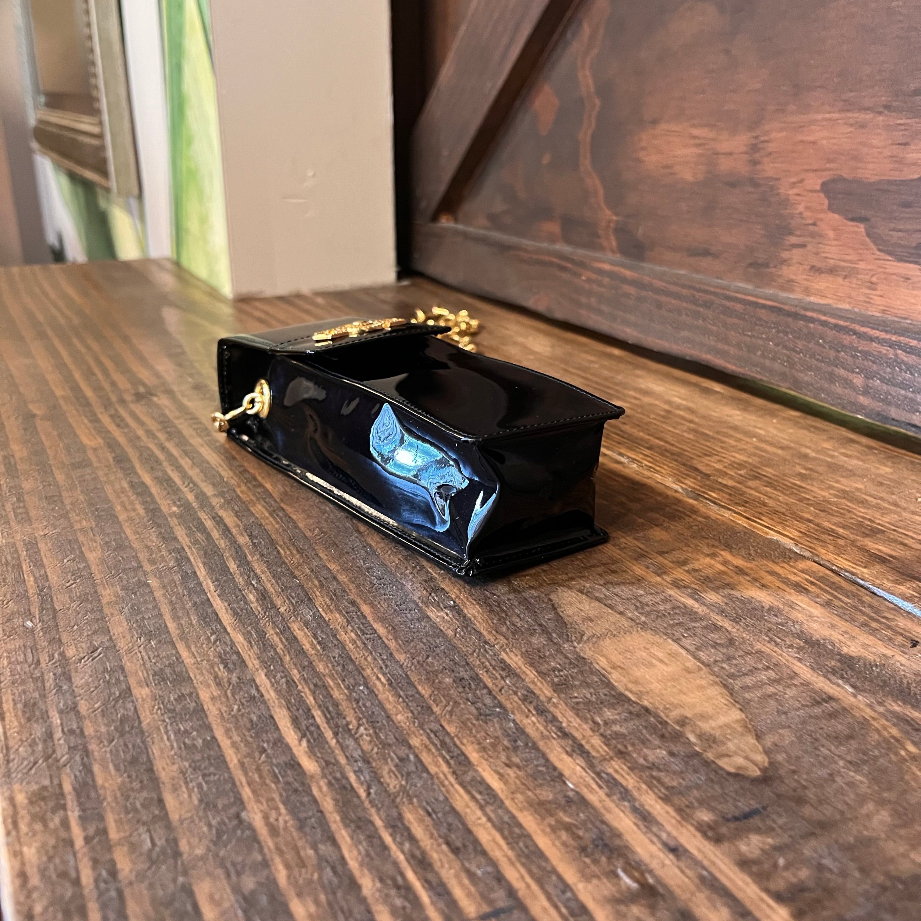 VERSACE Gianni Black Patent Leather Chain Crossbody Bag