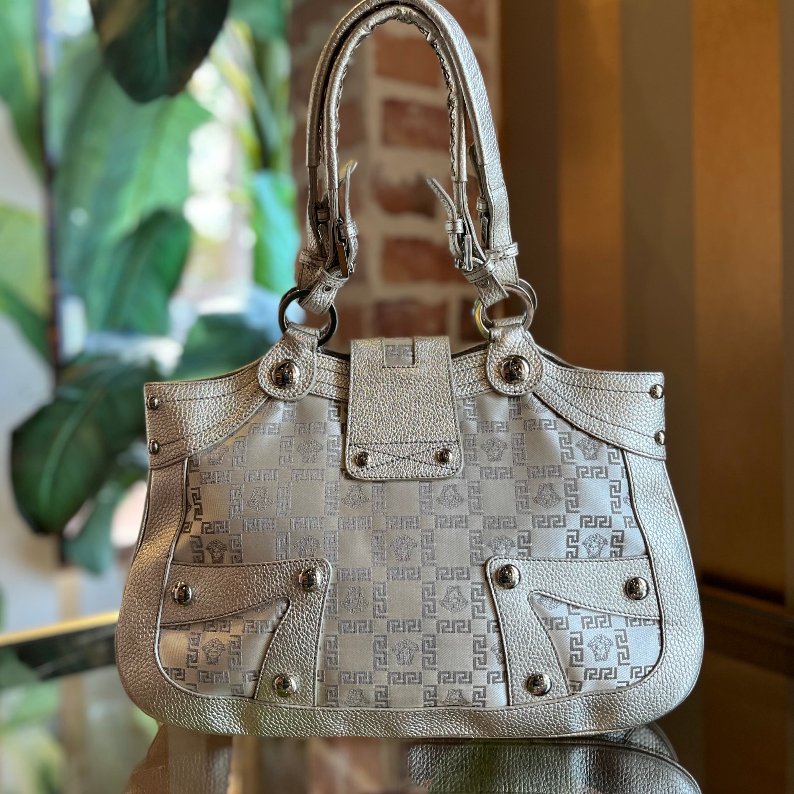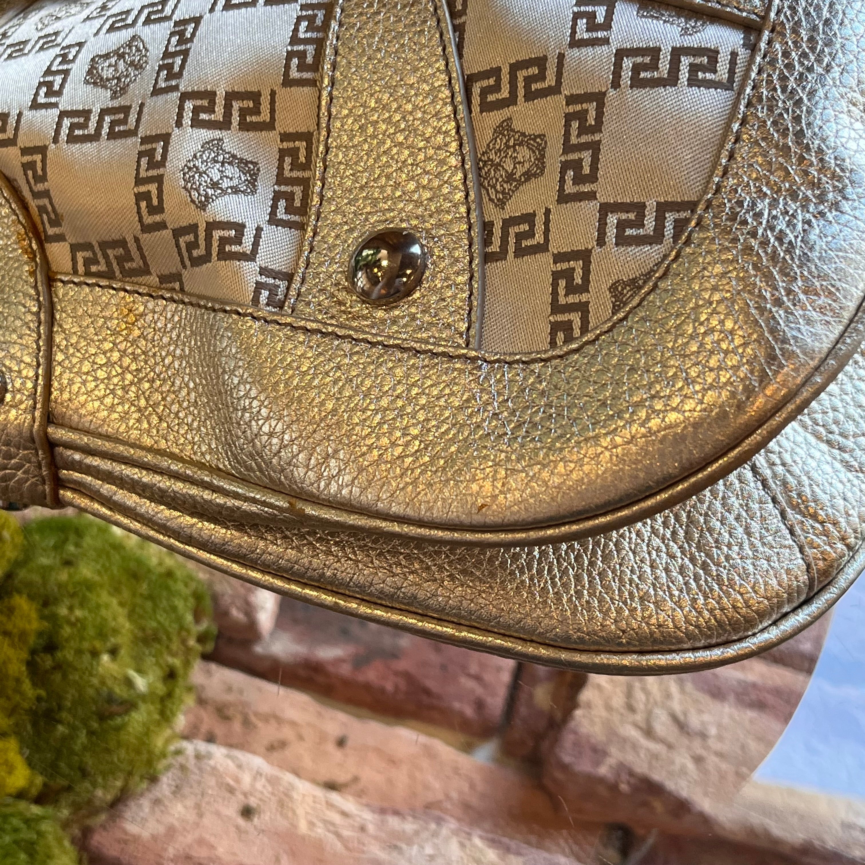 VERSACE Medusa Gold Champagne Jacquard Canvas Shoulder Bag