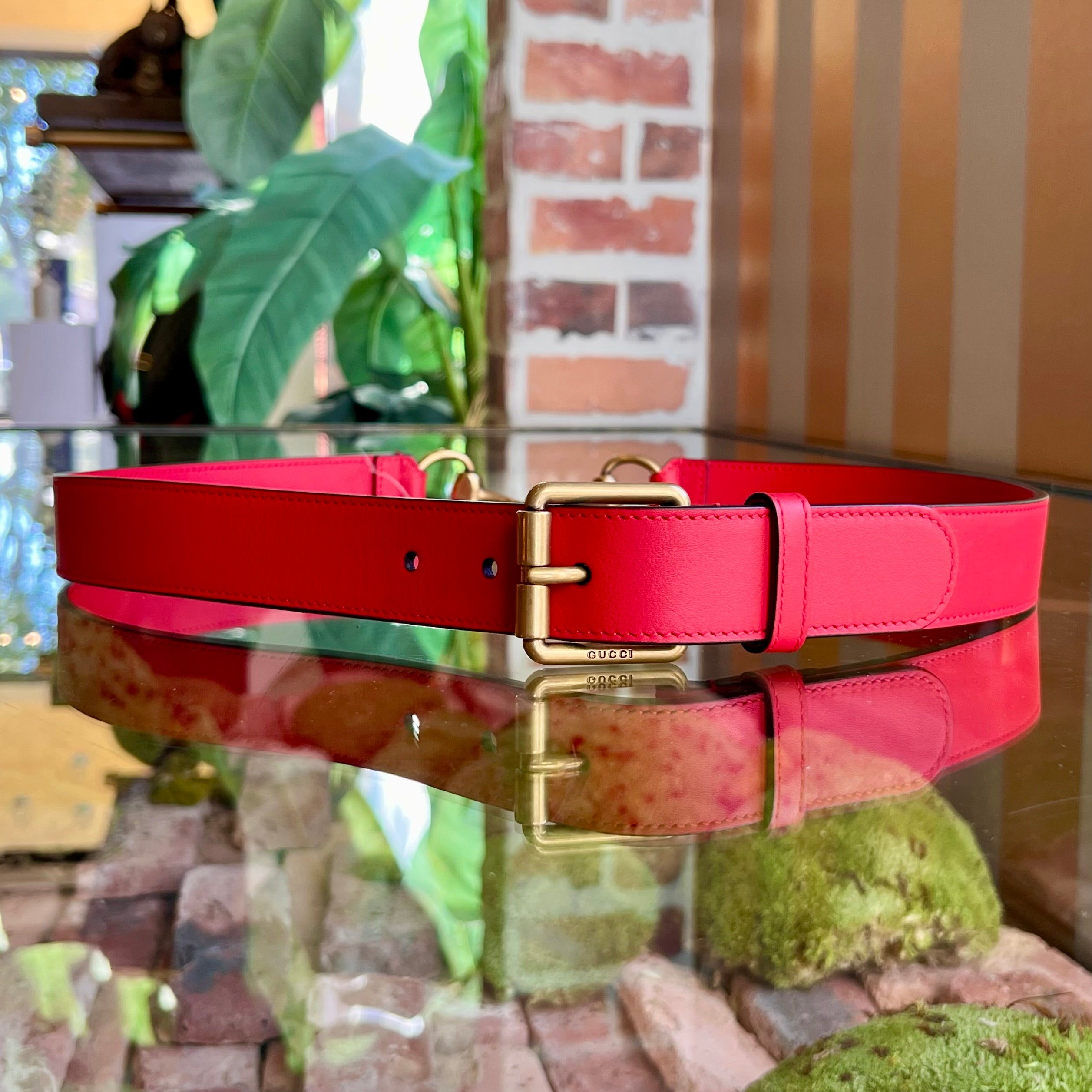 GUCCI Horsebit Red Leather Belt 85/34(6US)