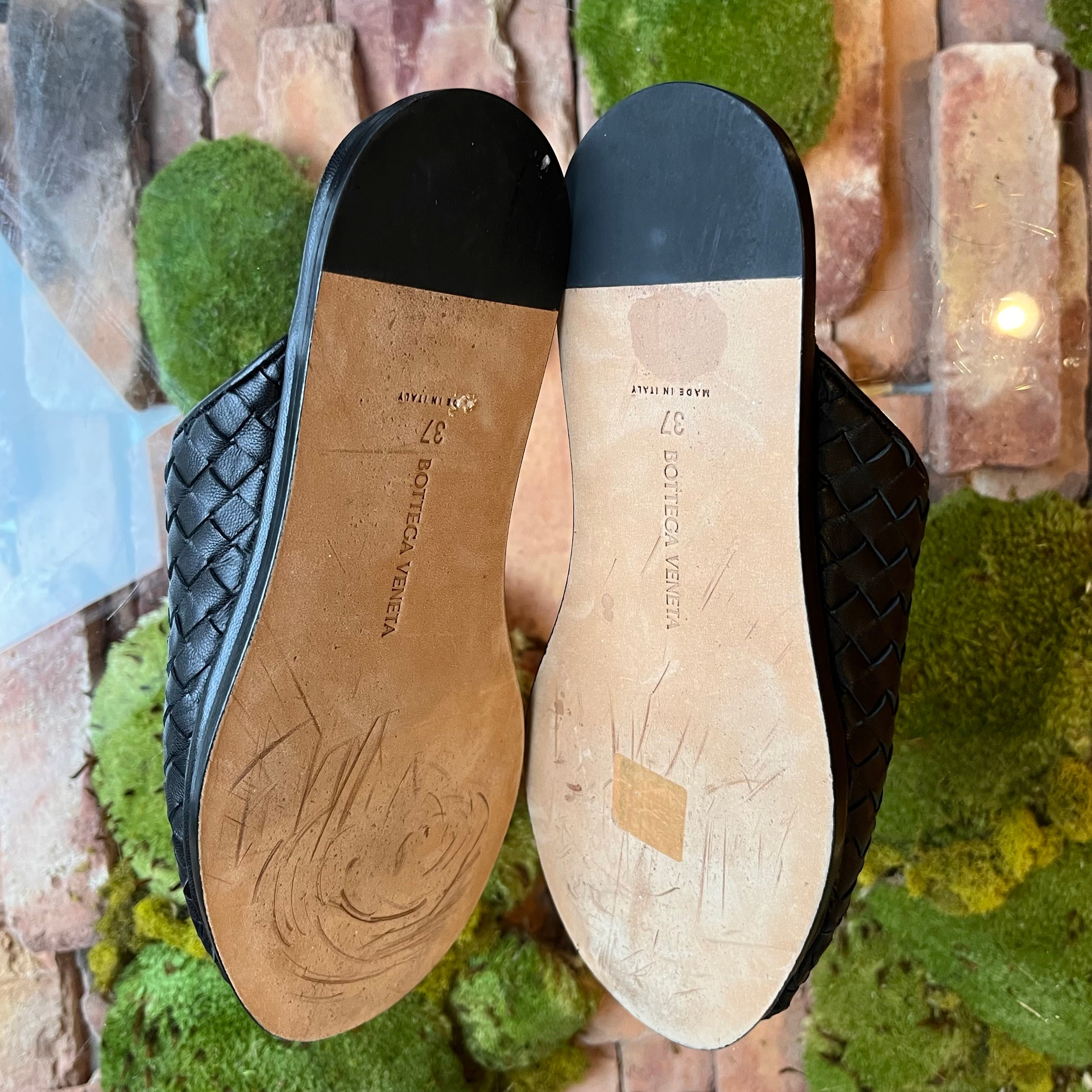 BOTTEGA VENETA Black Intrecciato Woven Leather Mules SZ37(7US)