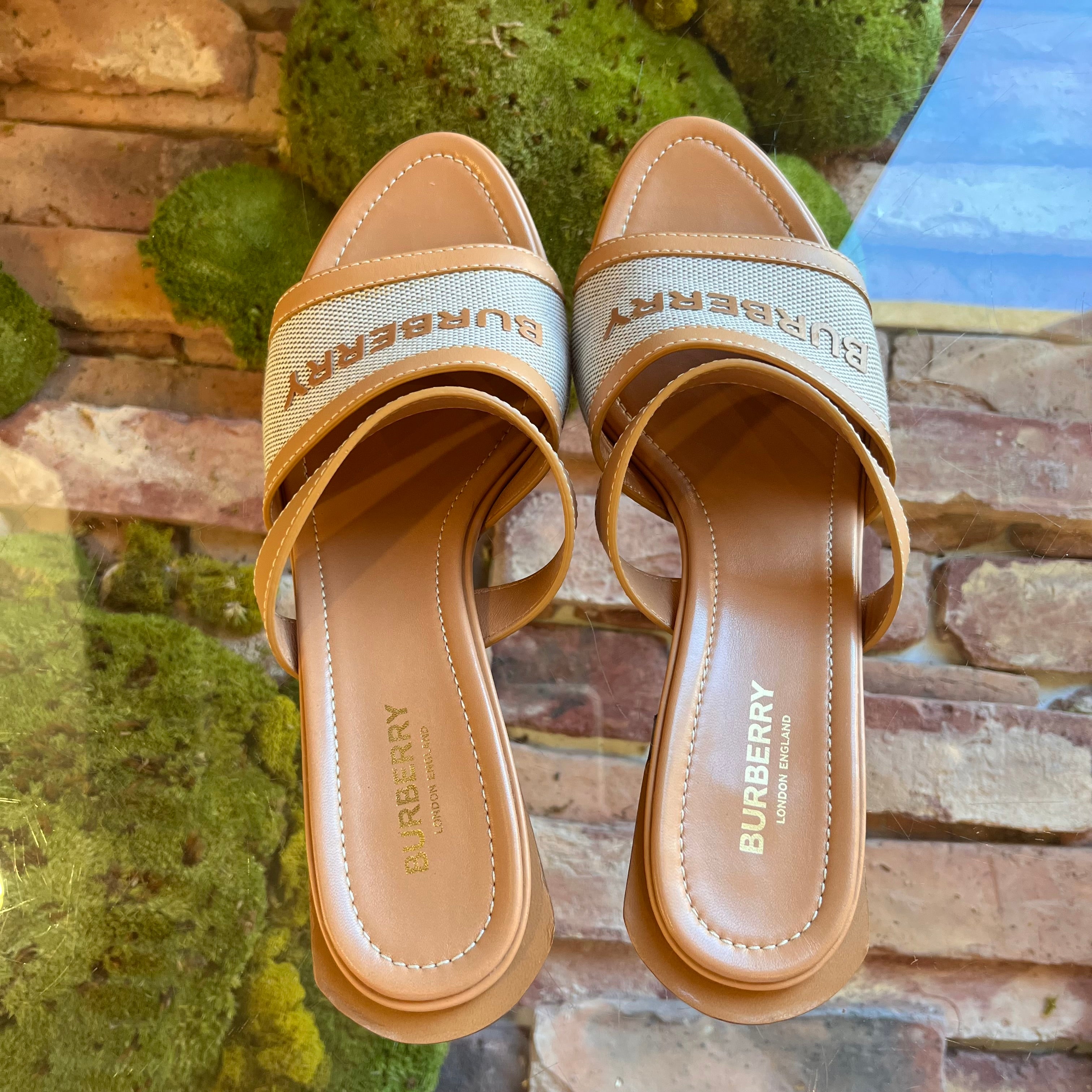 BURBERRY Brown Logo Sandals size 40 1/2 ( US 10.5)