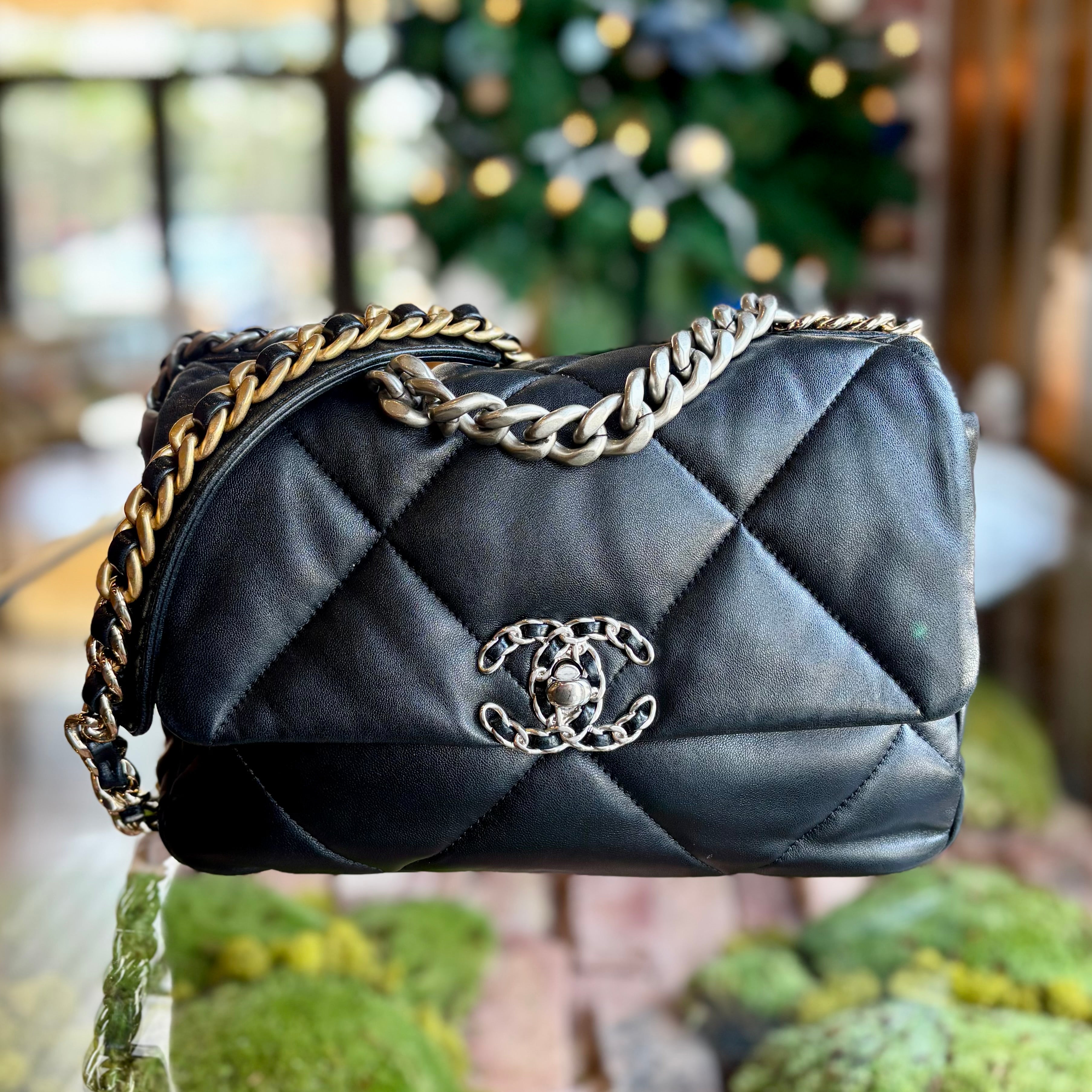 CHANEL Black Quilted Lambskin Small 19 Shoulder Bag