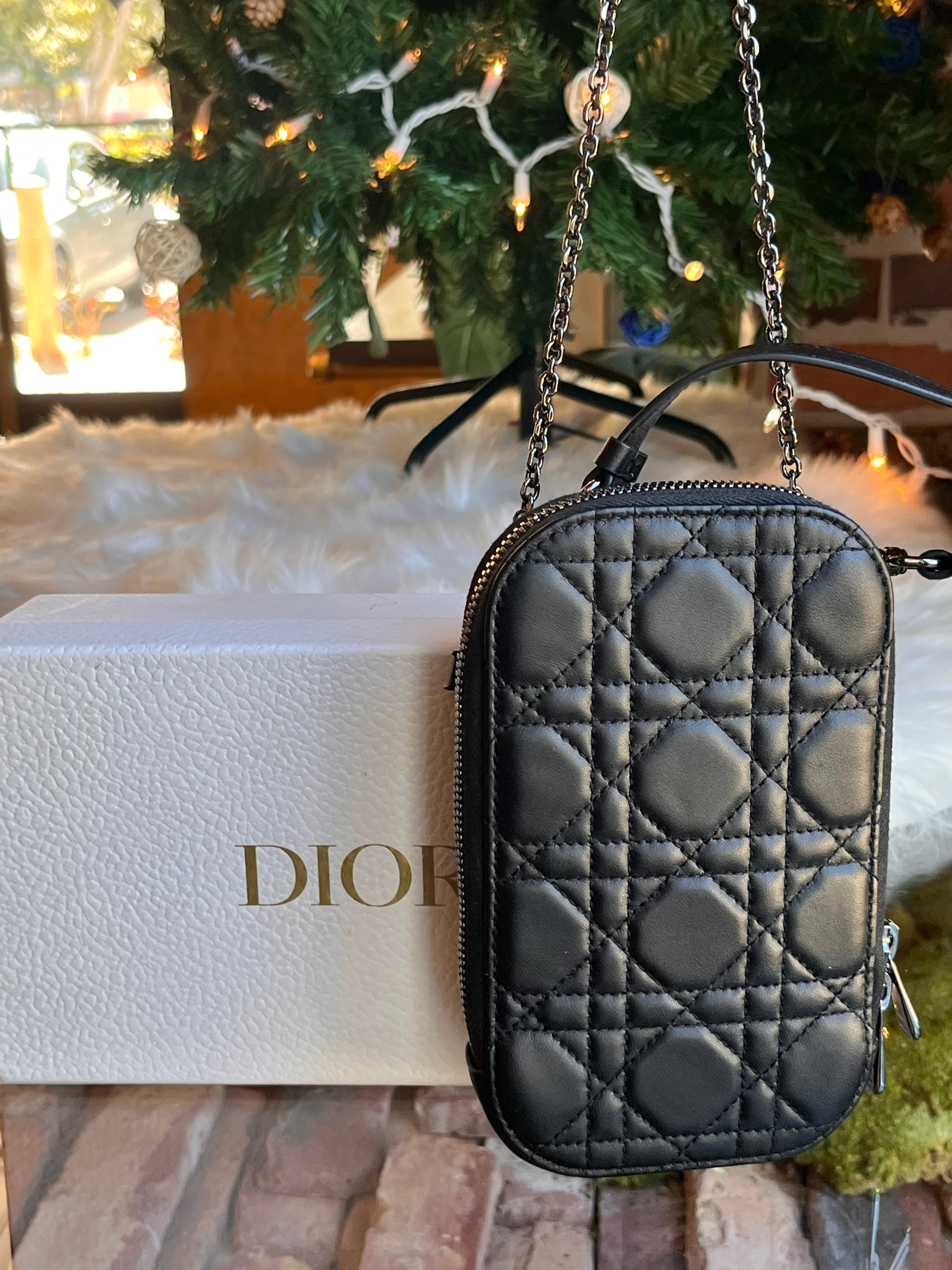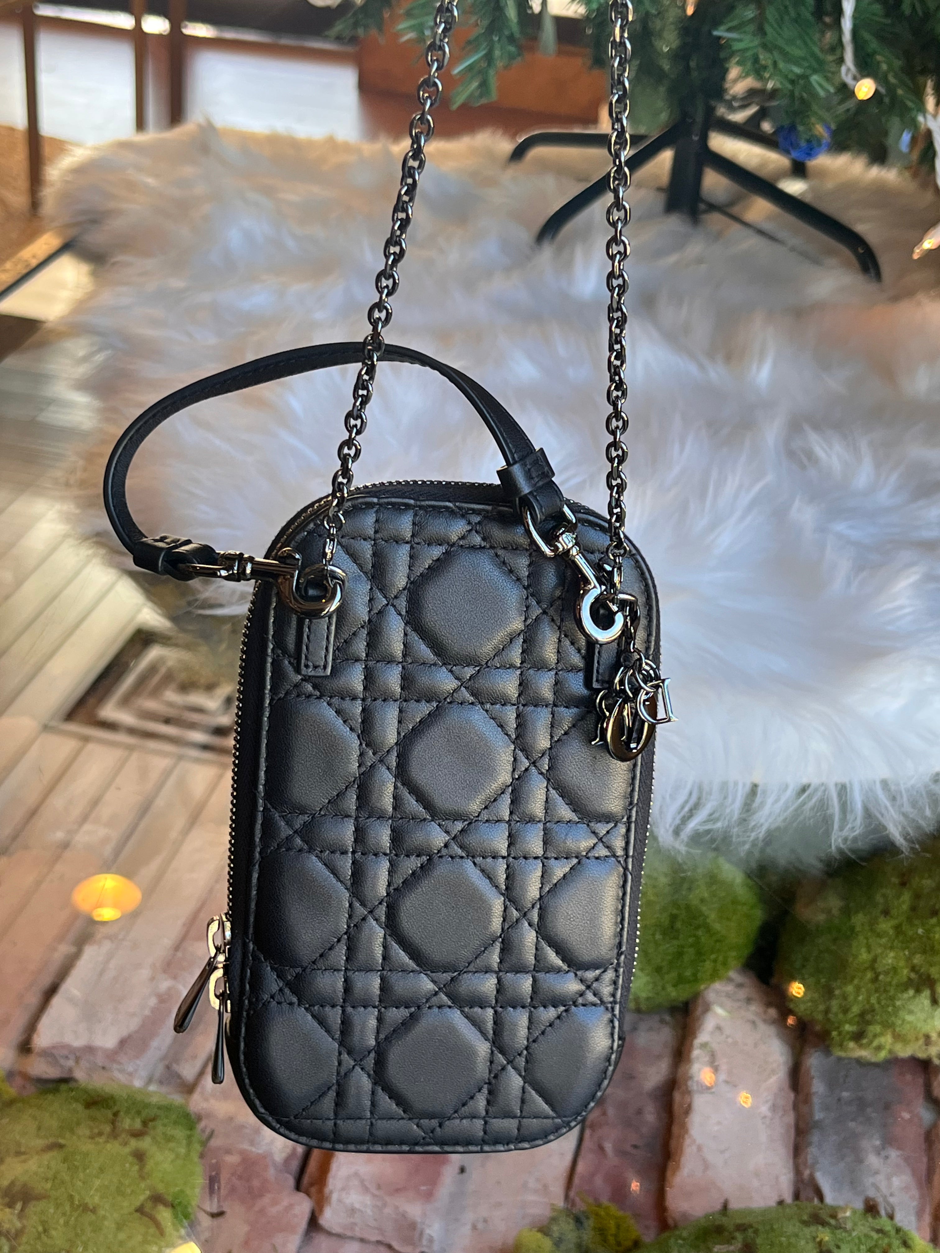 DIOR Black Cannage "Callin Dior" Phone Pouch