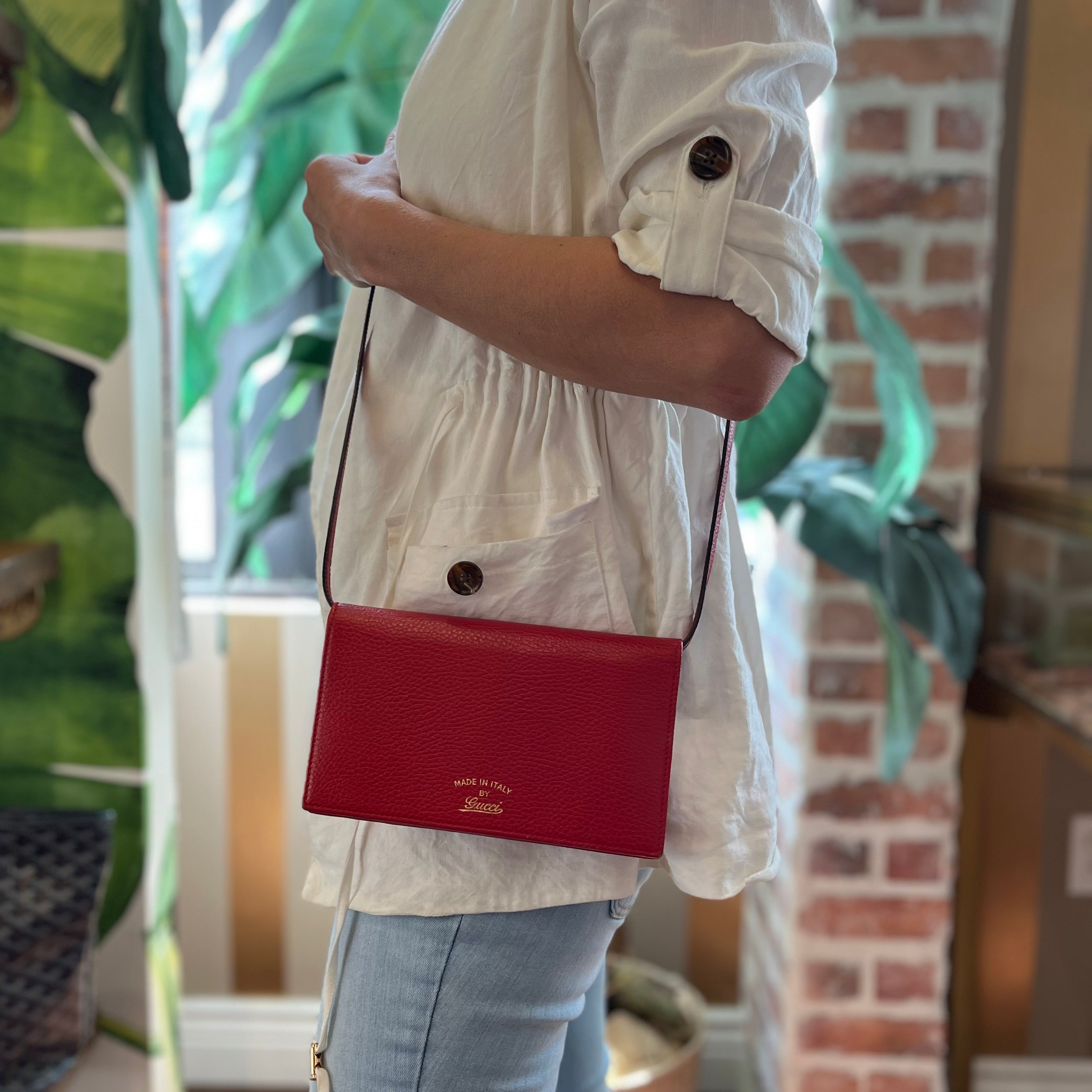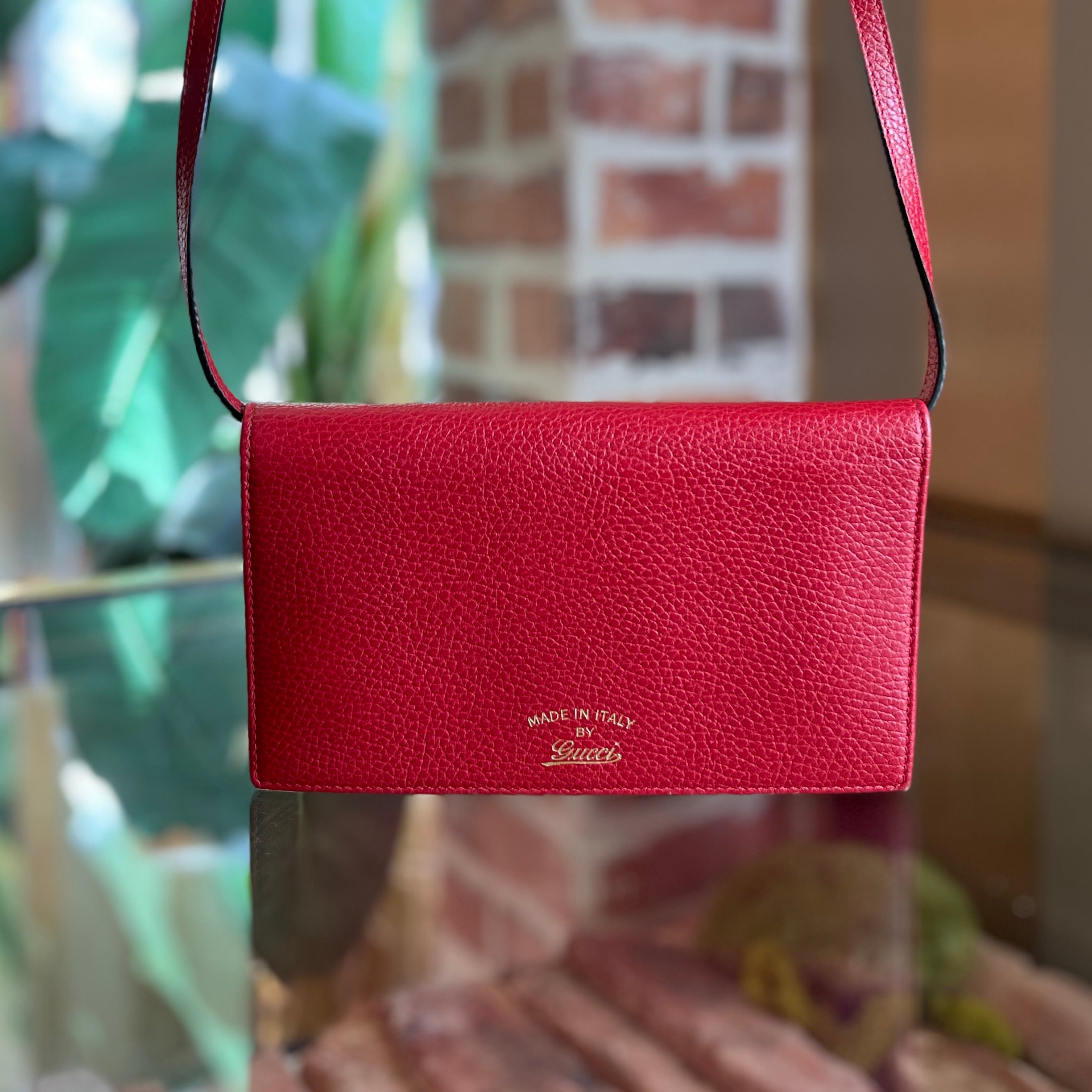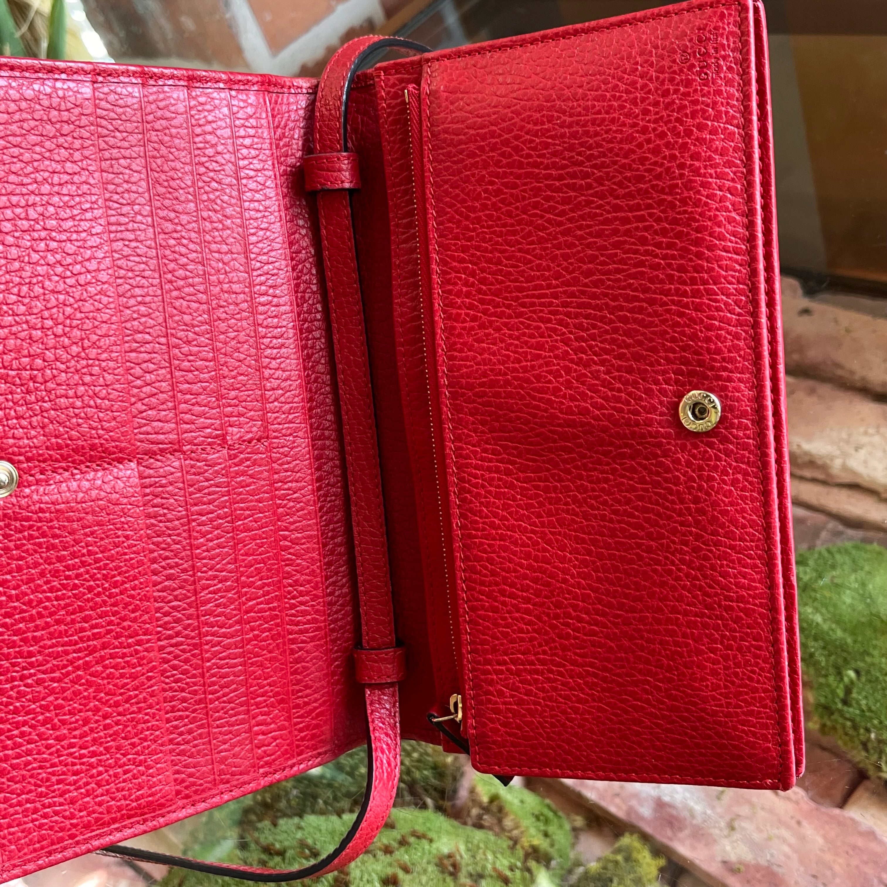 GUCCI Swing Red Dollar Calfskin Wallet On Strap Crossbody Bag