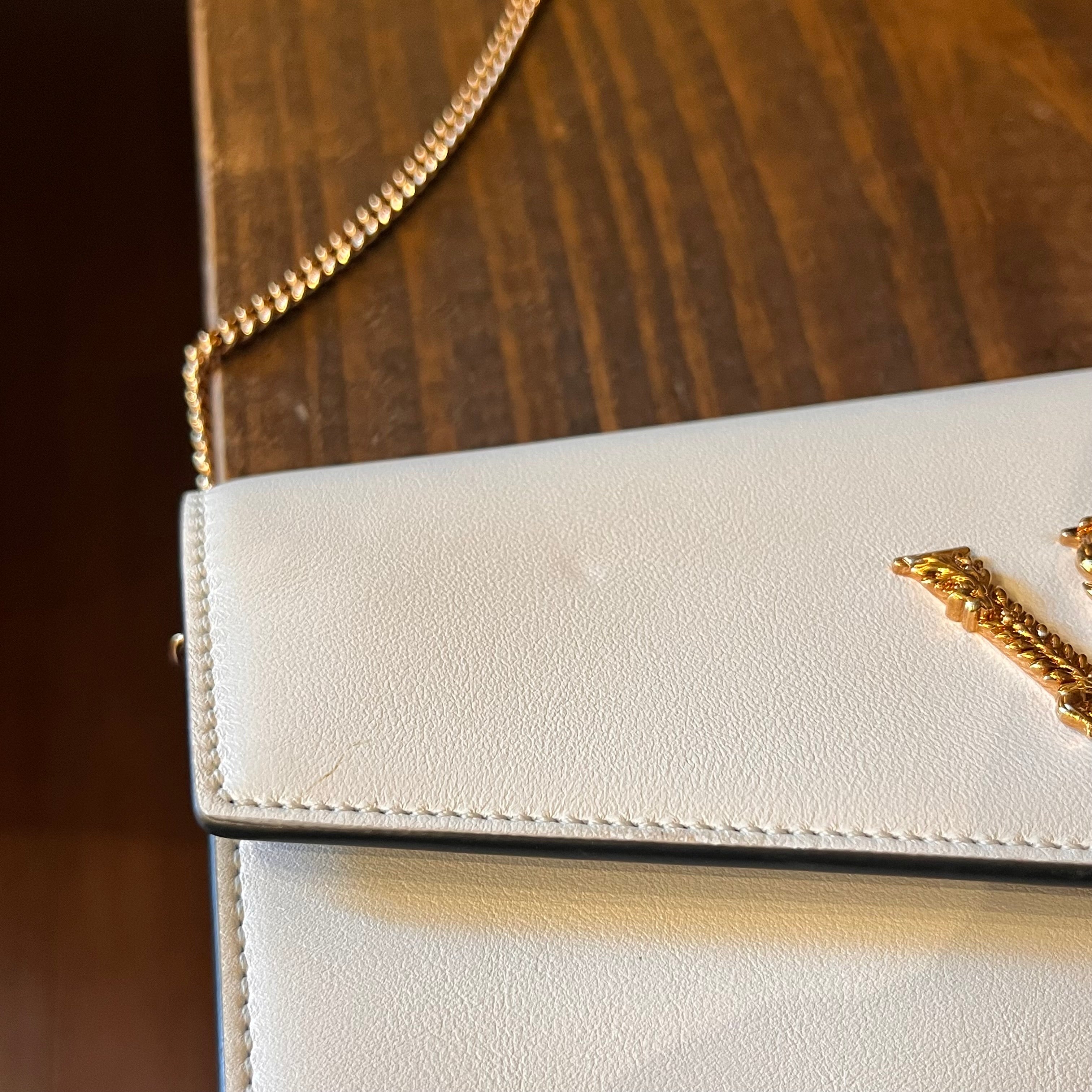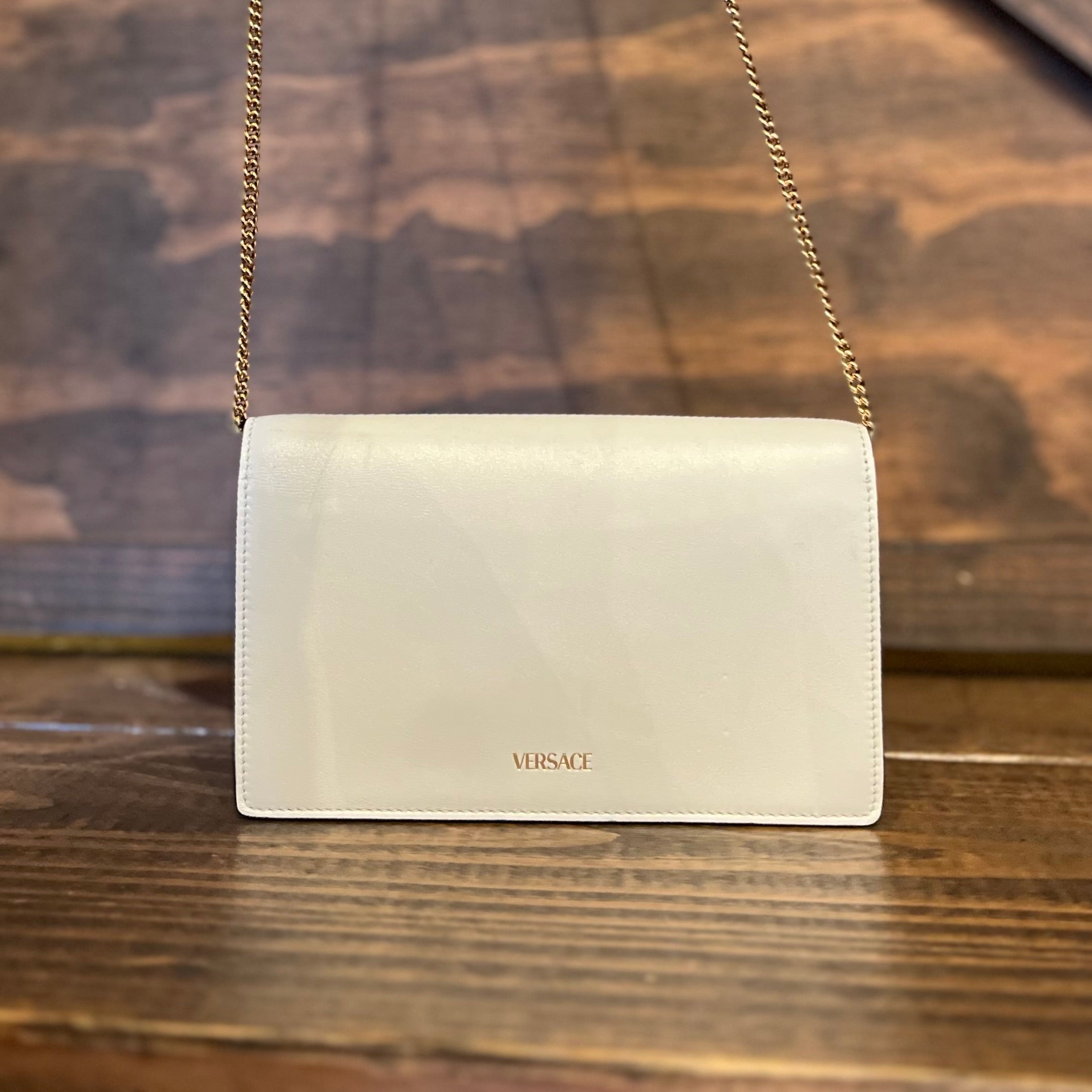 VERSACE Virtus Chain White Leather Shoulder Bag