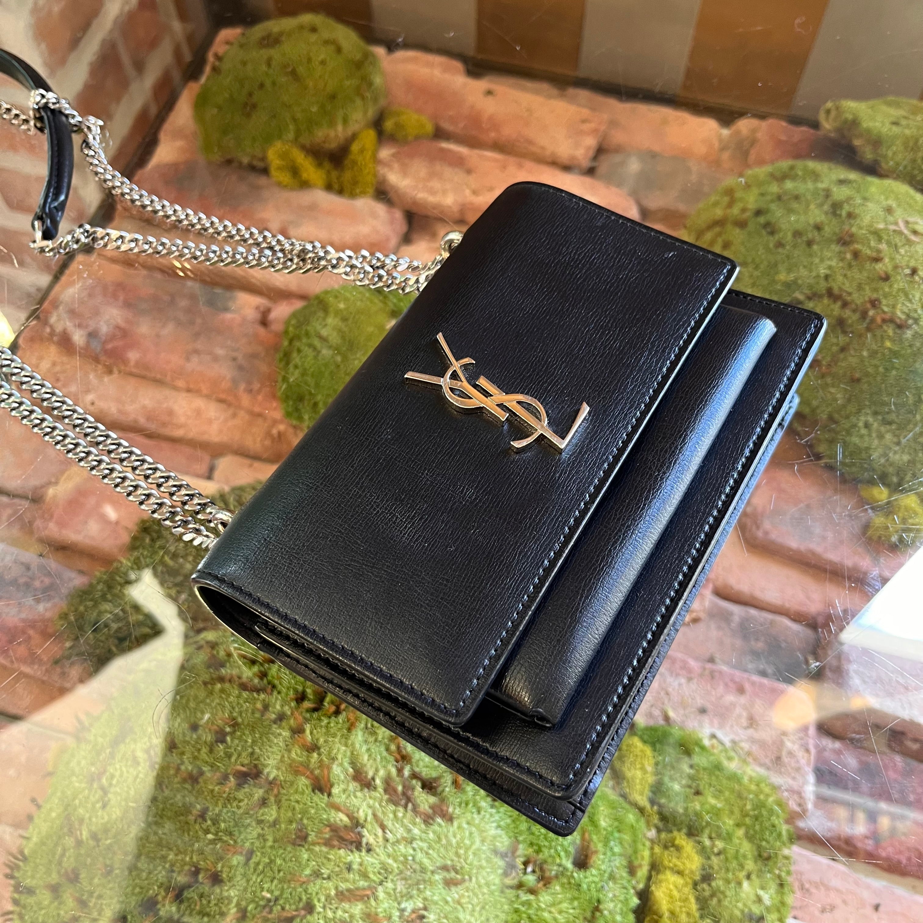 SAINT LAURENT Sunset Black Calfskin Monogram Chain Wallet Crossbody