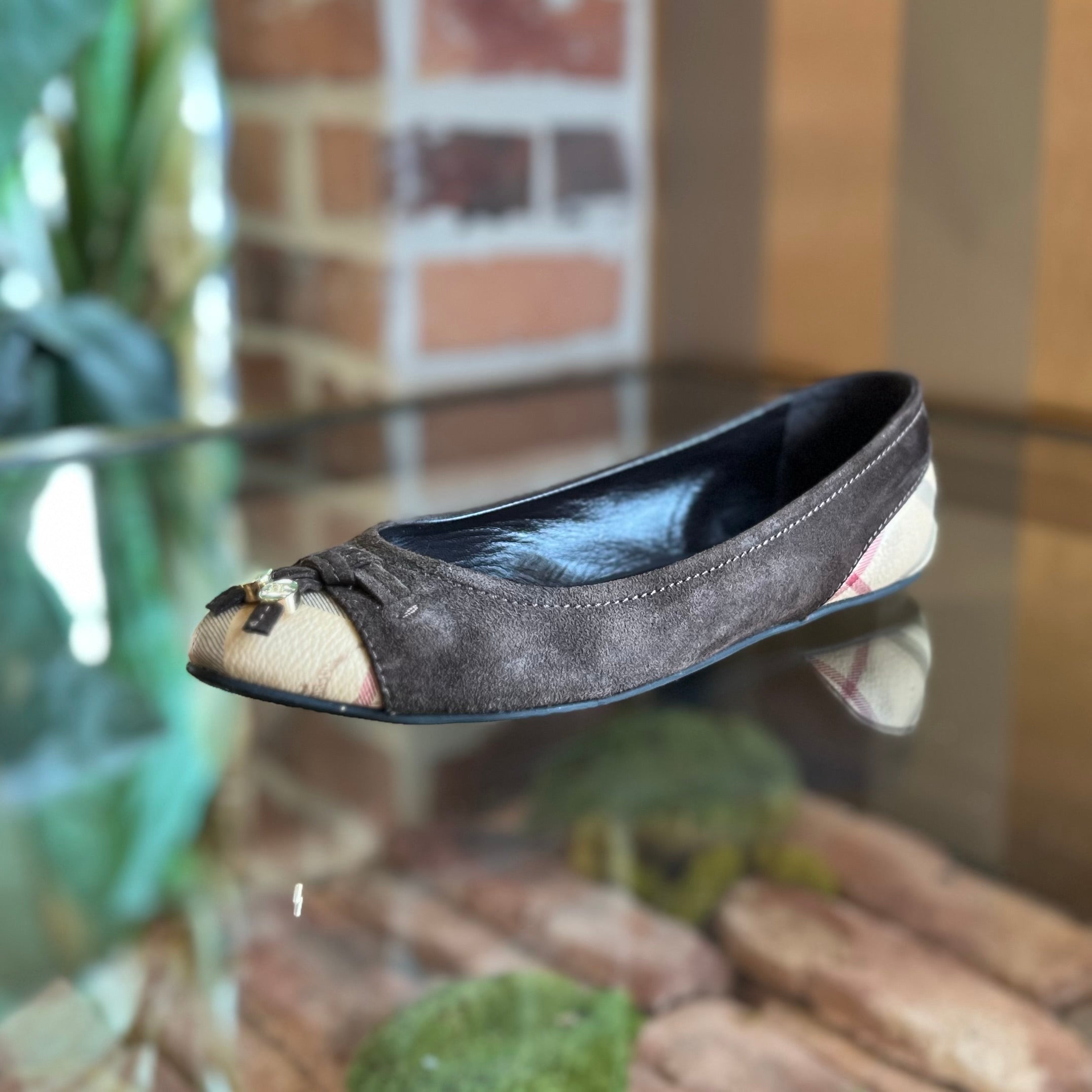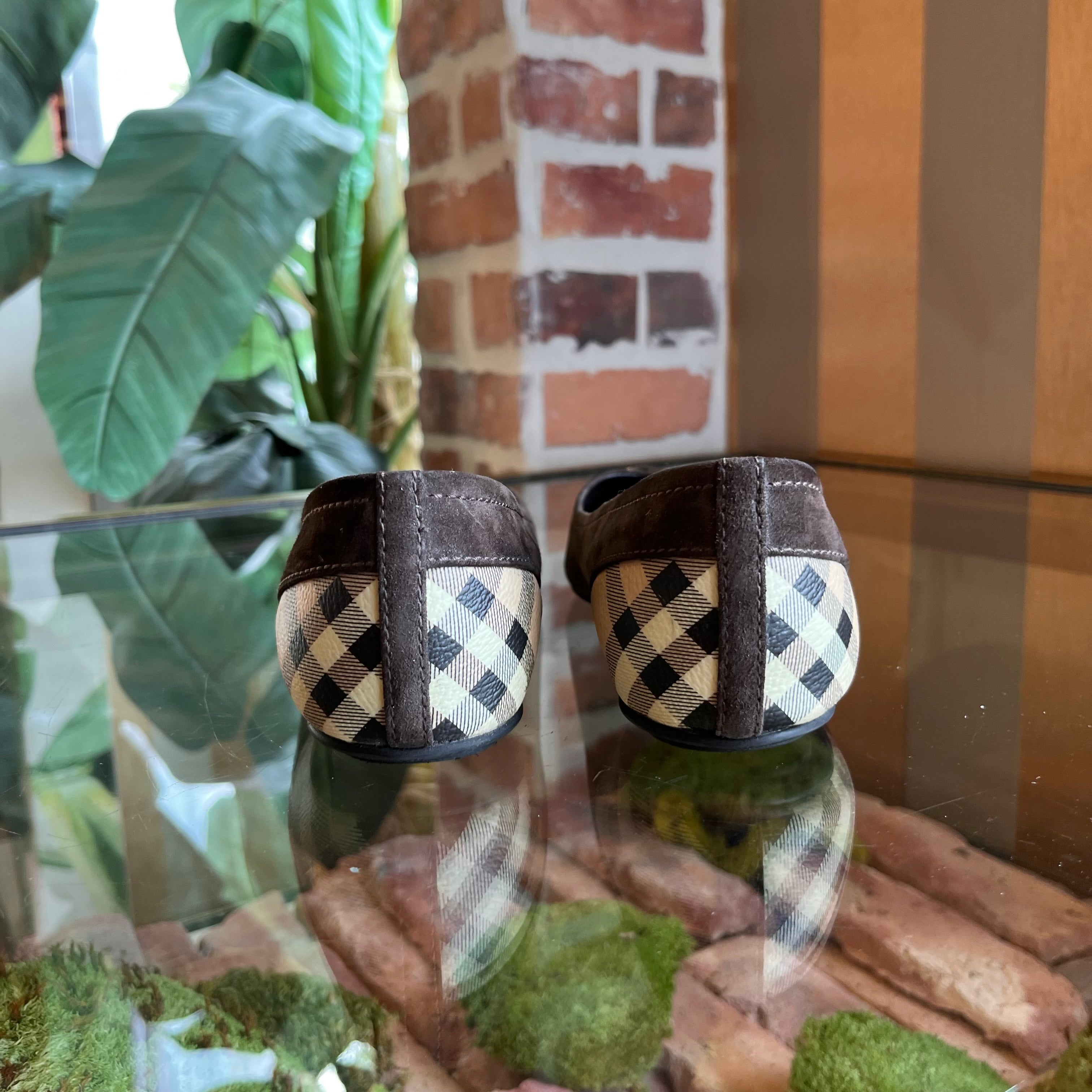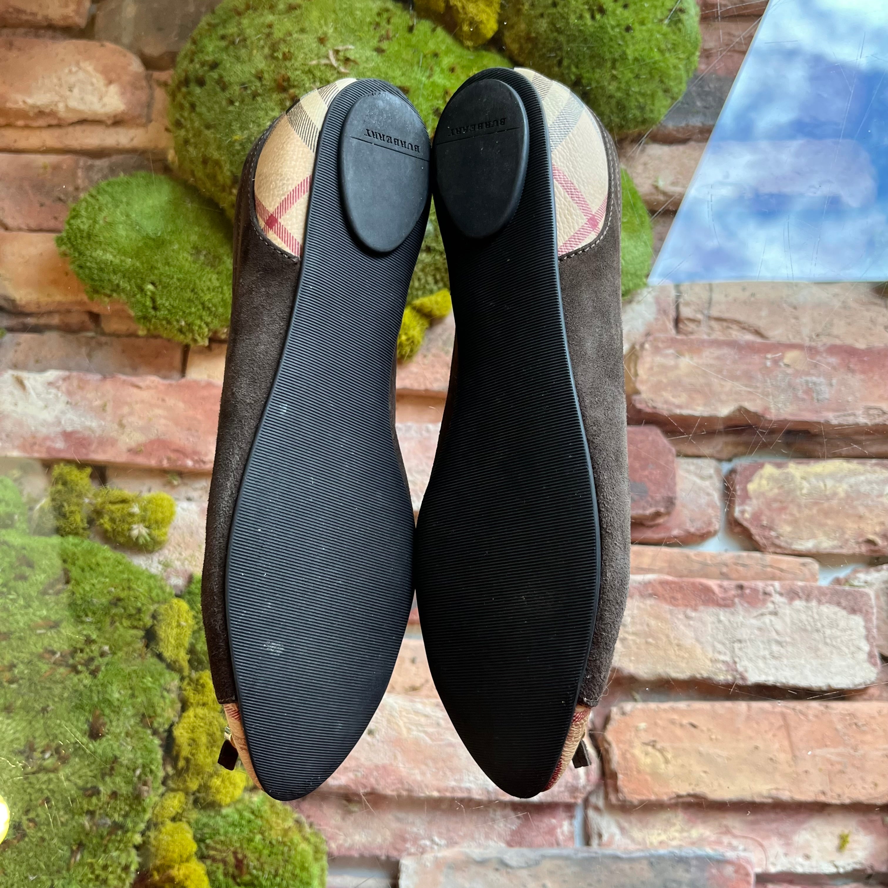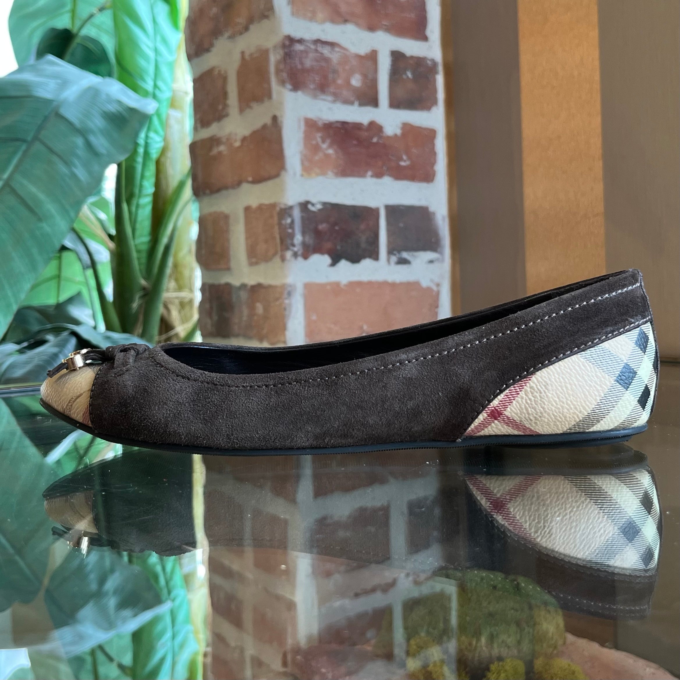 BURBERRY Brown Suede Haymarket Cap Toe Flats SZ37.5(7.5US)