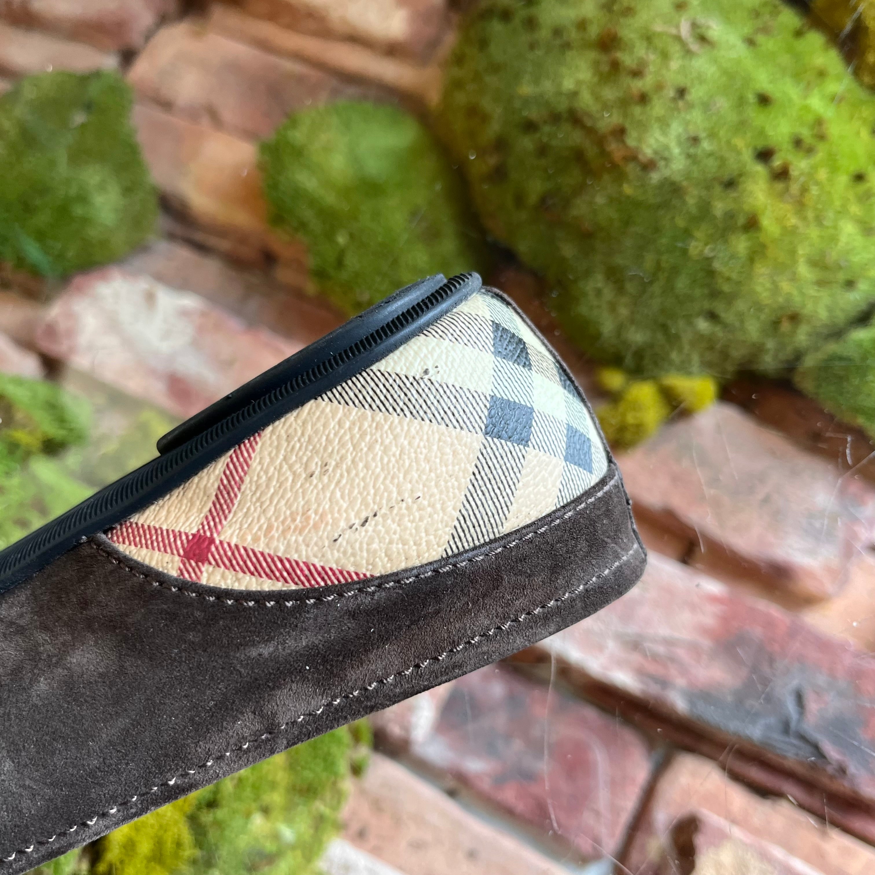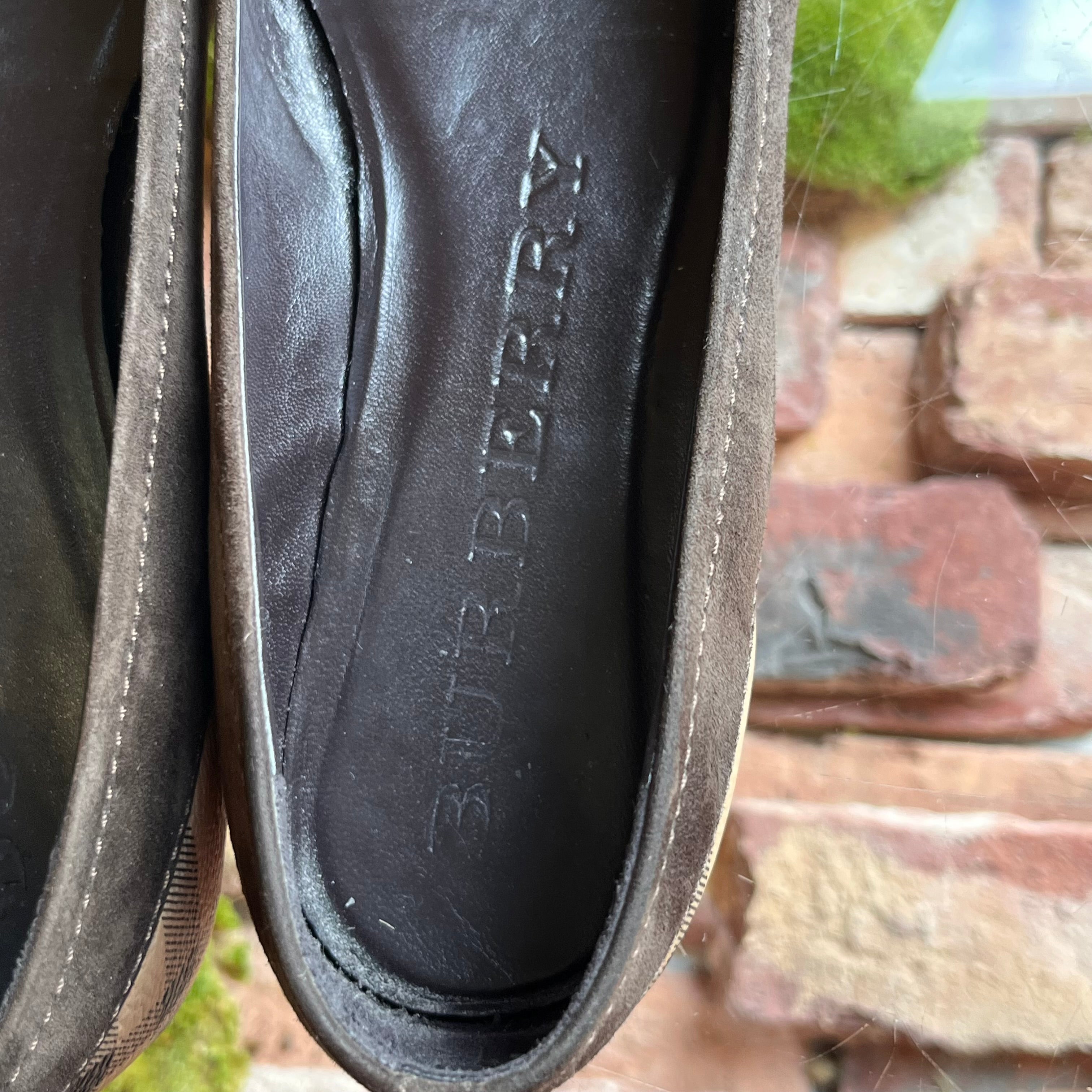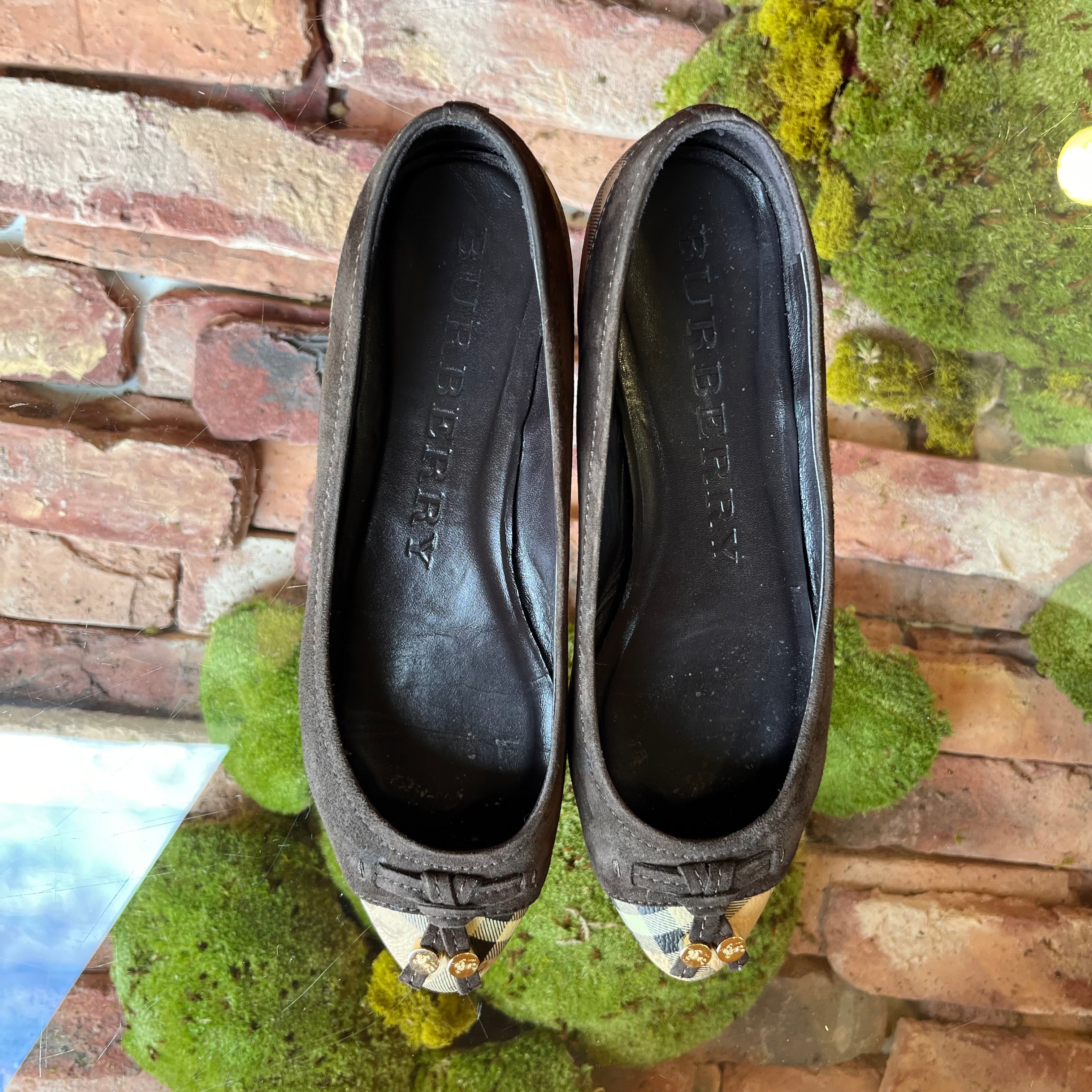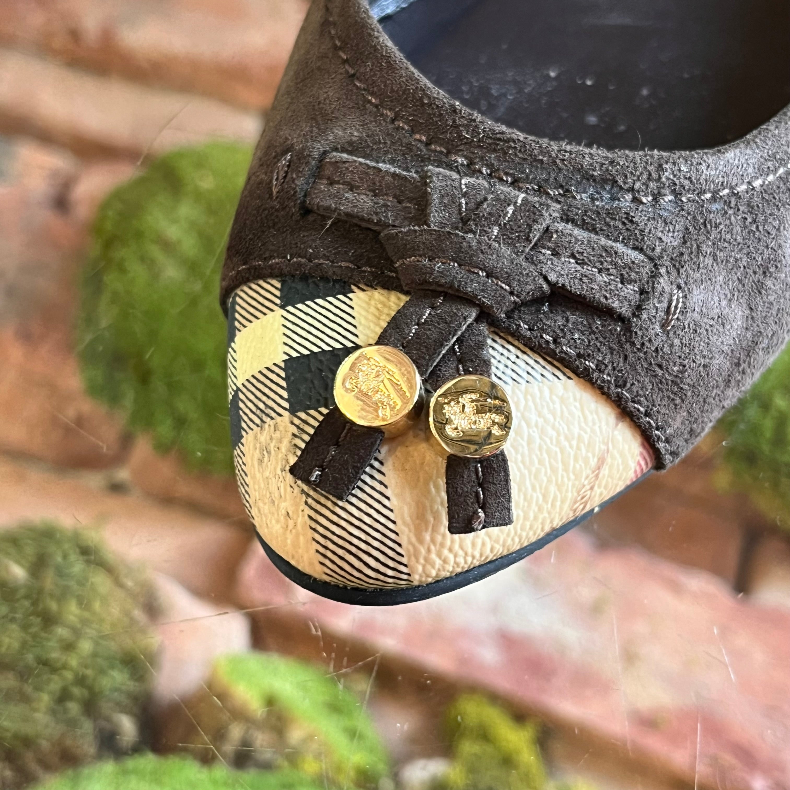 BURBERRY Brown Suede Haymarket Cap Toe Flats SZ37.5(7.5US)