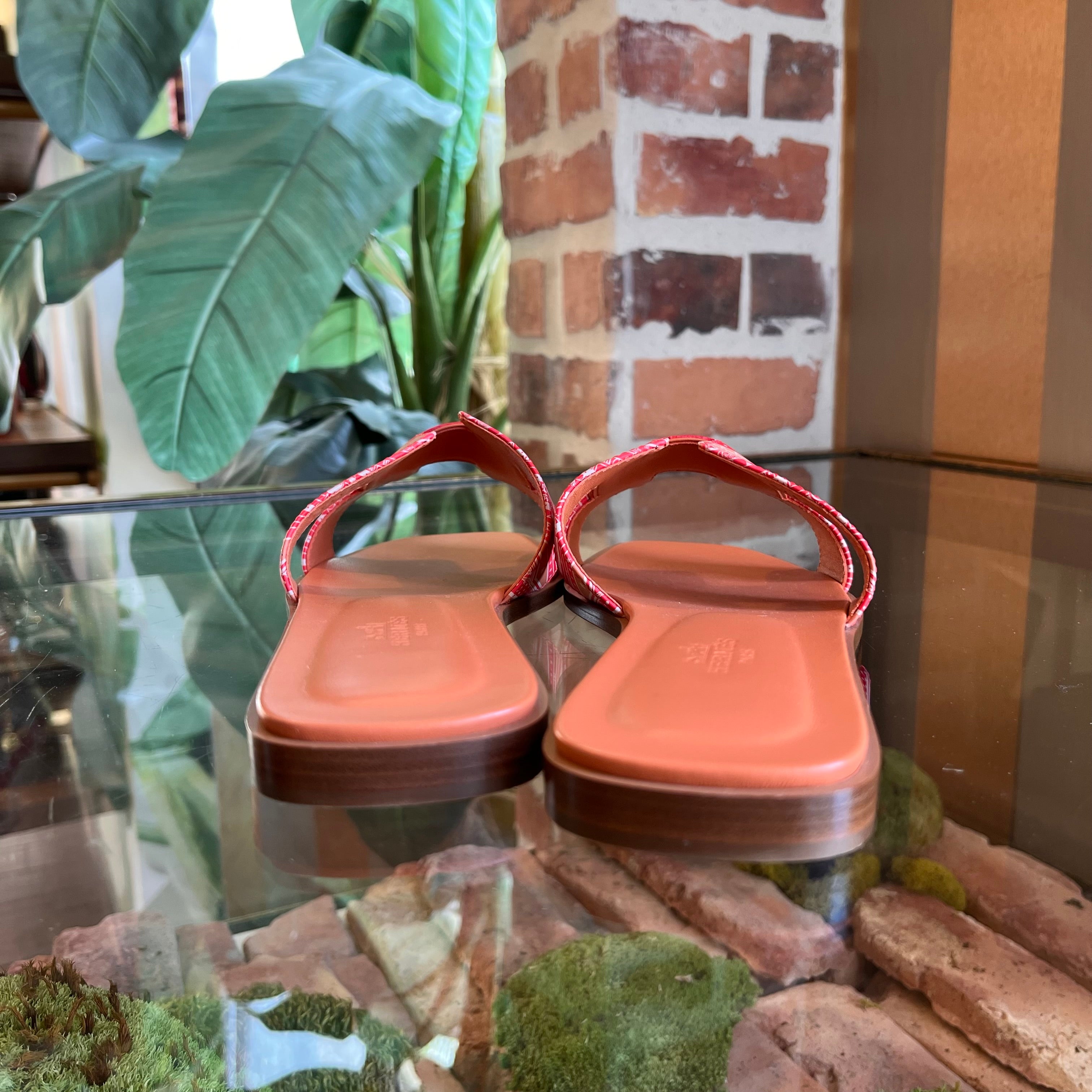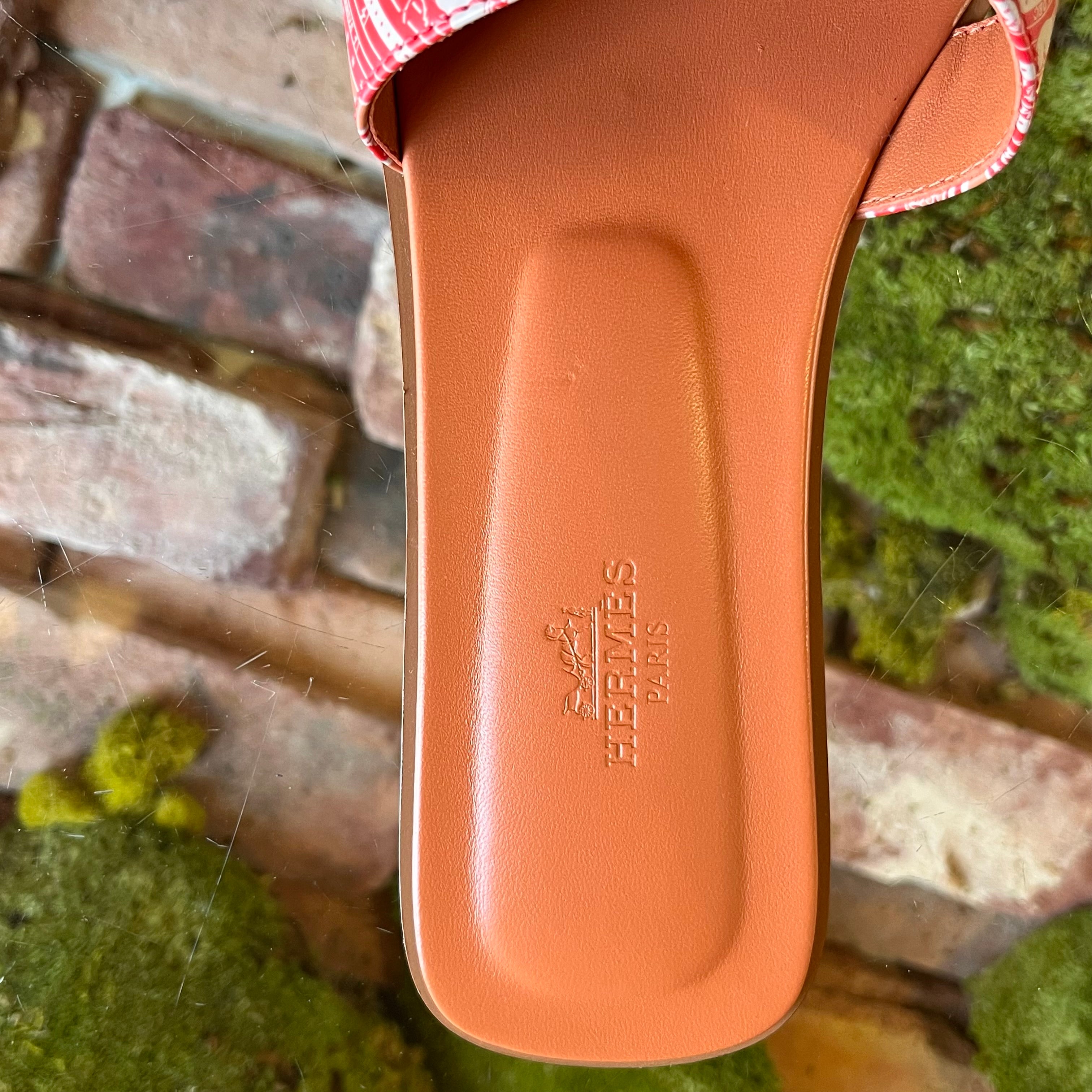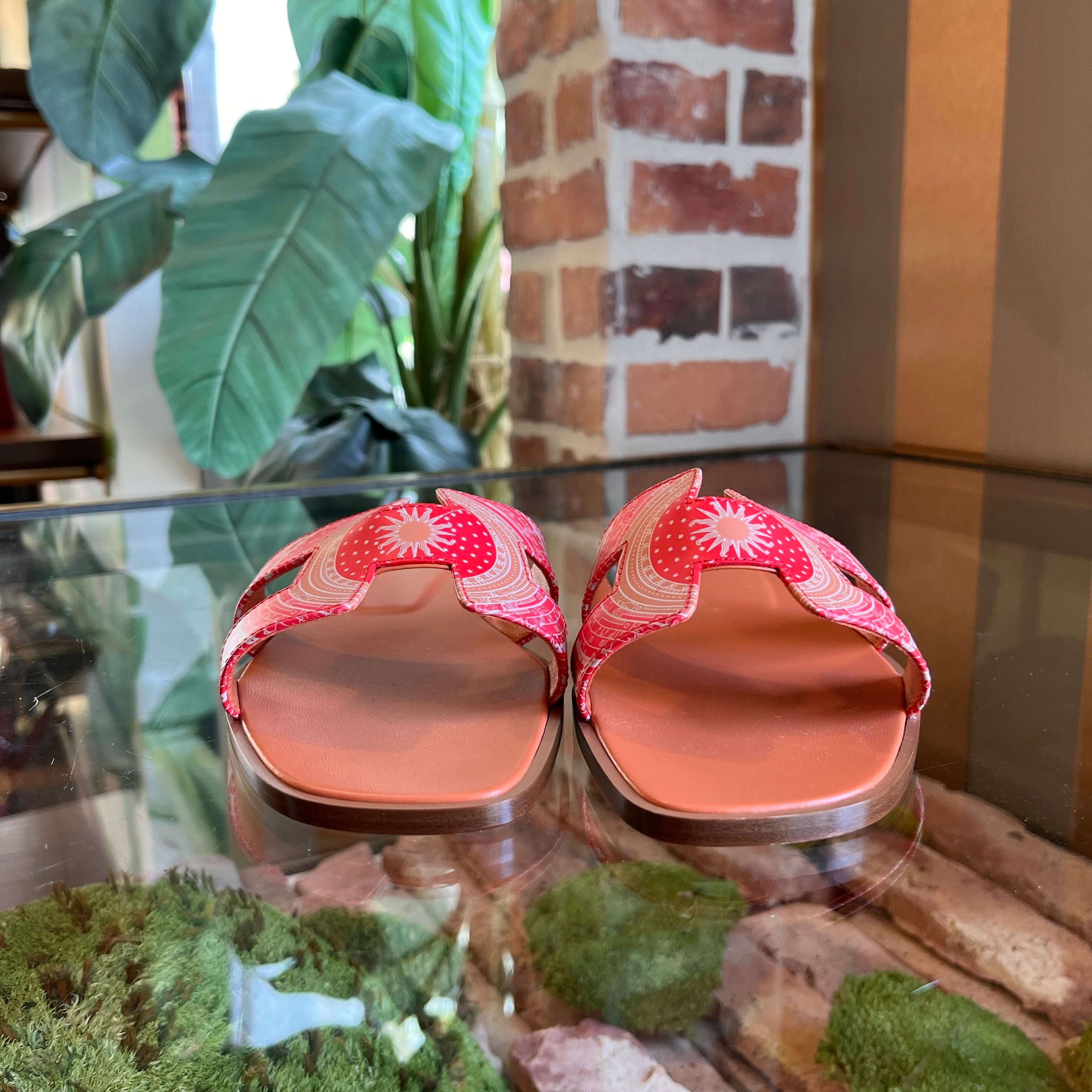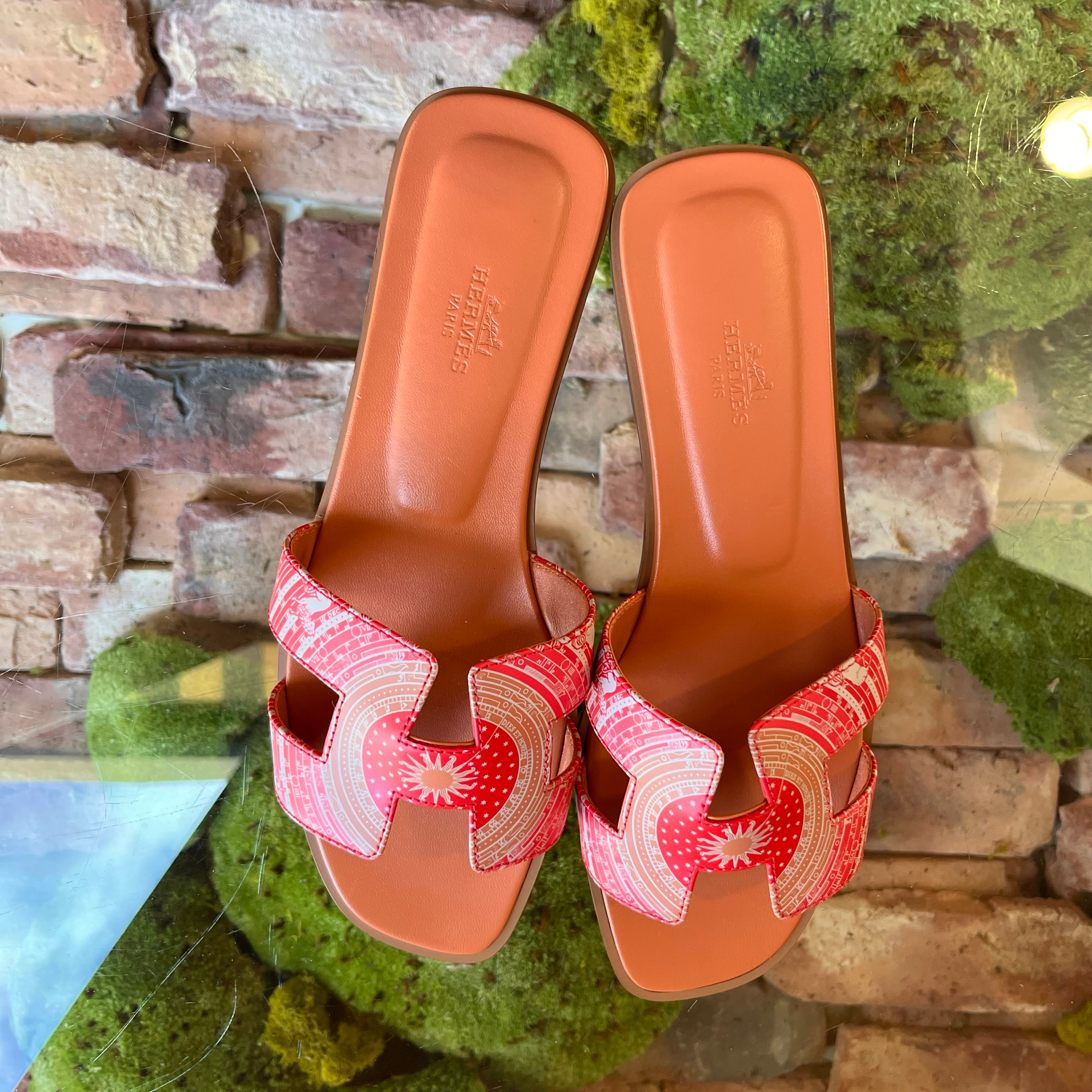 HERMES Oran Terracotta Calfskin Bandana Astrologie Sandals SZ39.5(9.5US)