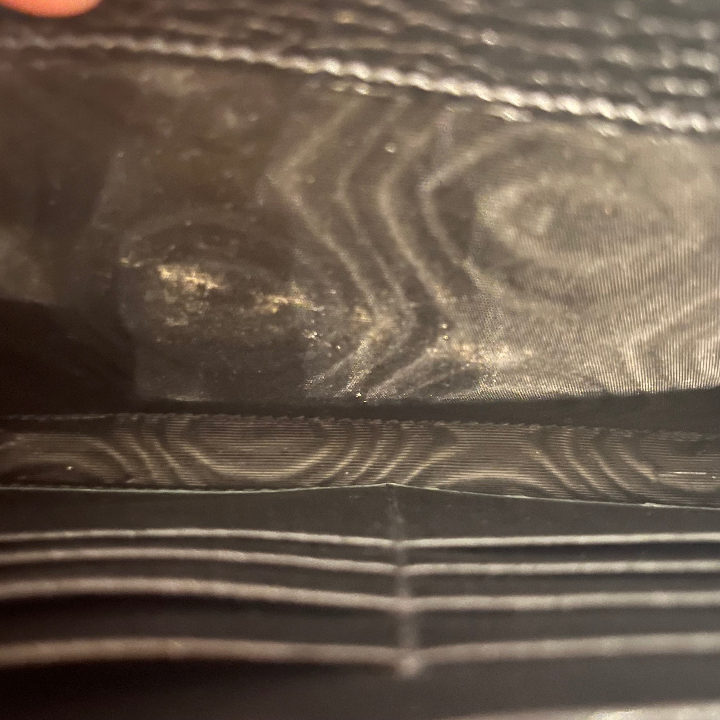 - Interior: The leather lining features some white markings, which may be inherent to the material or a result of handling. Scratches.