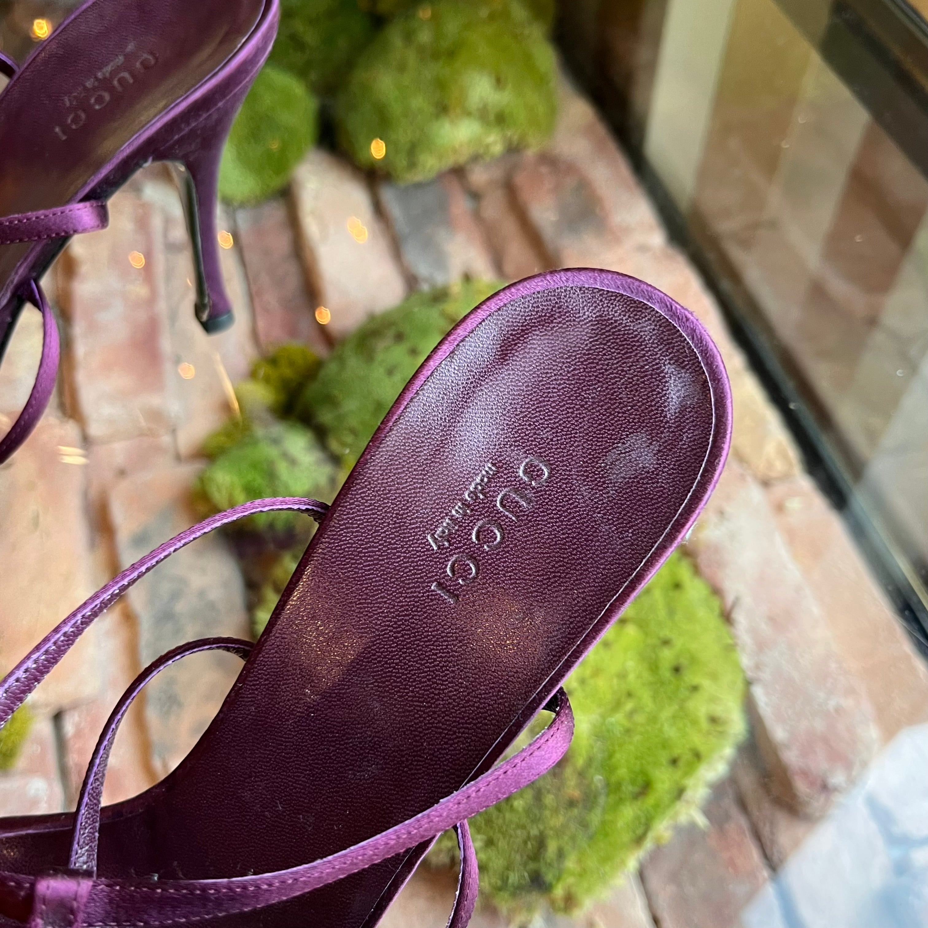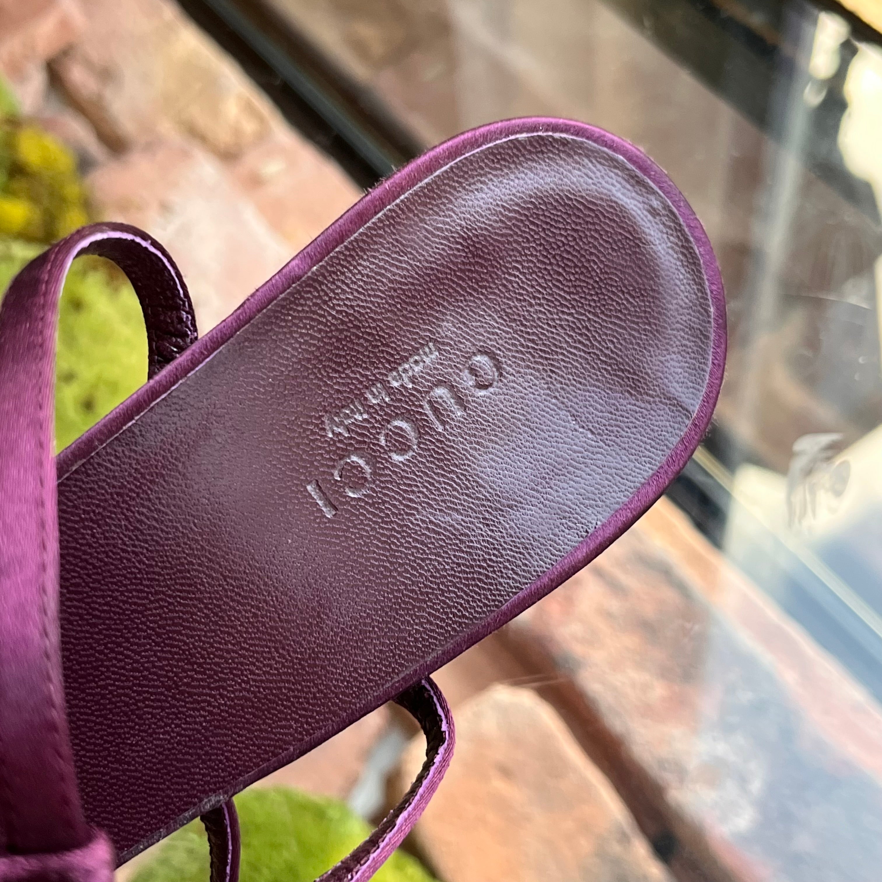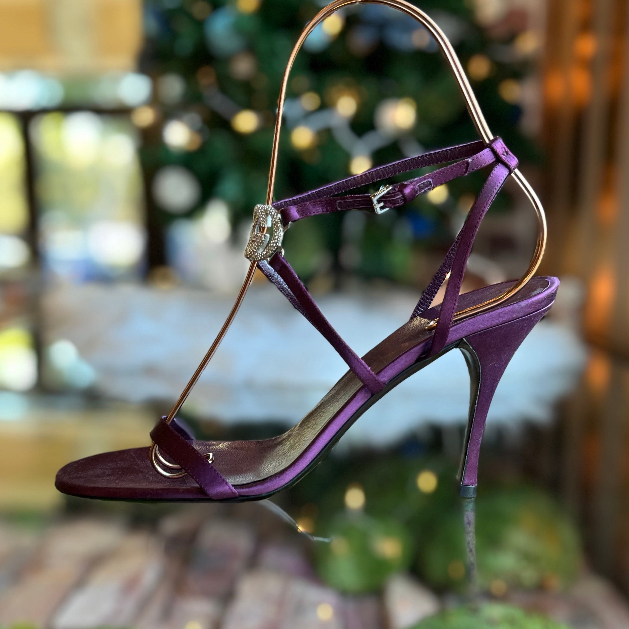 GUCCI Crystal GG Purple Satin Ankle Strap Sandals Heels SZ9
