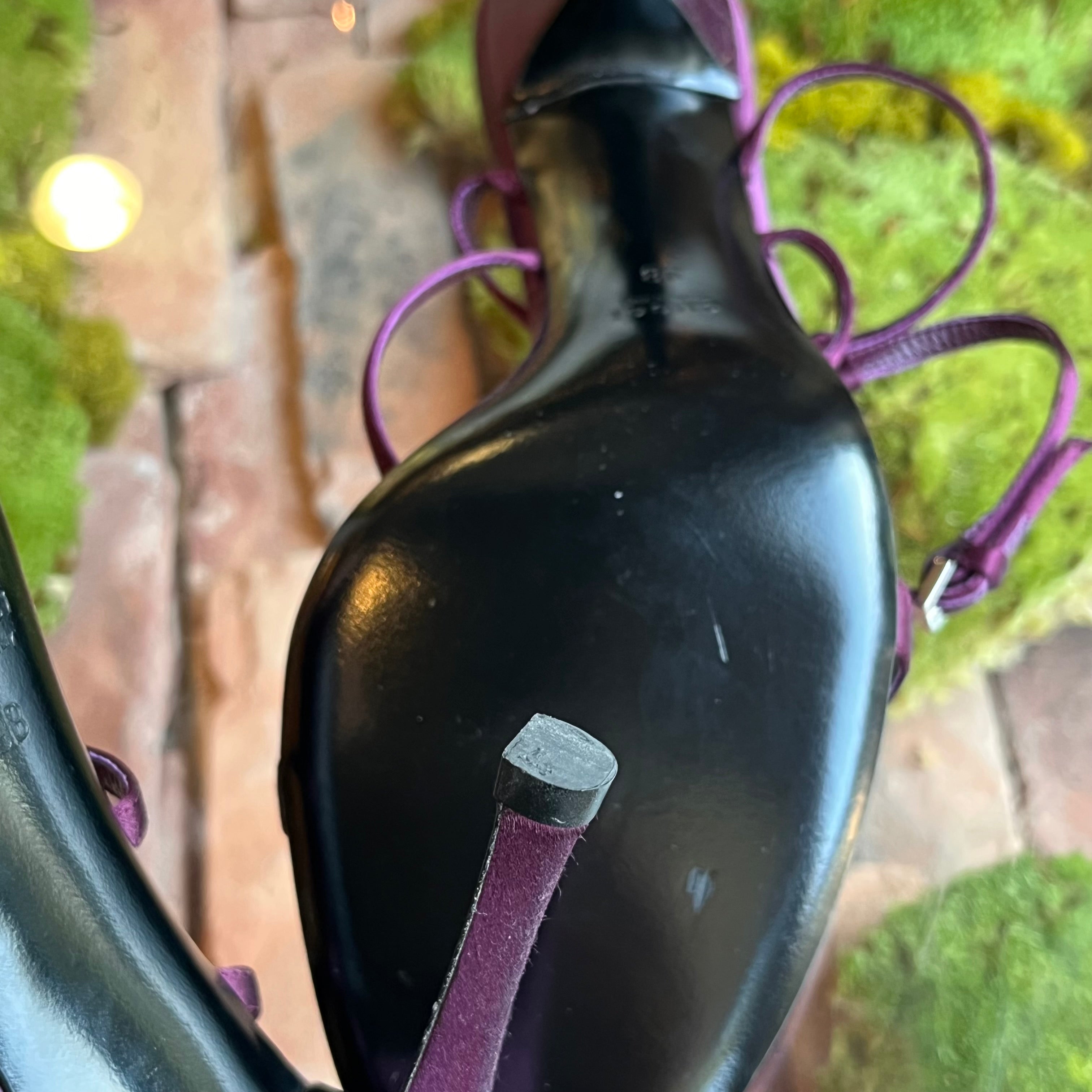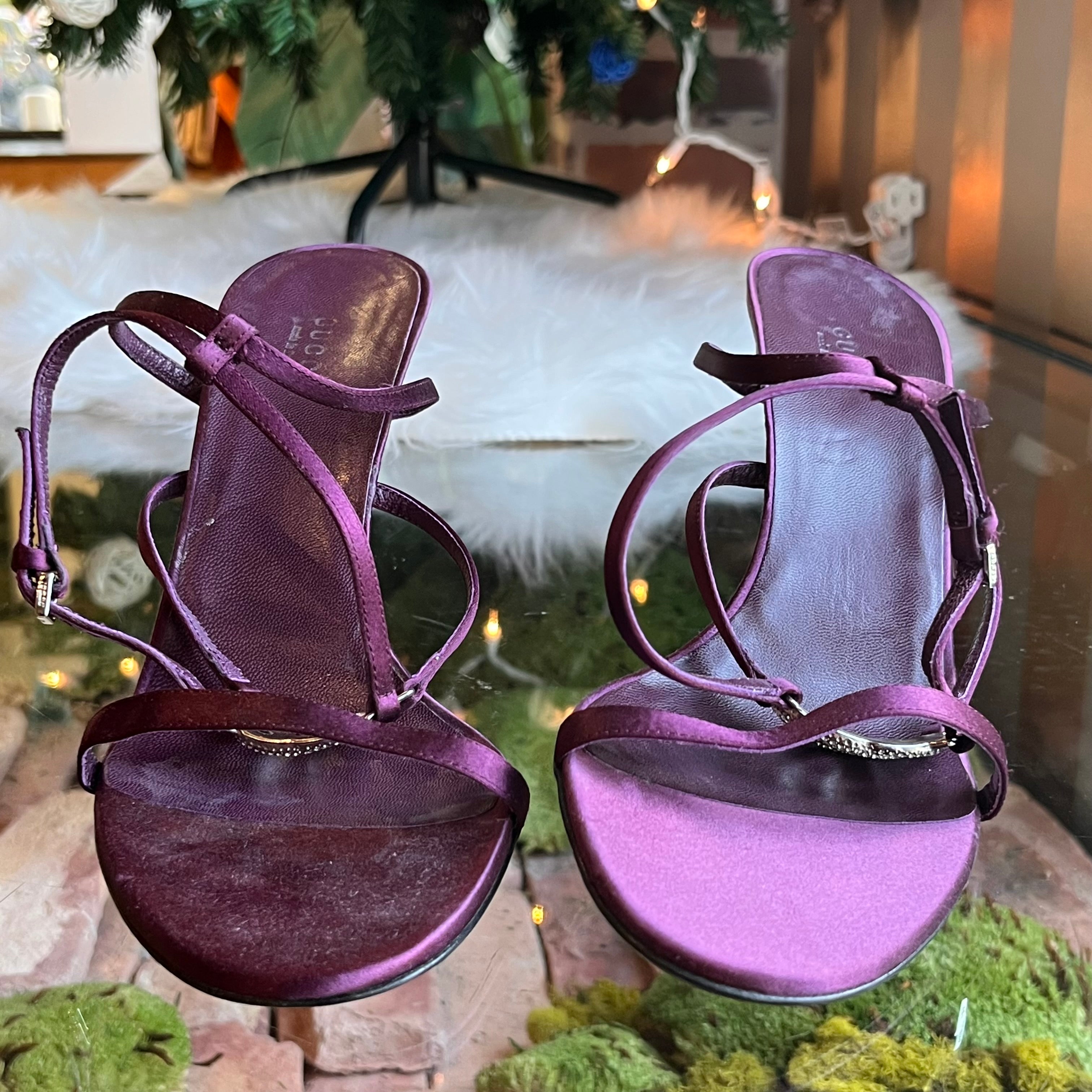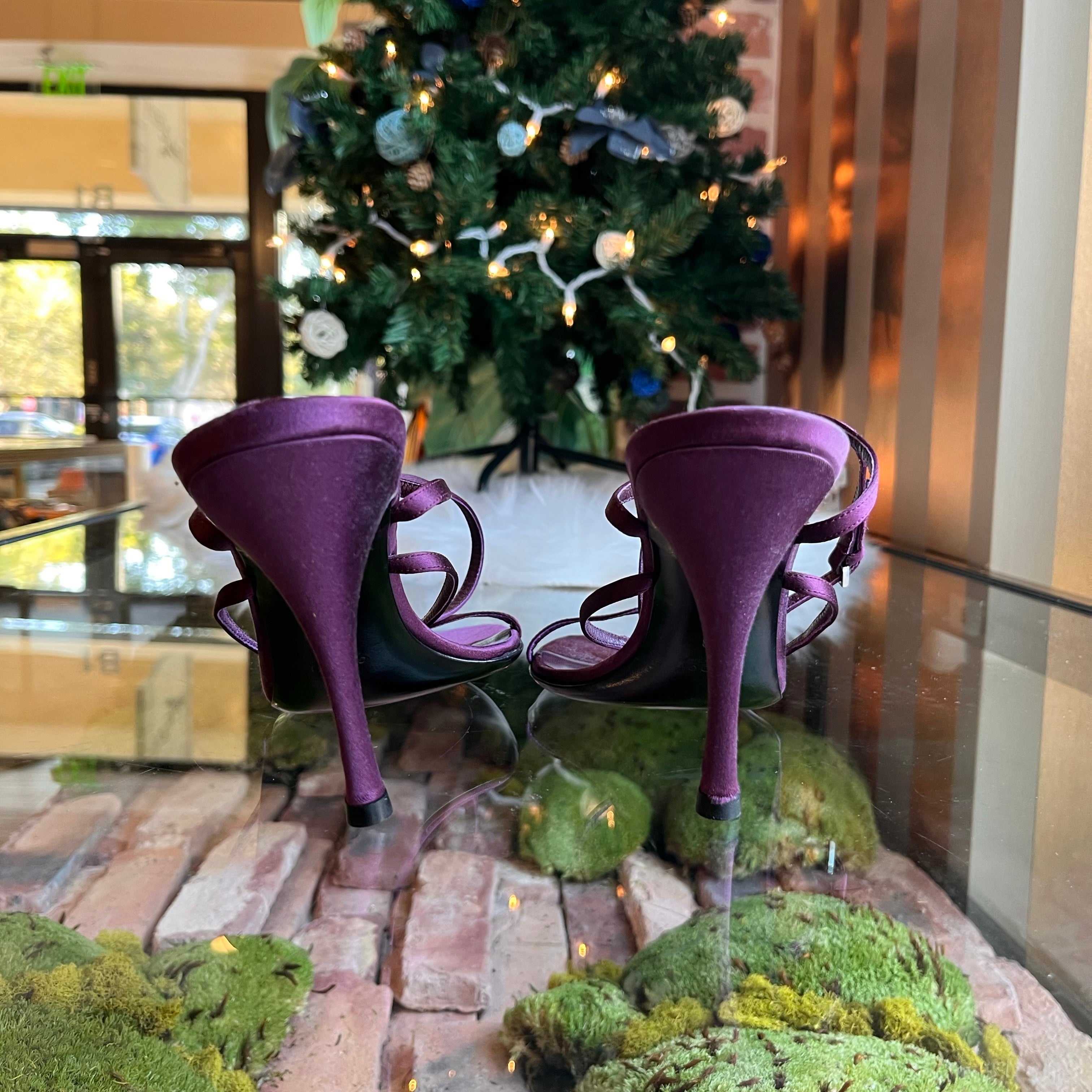 GUCCI Crystal GG Purple Satin Ankle Strap Sandals Heels SZ9