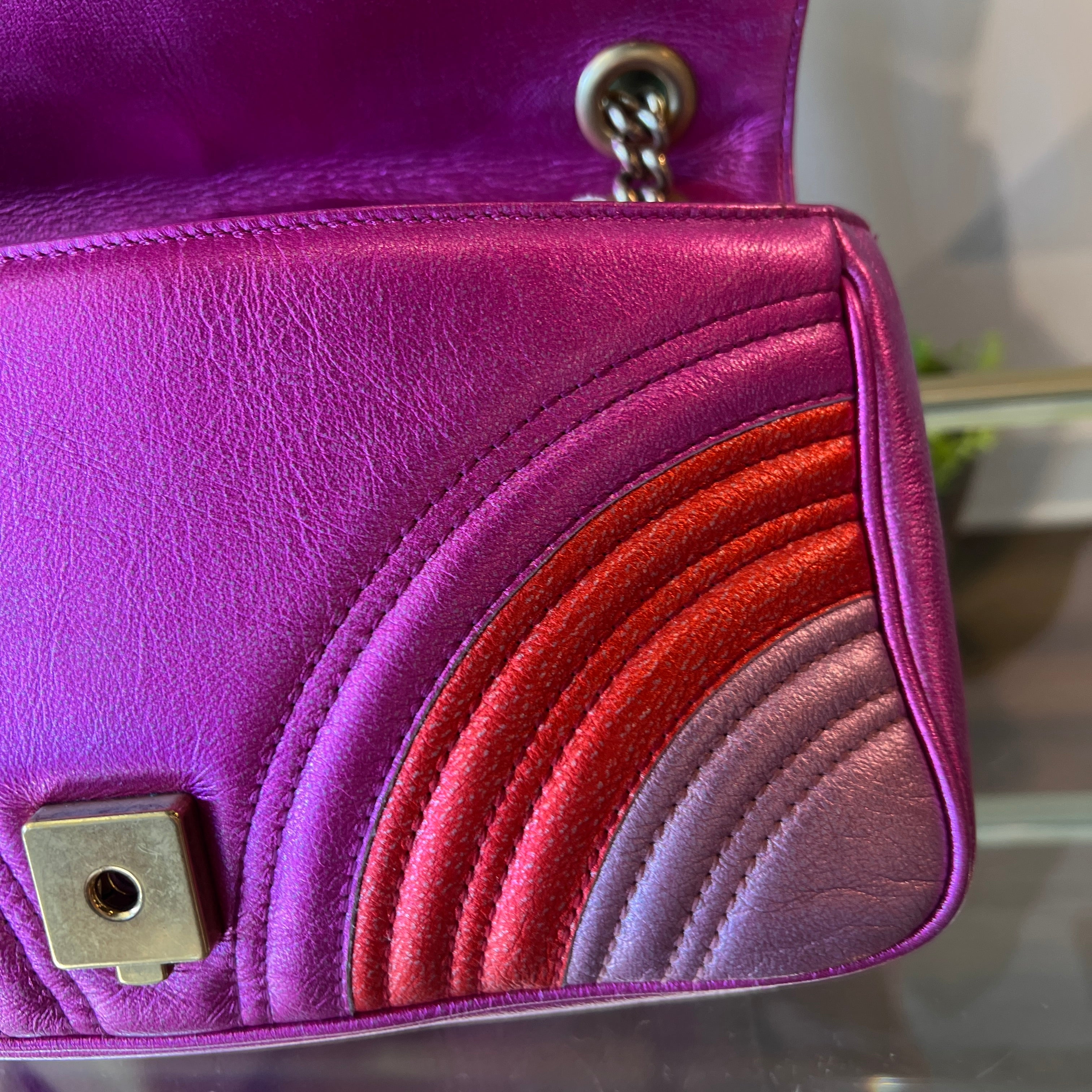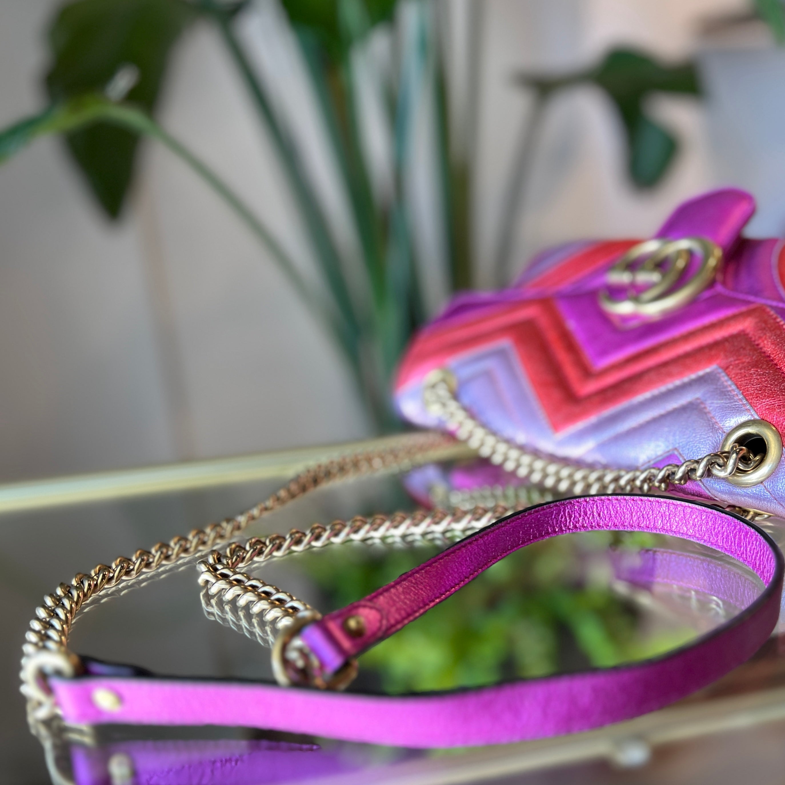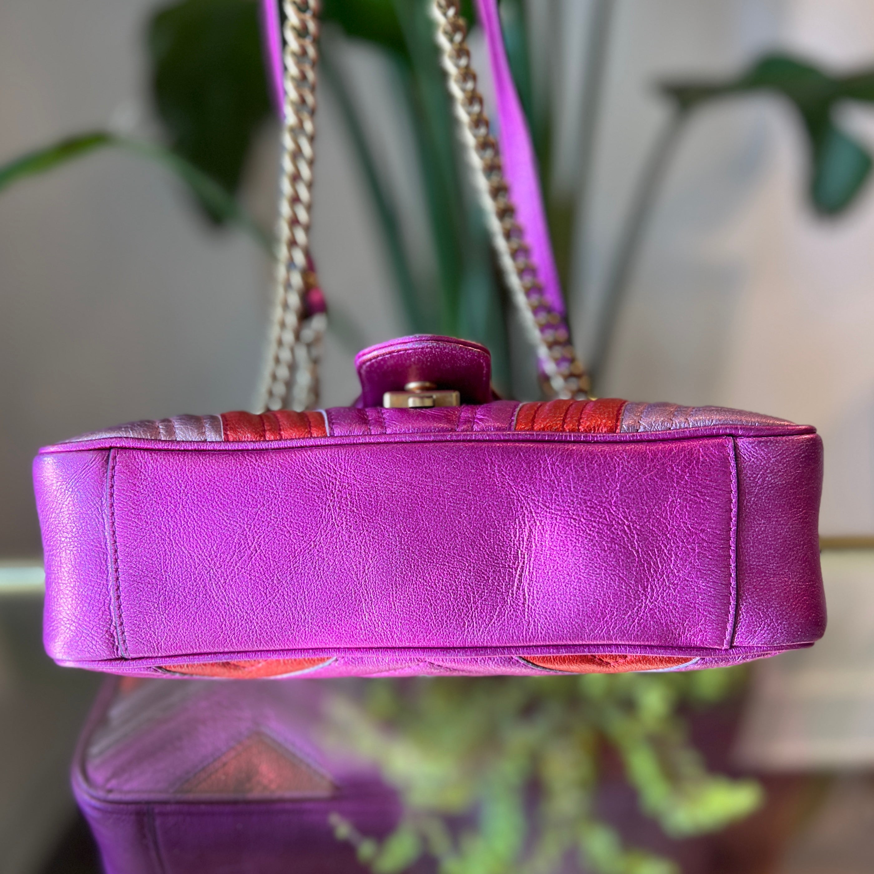 GUCCI GG Marmont Small Pink Metallic Diagonal Quilted Flap Shoulder Ba