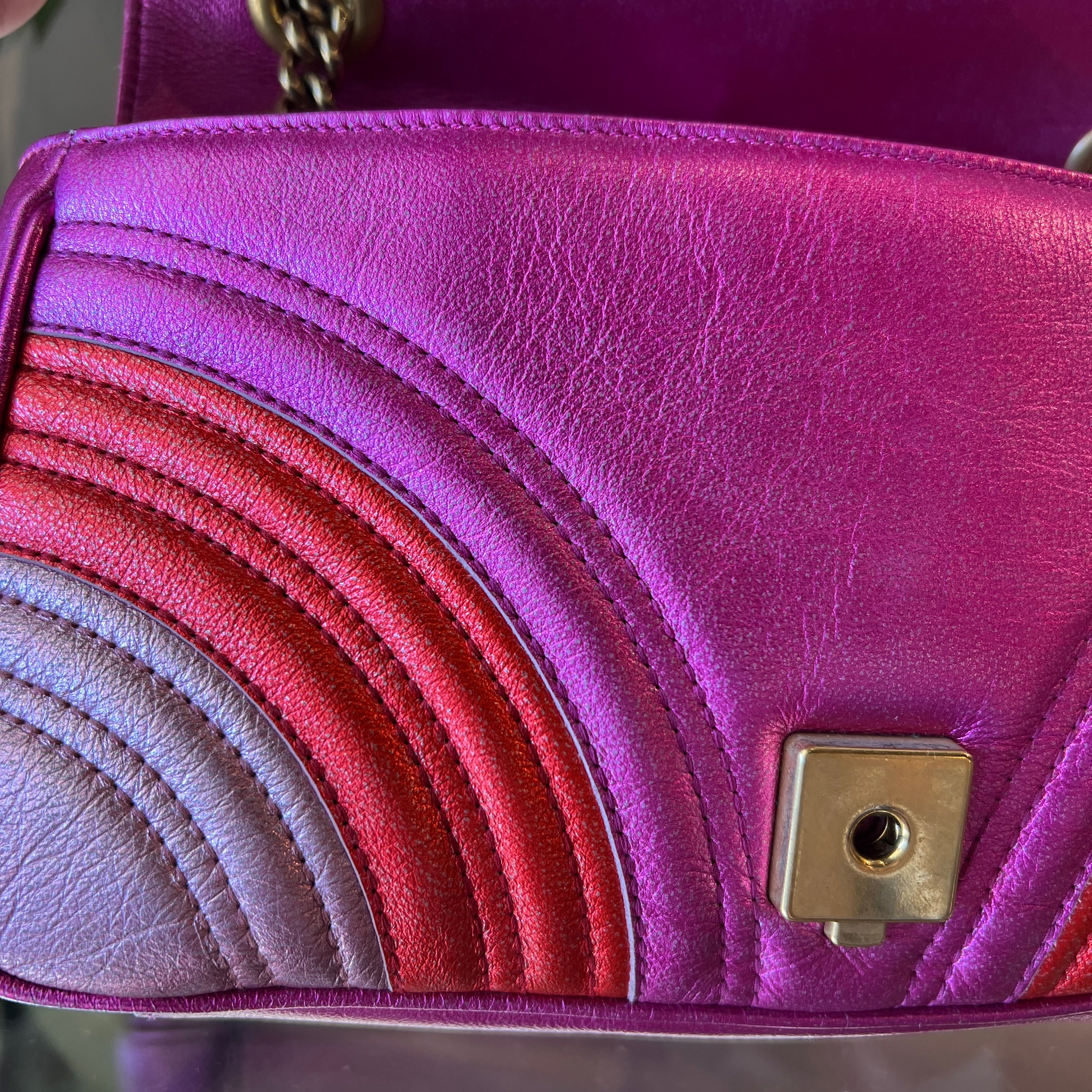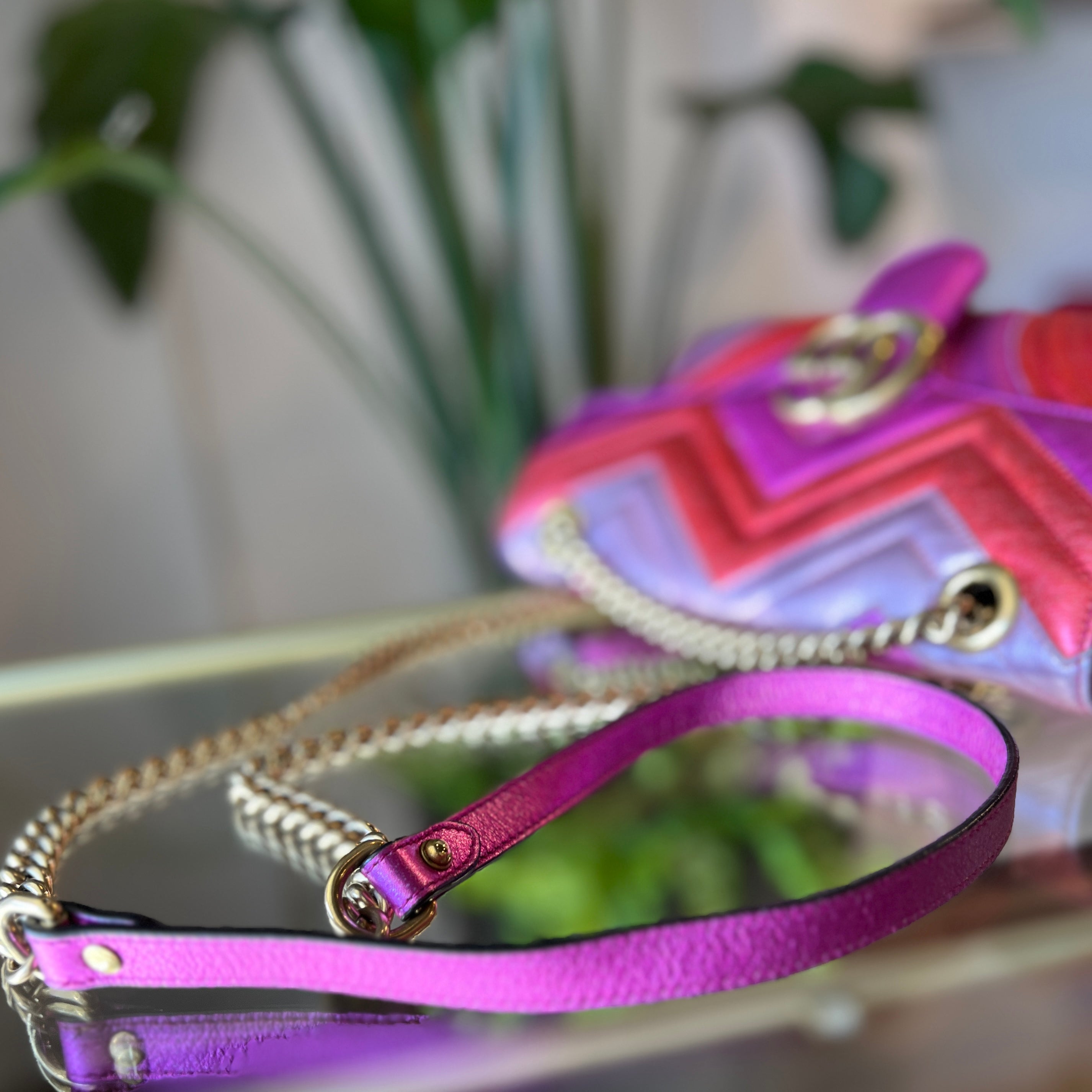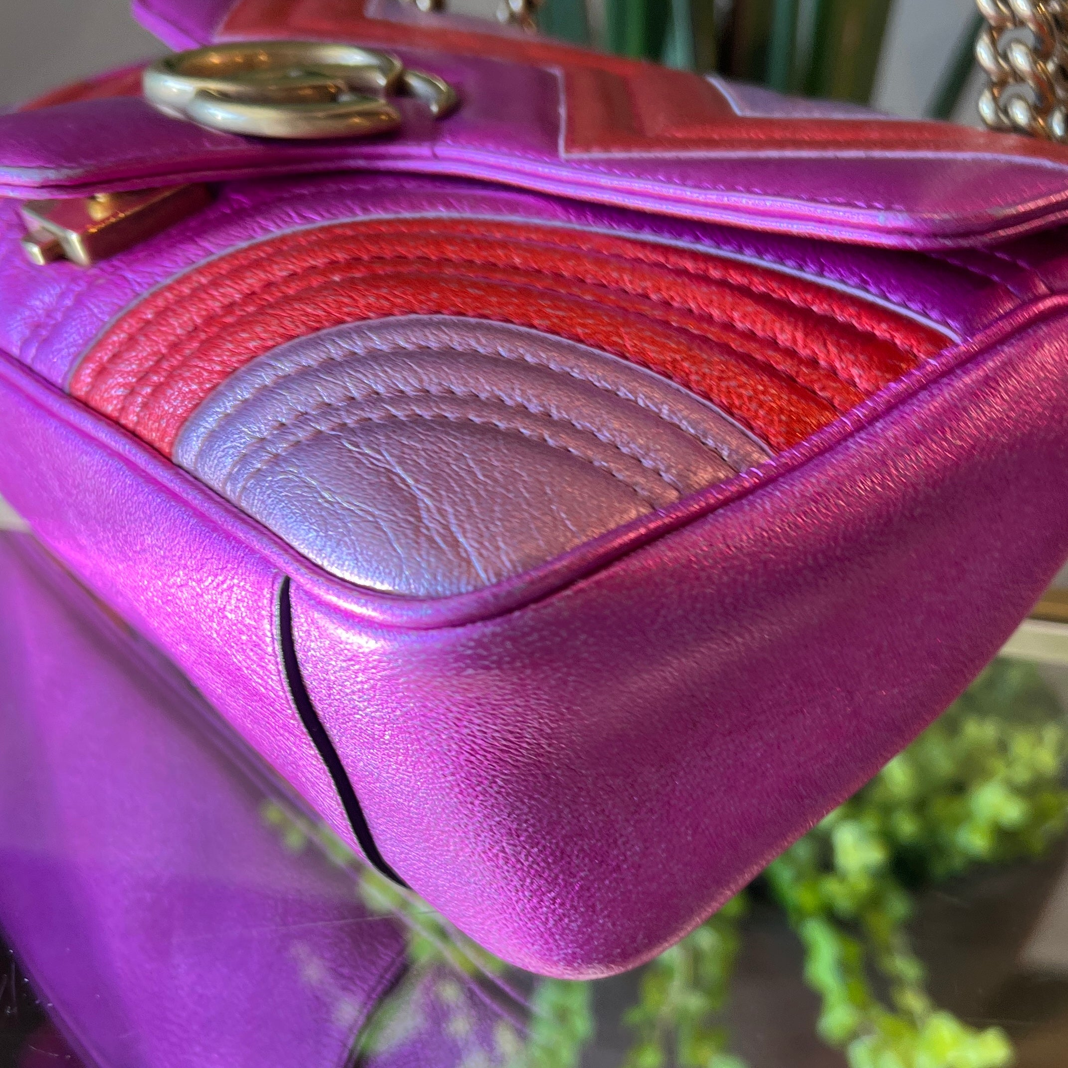 GUCCI GG Marmont Small Pink Metallic Diagonal Quilted Flap Shoulder Ba