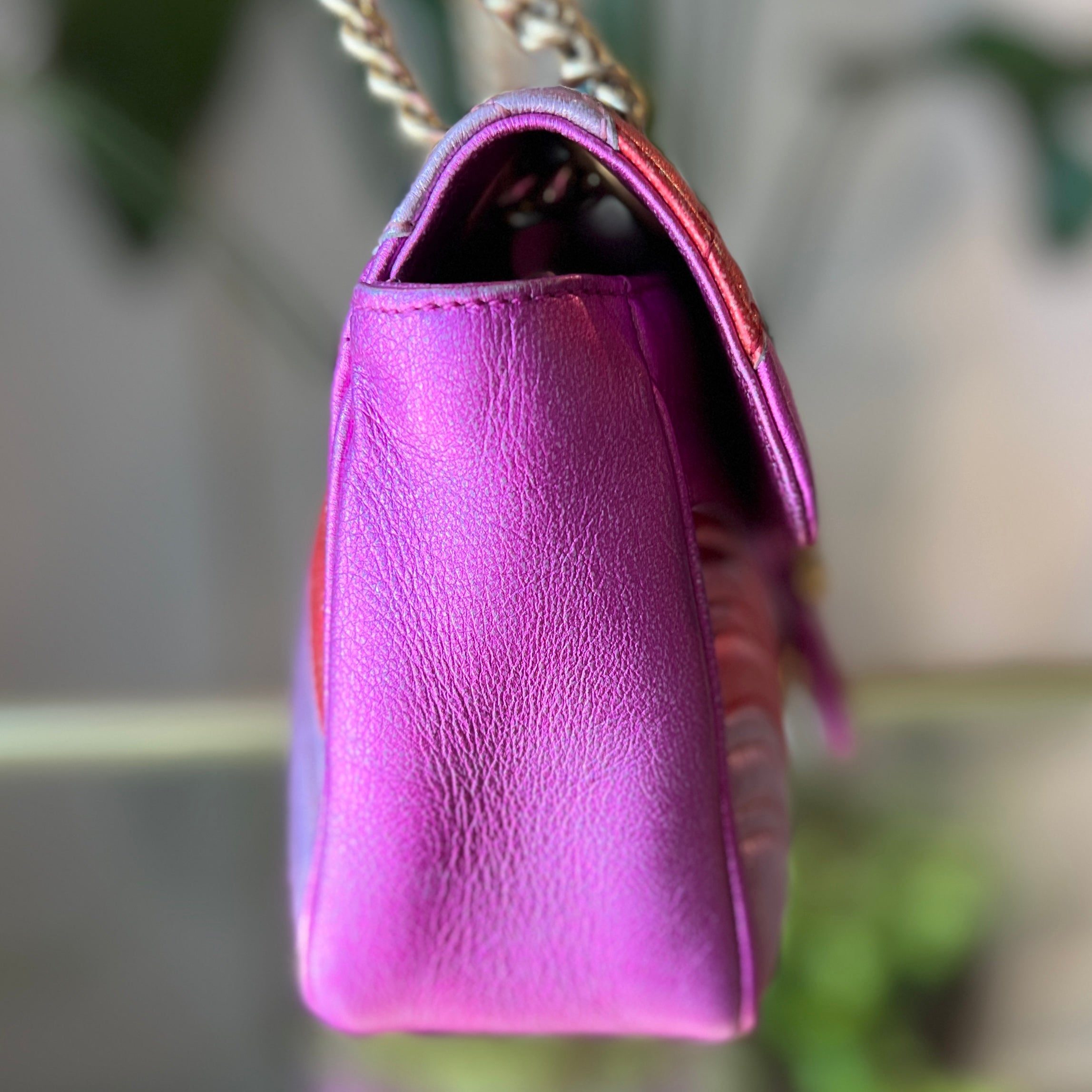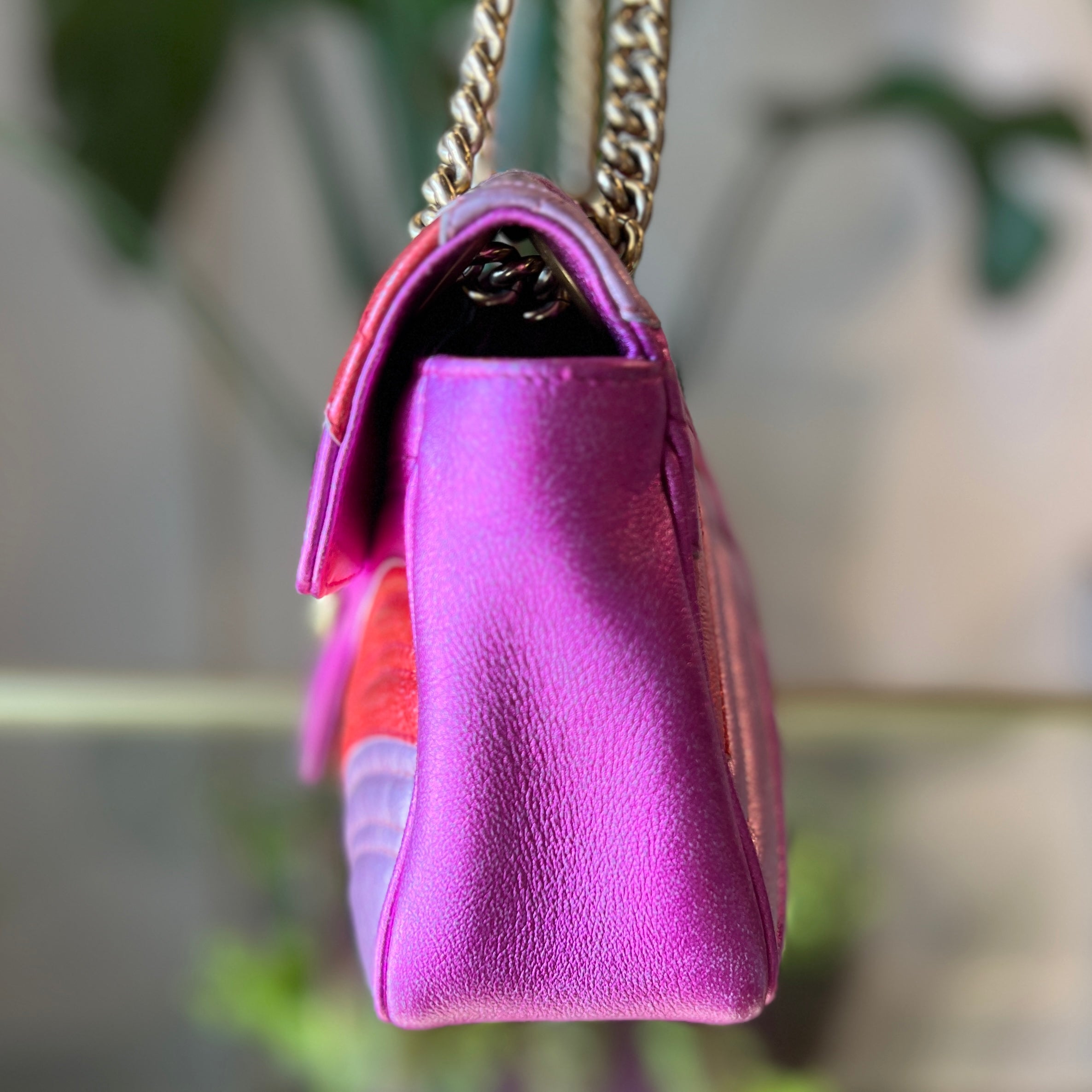 GUCCI GG Marmont Small Pink Metallic Diagonal Quilted Flap Shoulder Bag