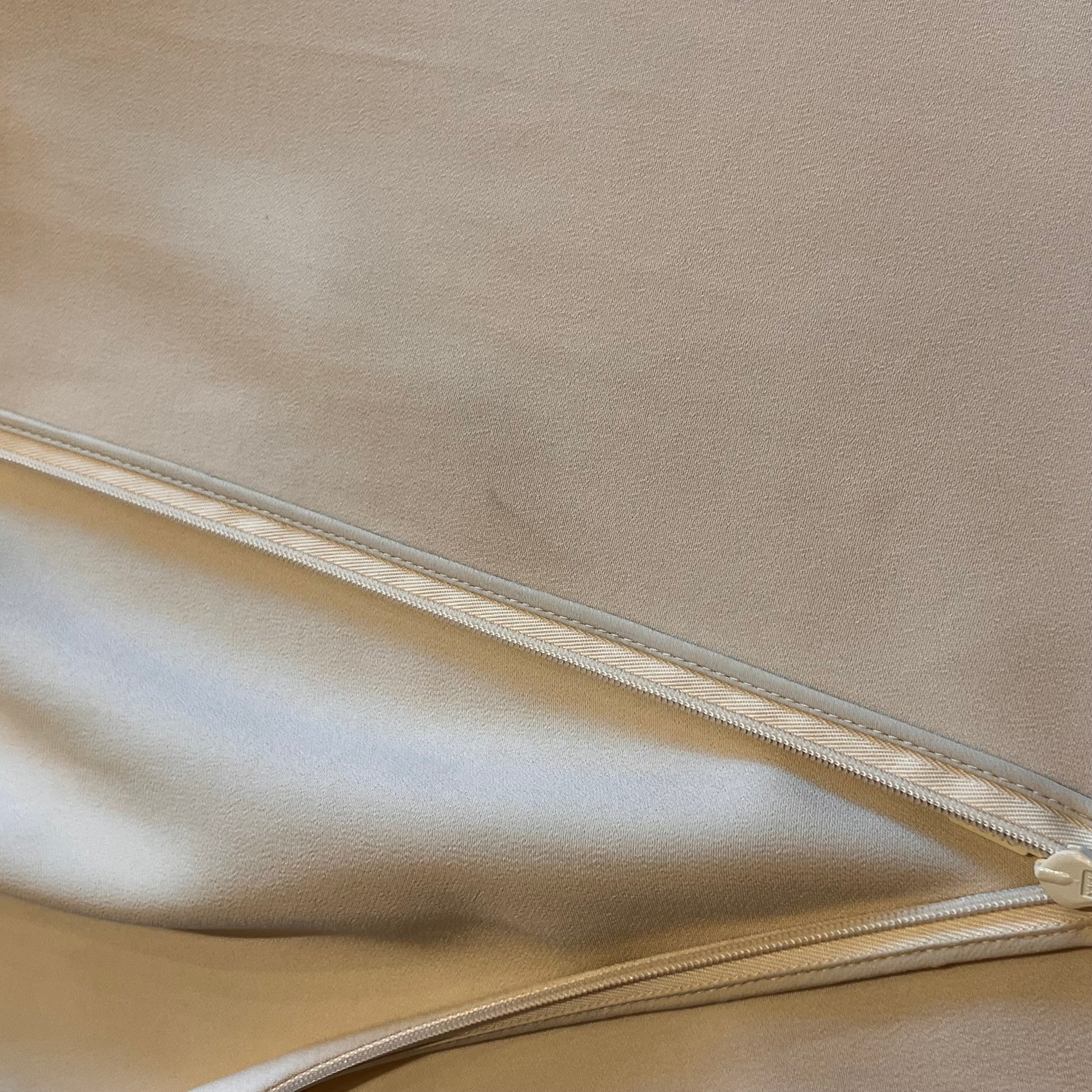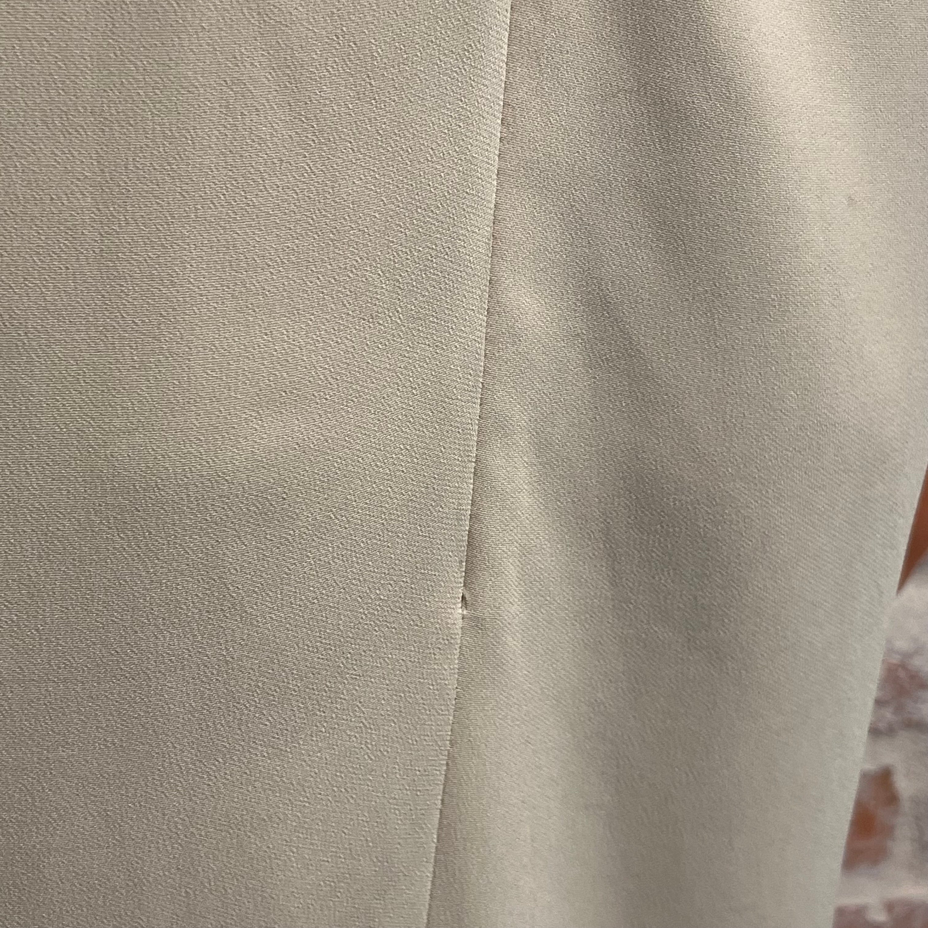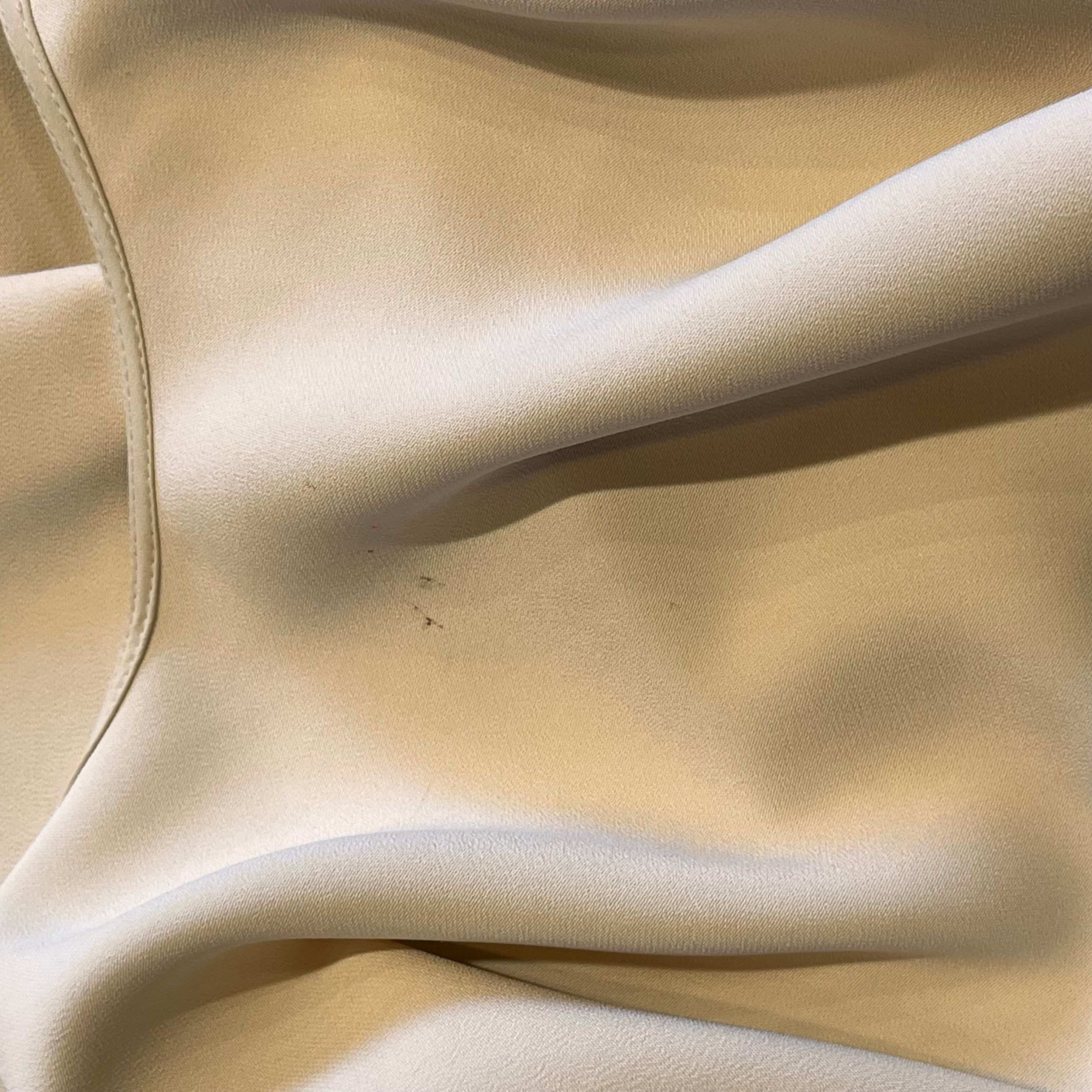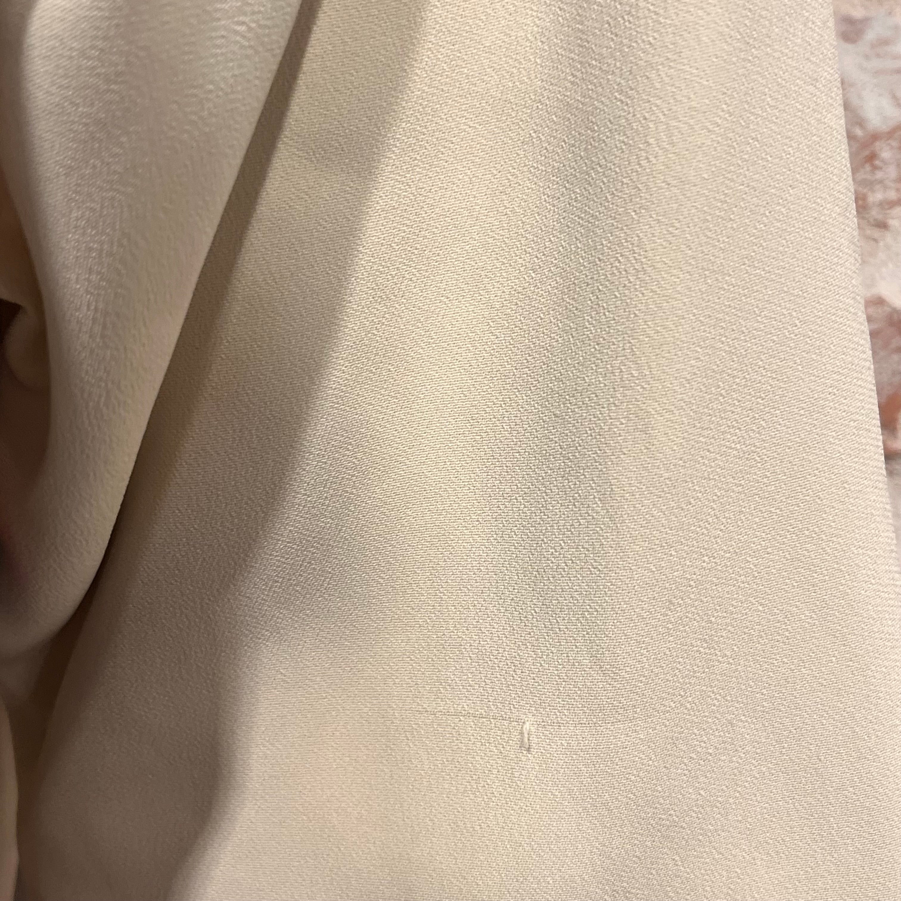 • Exterior: The fabric is vibrant and unfaded retaining its refined appearance while having developed small stains with pulls/runs. At the time of listing the tag remains intact with a plastic hang tag fastener. It could possibly be cleaned if desired after purchase although it is wearable without. Overall it remains in very good condition.