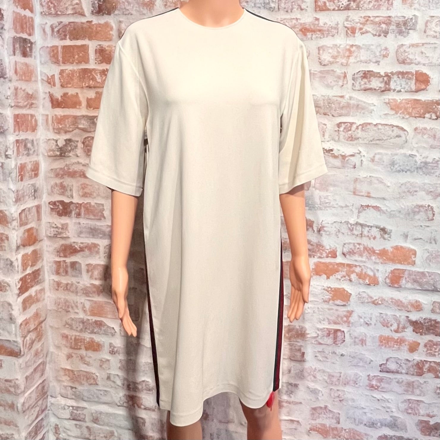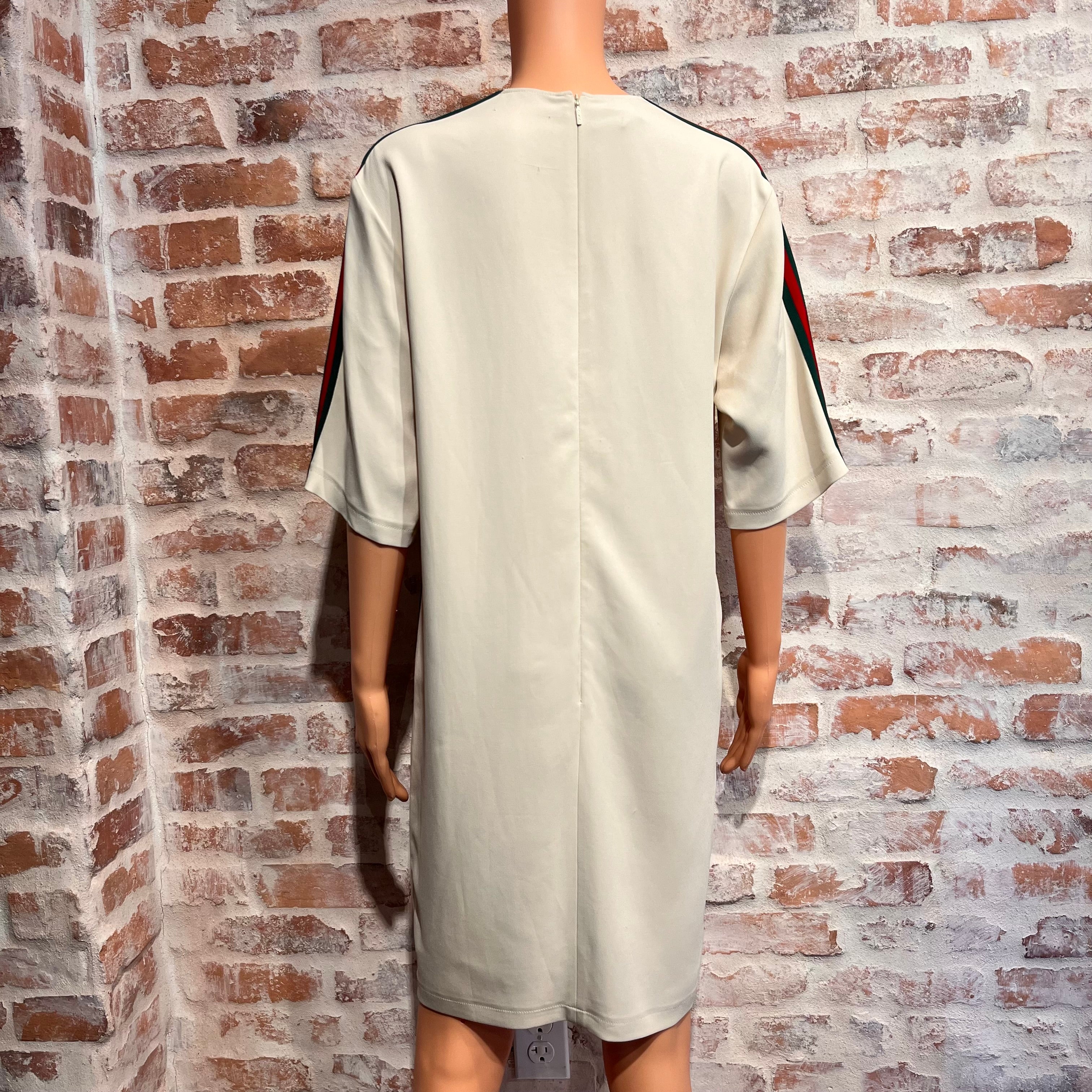 GUCCI Cream Web Stripe Viscose Knee-Length Dress SZ40(4US/S)