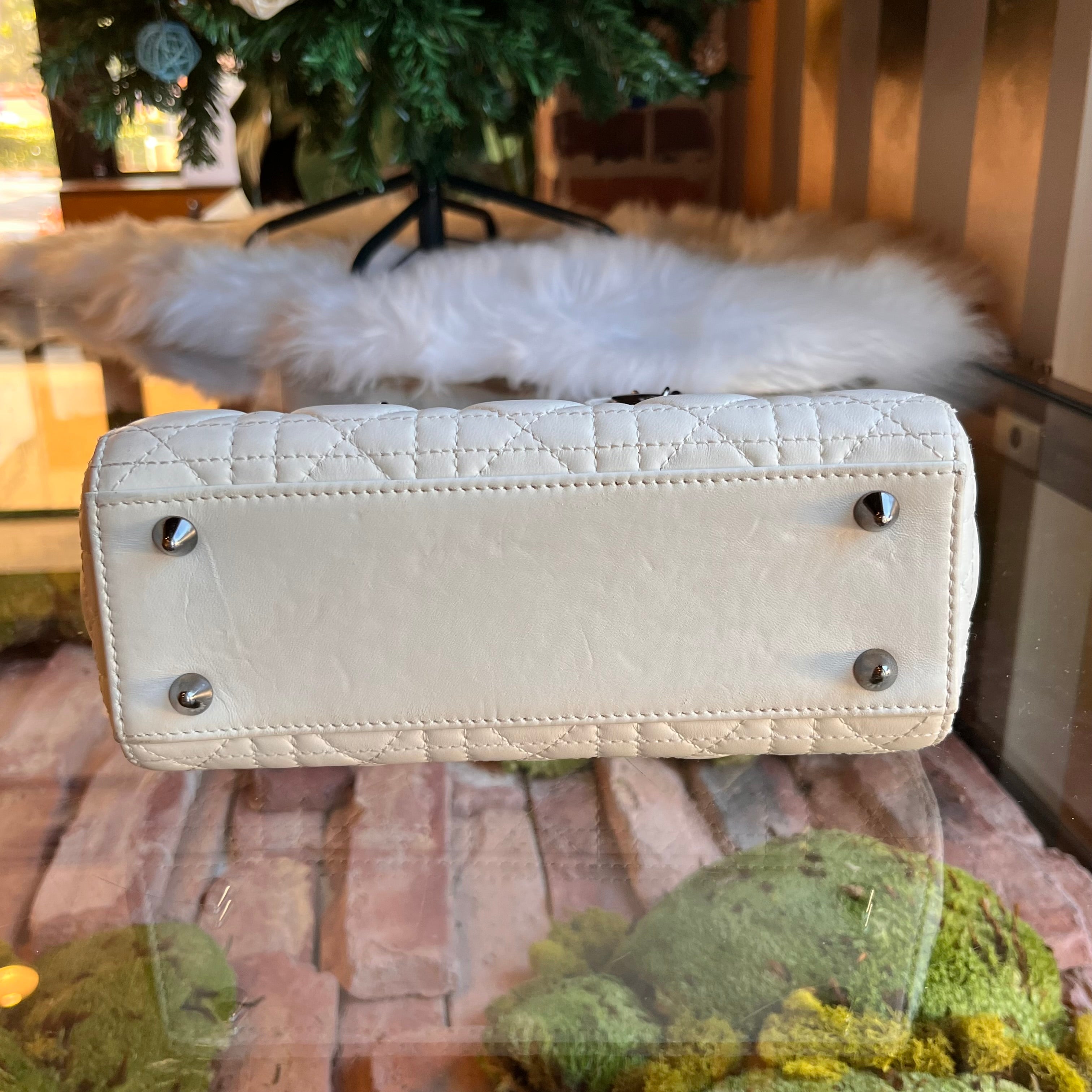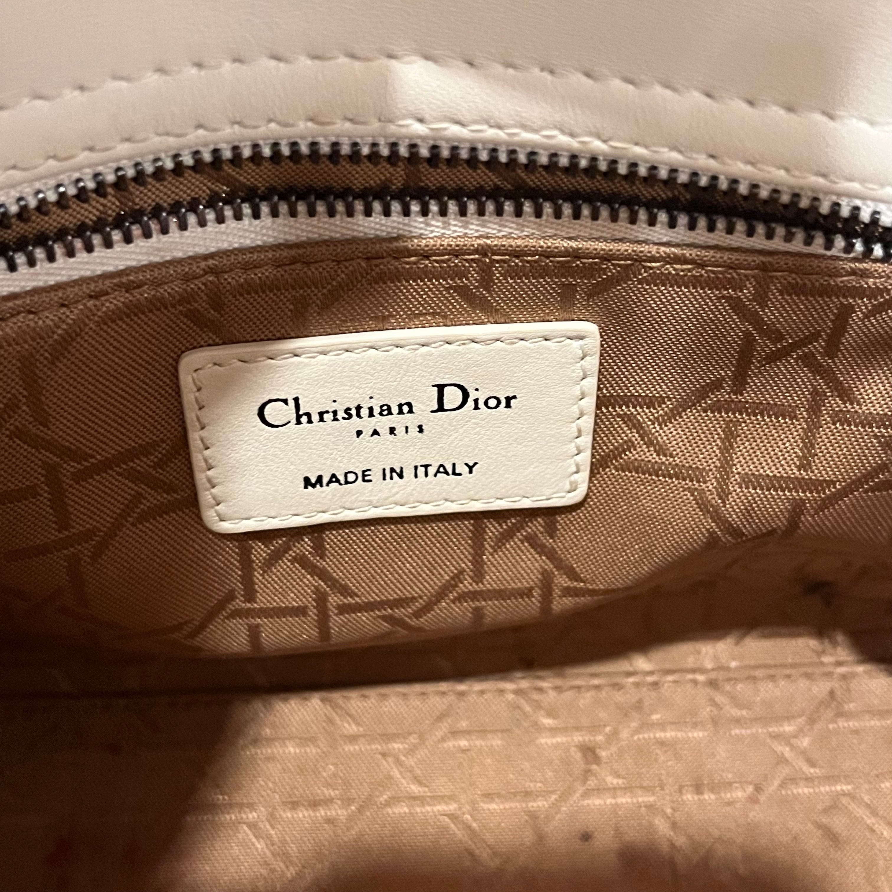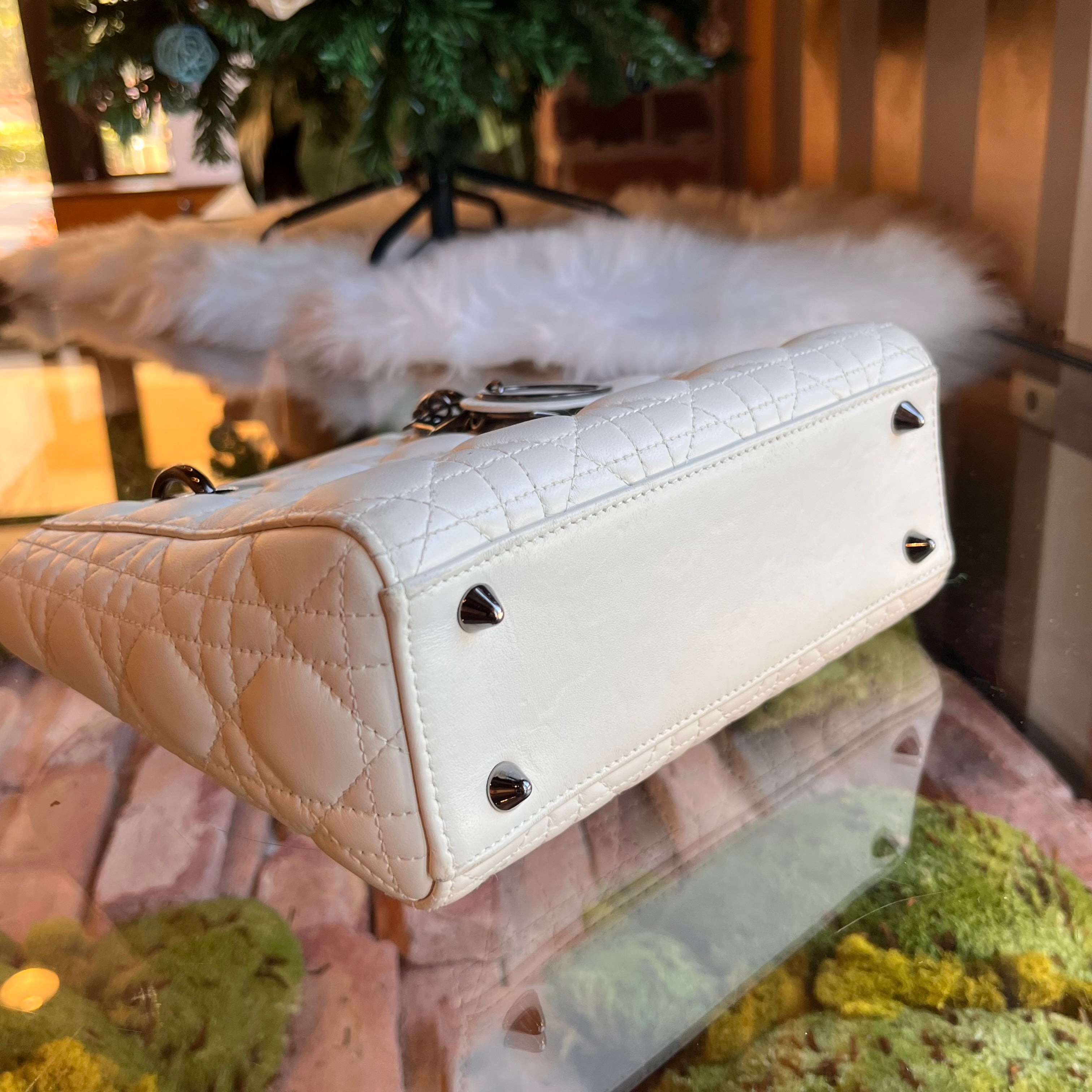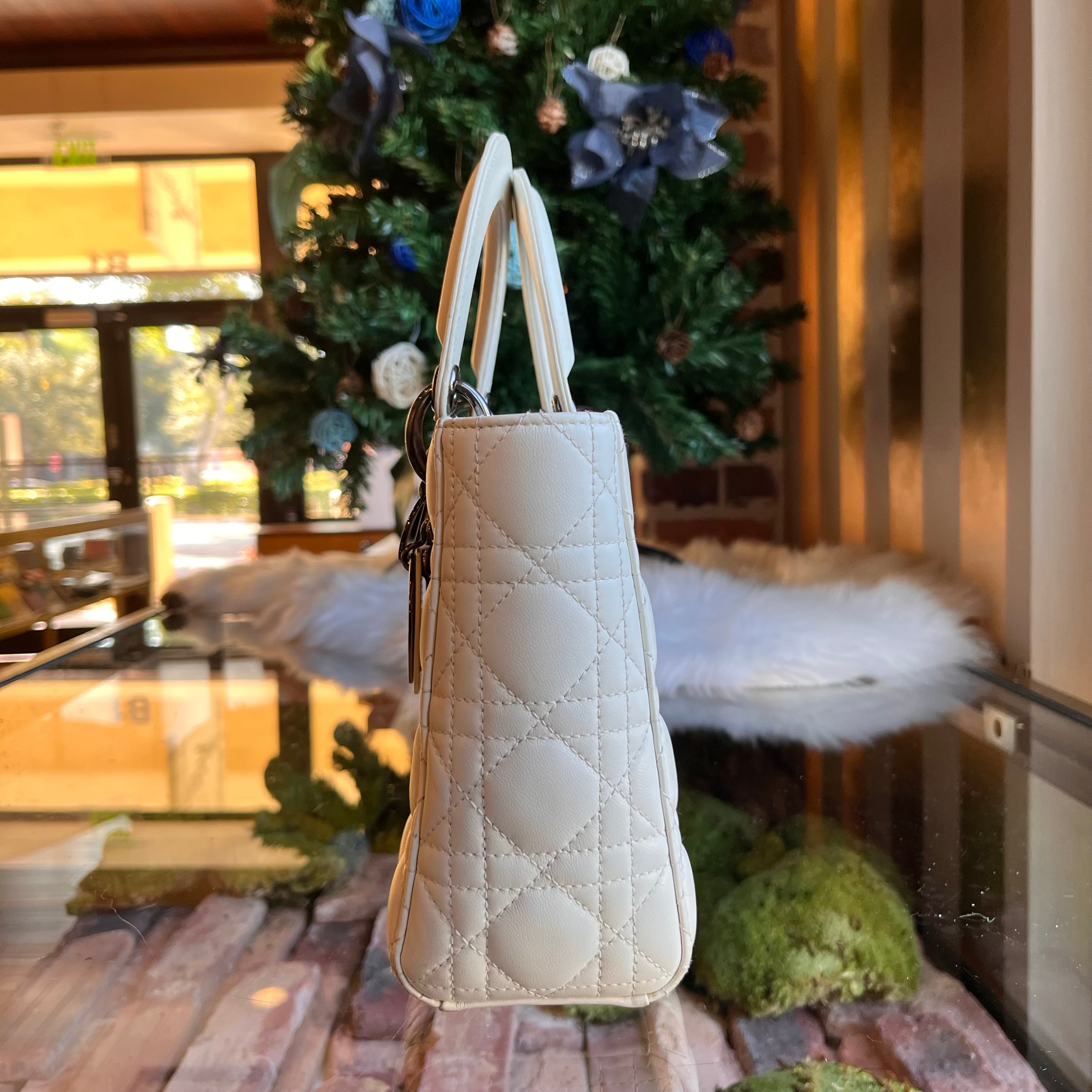 CHRISTIAN DIOR Lady Dior Medium White Lambskin Cannage Tote