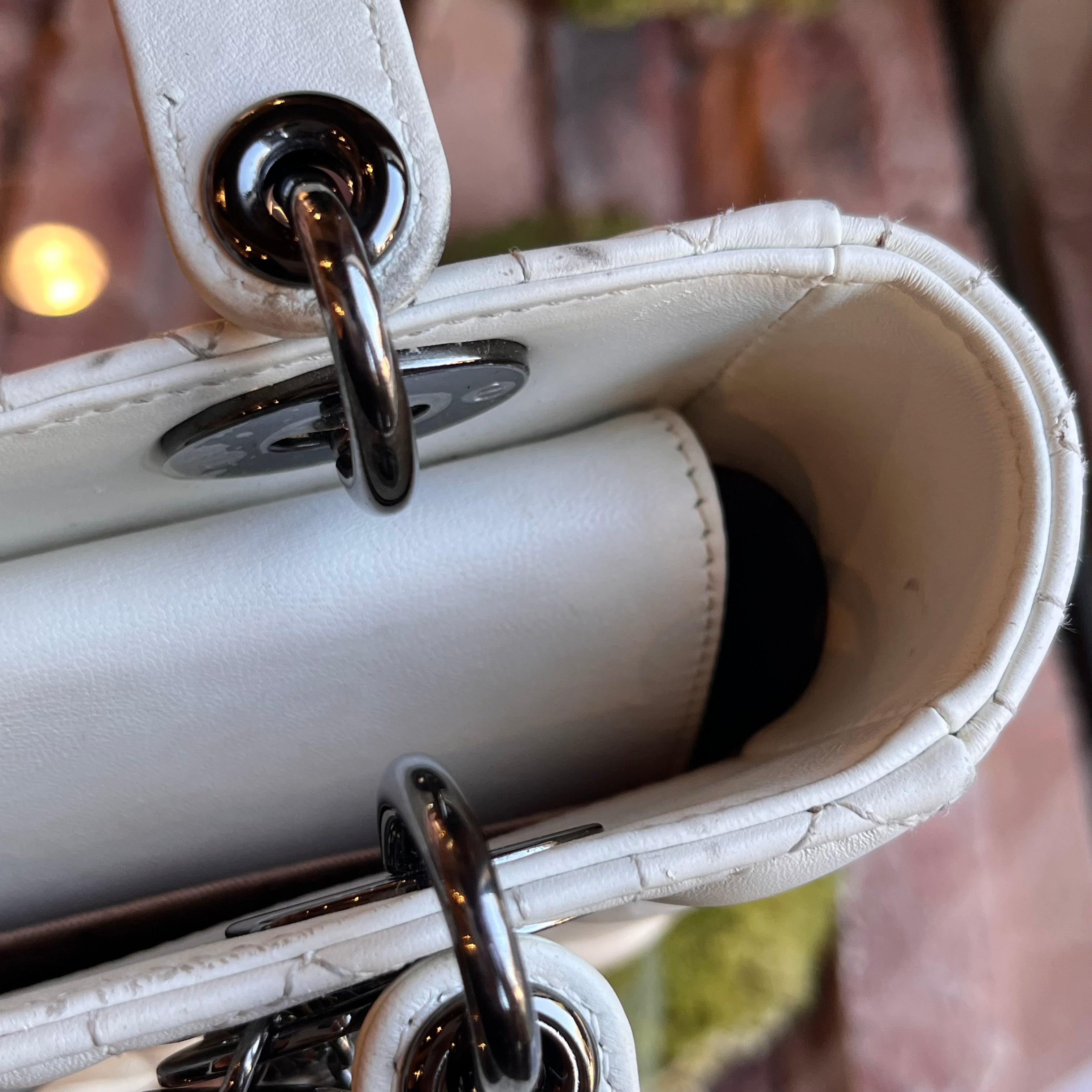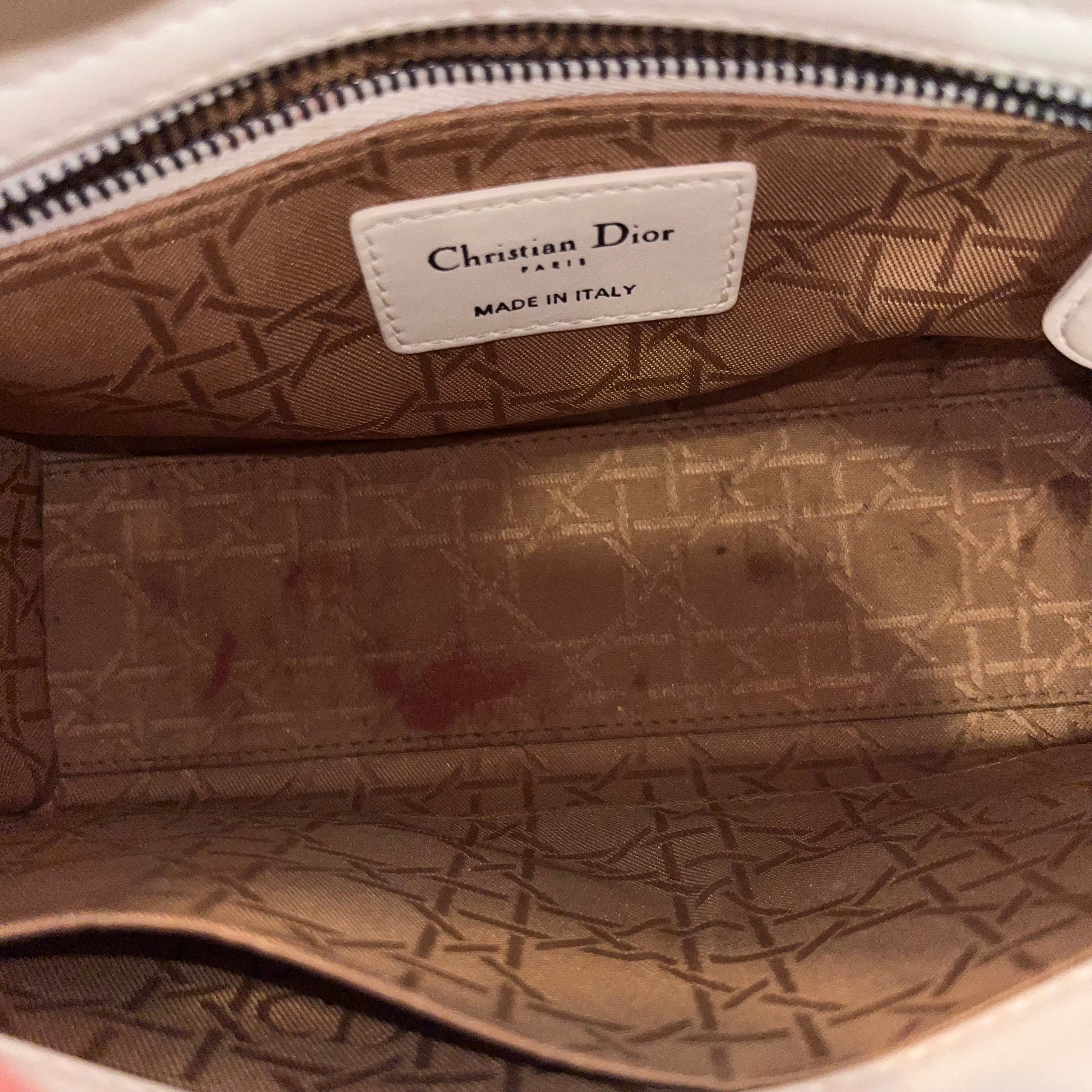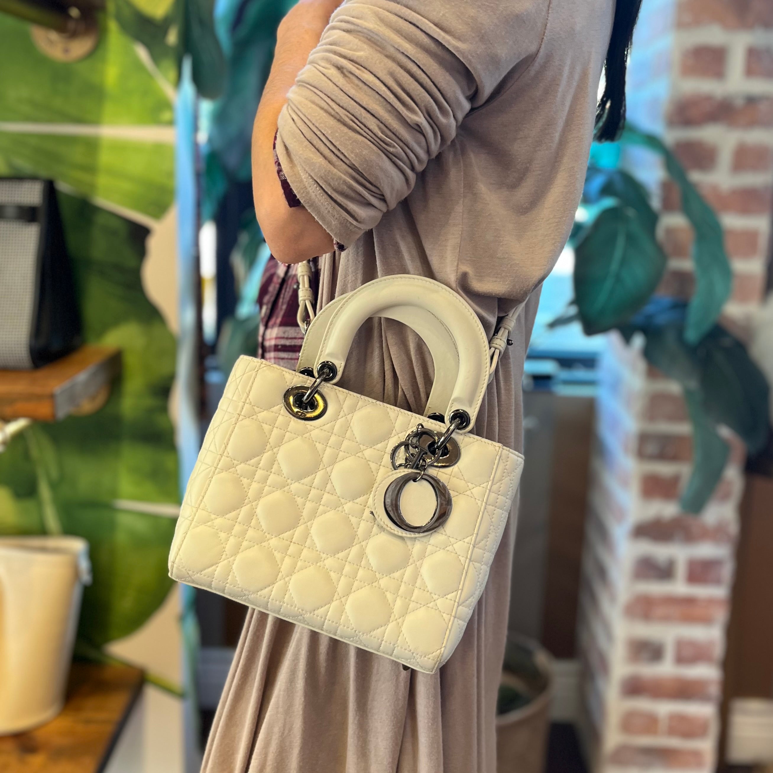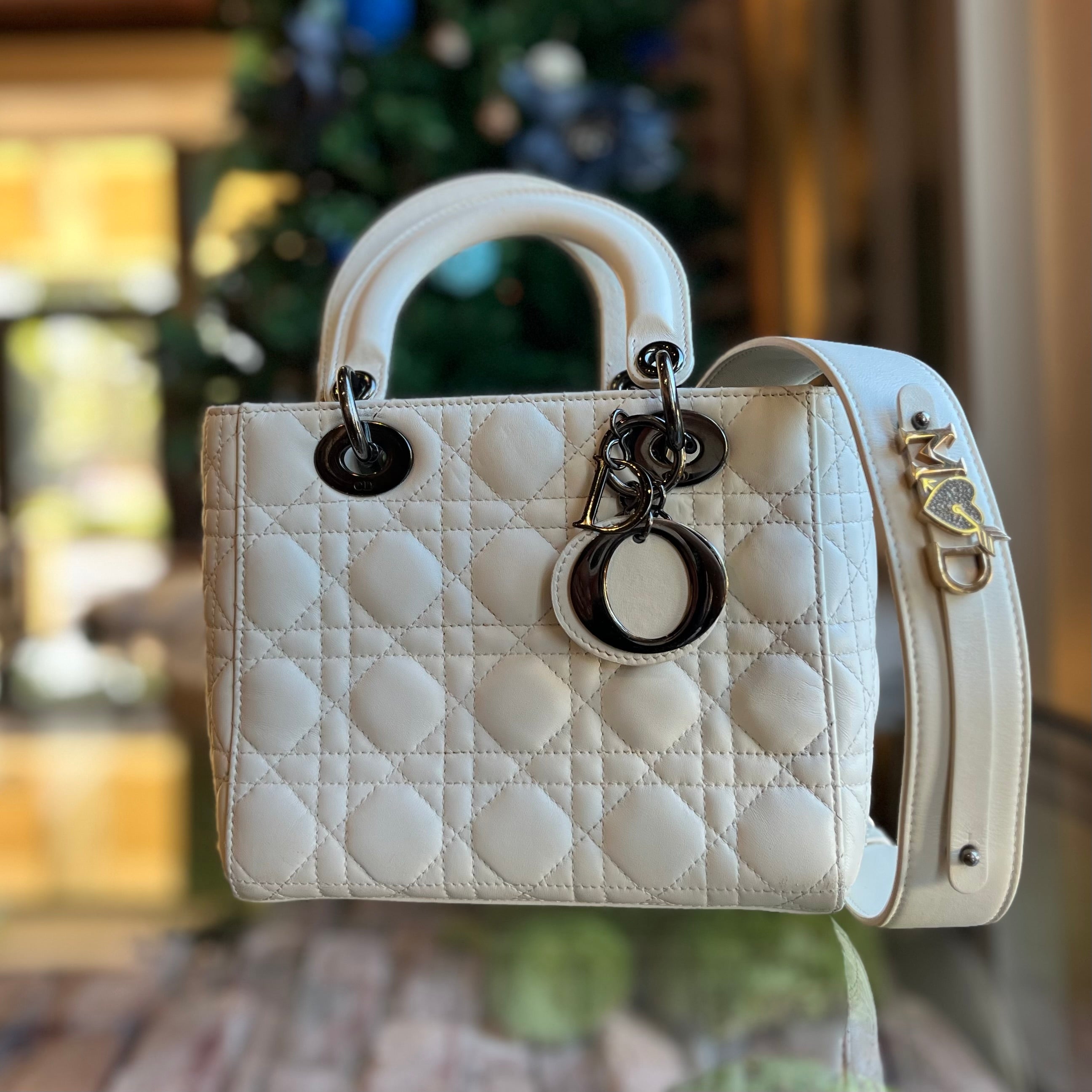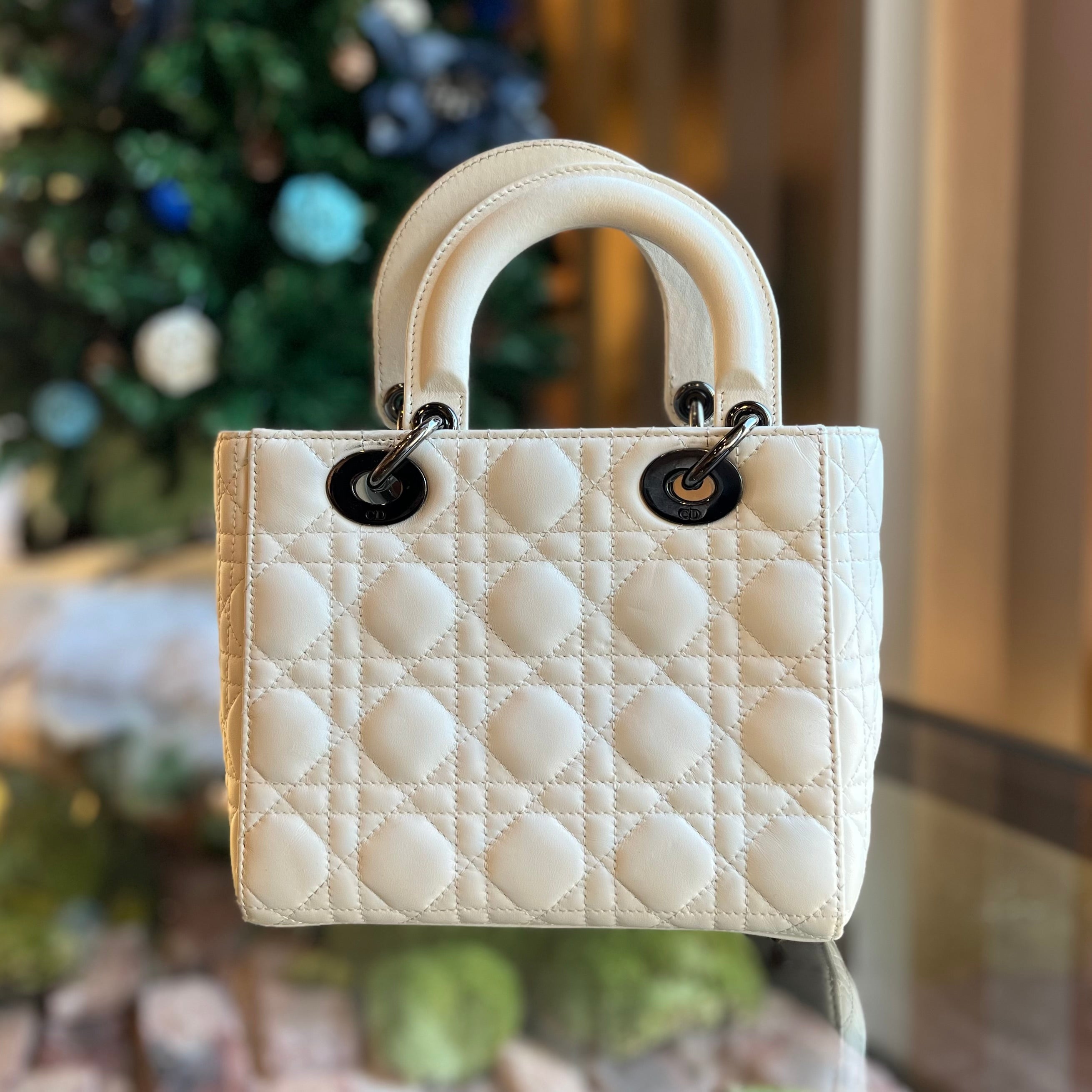 CHRISTIAN DIOR Lady Dior Medium White Lambskin Cannage Tote